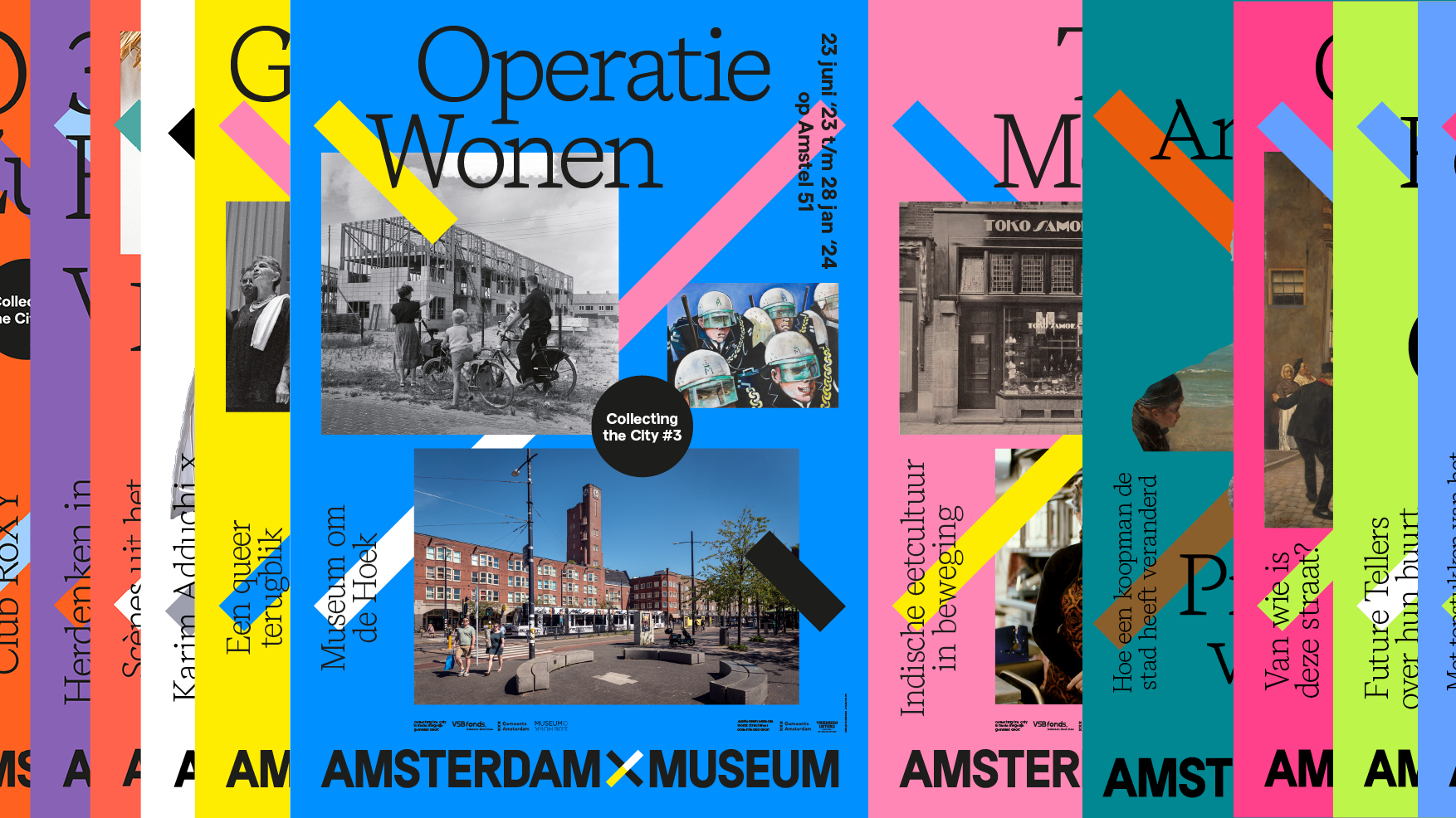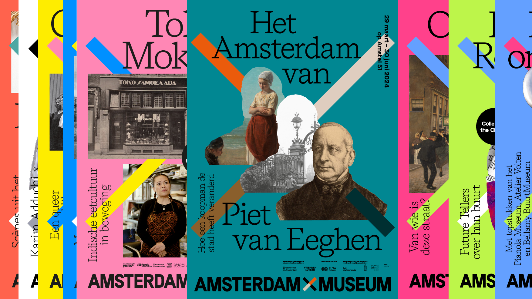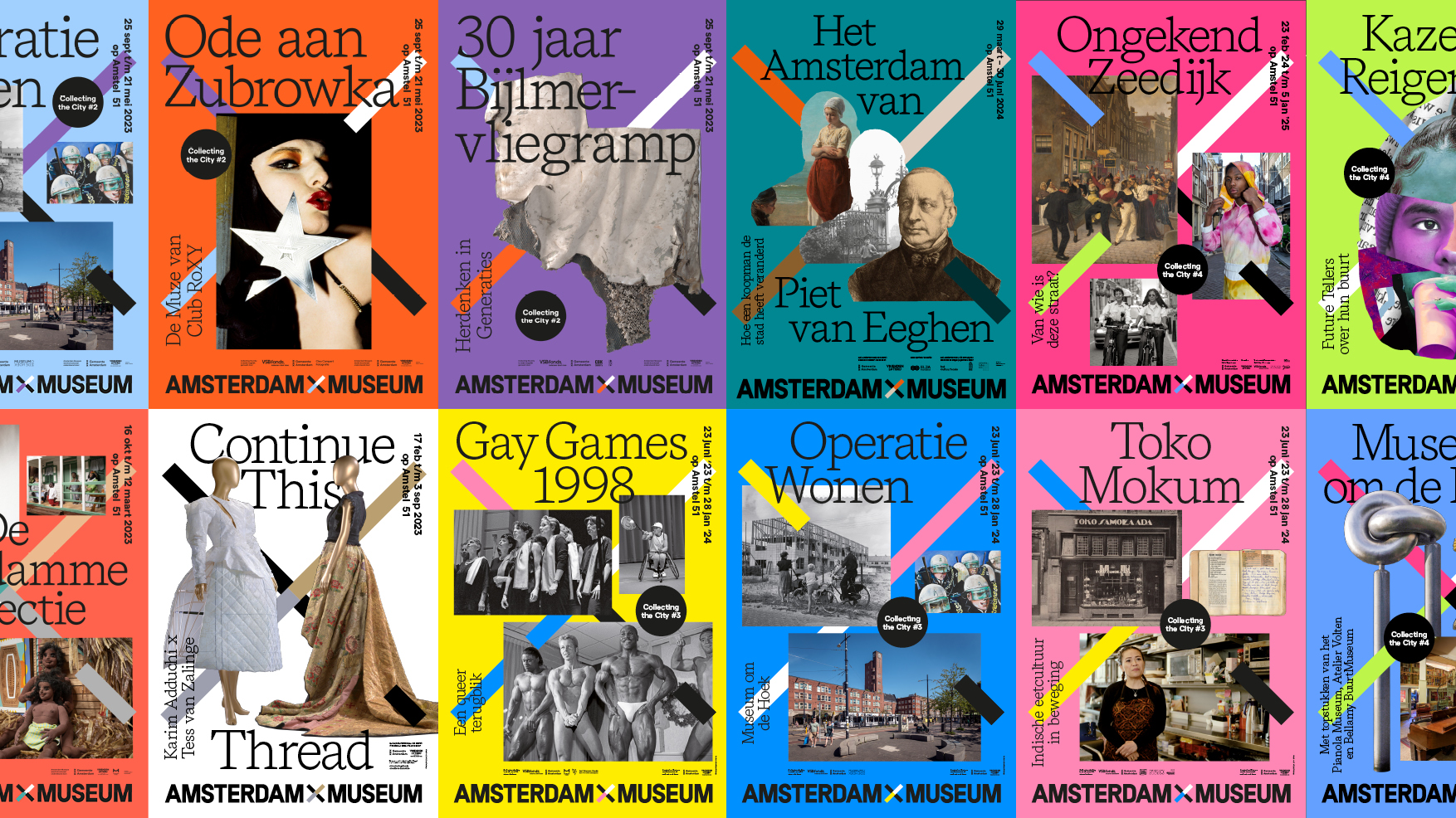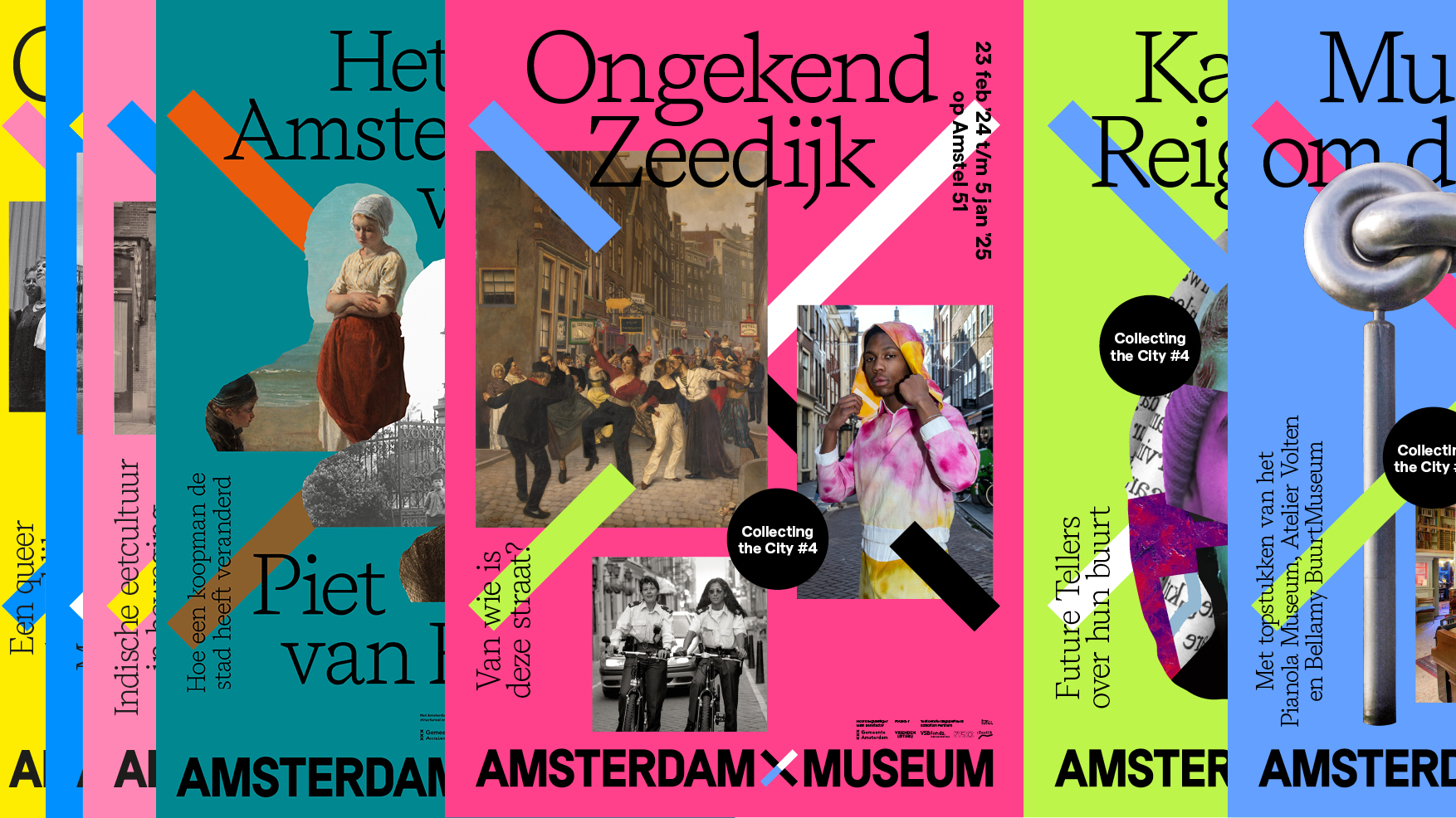 In 2023 the Amsterdam Museum developed a sophisticated poster series to promote various exhibitions and projects. These posters showcase the new integrated identity of the museum as designed by creative directors Hamid Sallali & Isabelle Vaverka. They also reflect the polyphonic communications and marketing strategy of the museum, connecting with the many communities and cultures in the superdiverse city of Amsterdam.