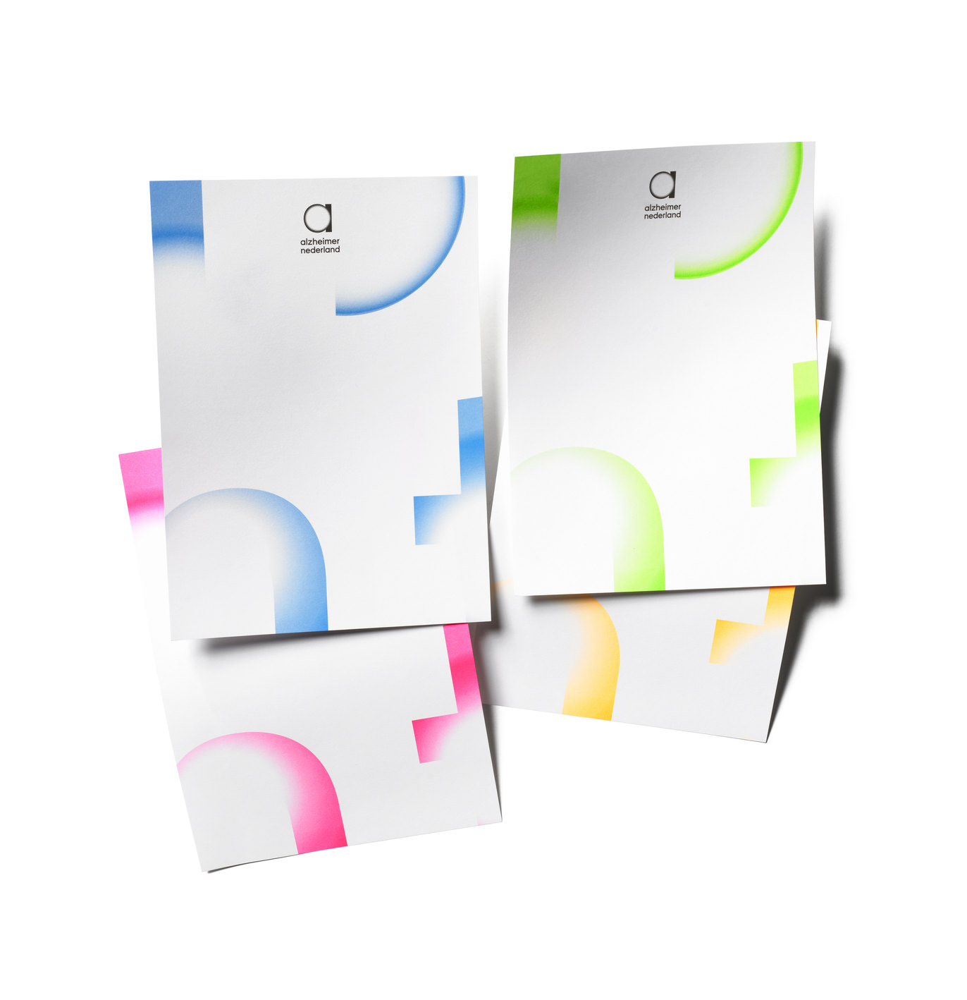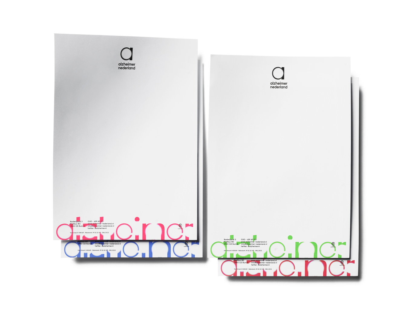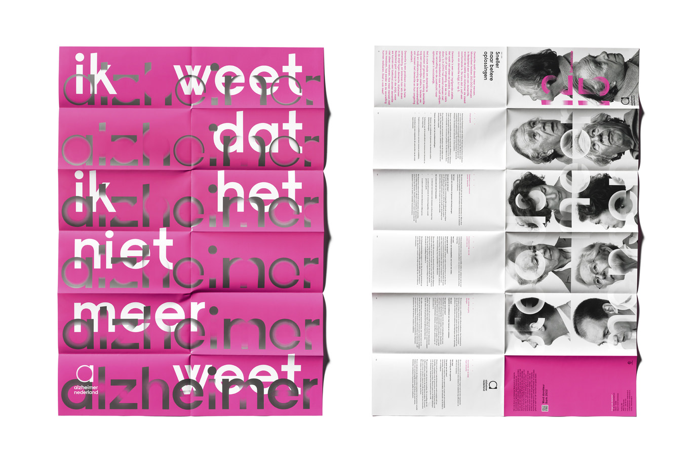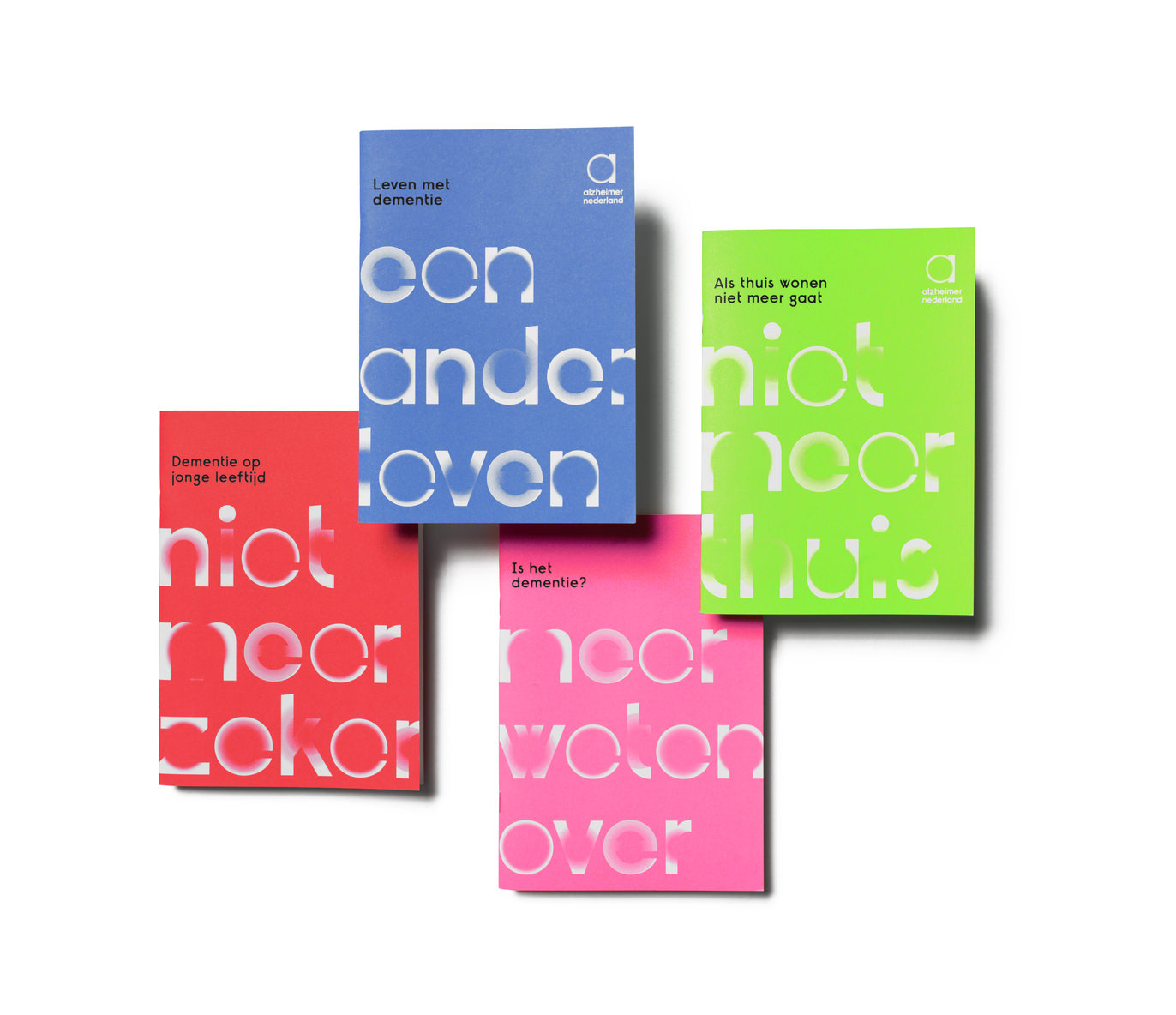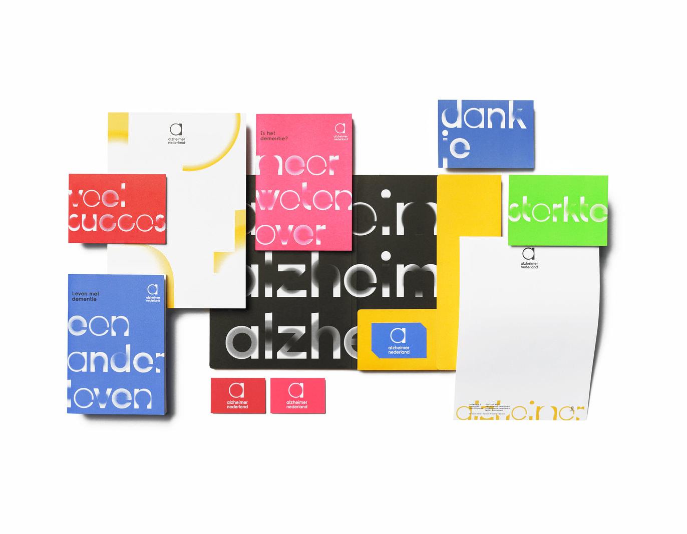 Alzheimer and other forms of dementia are presenting the human race with one of its toughest challenges. Alzheimer Nederland works hard to raise awareness and funds for vital research, but times are hard, and competition for donors has never been tougher. With their existing style lacking emotion as well as a competitive edge, Studio Dumbar designed a new visual identity. Having met patients, families and carers to experience the disease first-hand, we developed a strong and instantly recognisable identity. The new logotype is bold and confident. The ‘vanishing points’ visualize the effects of dementia, while some people see them as a source of light and hope. The most important moment in the process came when the identity was shared with patients and carers. We were delighted and relieved when their feedback was overwhelmingly positive, and people continue to comment on how they feel an immediate emotional connection with the identity.