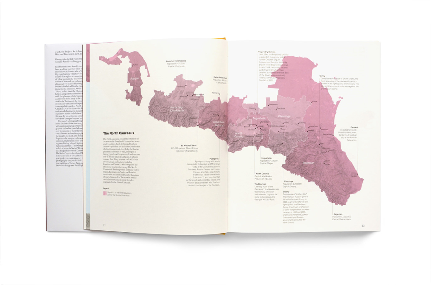 Hornstra’s photographic approach combines the best of documentary storytelling with contemporary portraiture, found photographs, and other visual elements collected over the course of their travels. The highlights and key elements of this extensive effort are brought together for the first time in this volume, offering alternative perspectives and in-depth reporting on this remarkable region, the site of the most expensive Olympic Games, which sits at the combustible crossroads of war, tourism, and history.