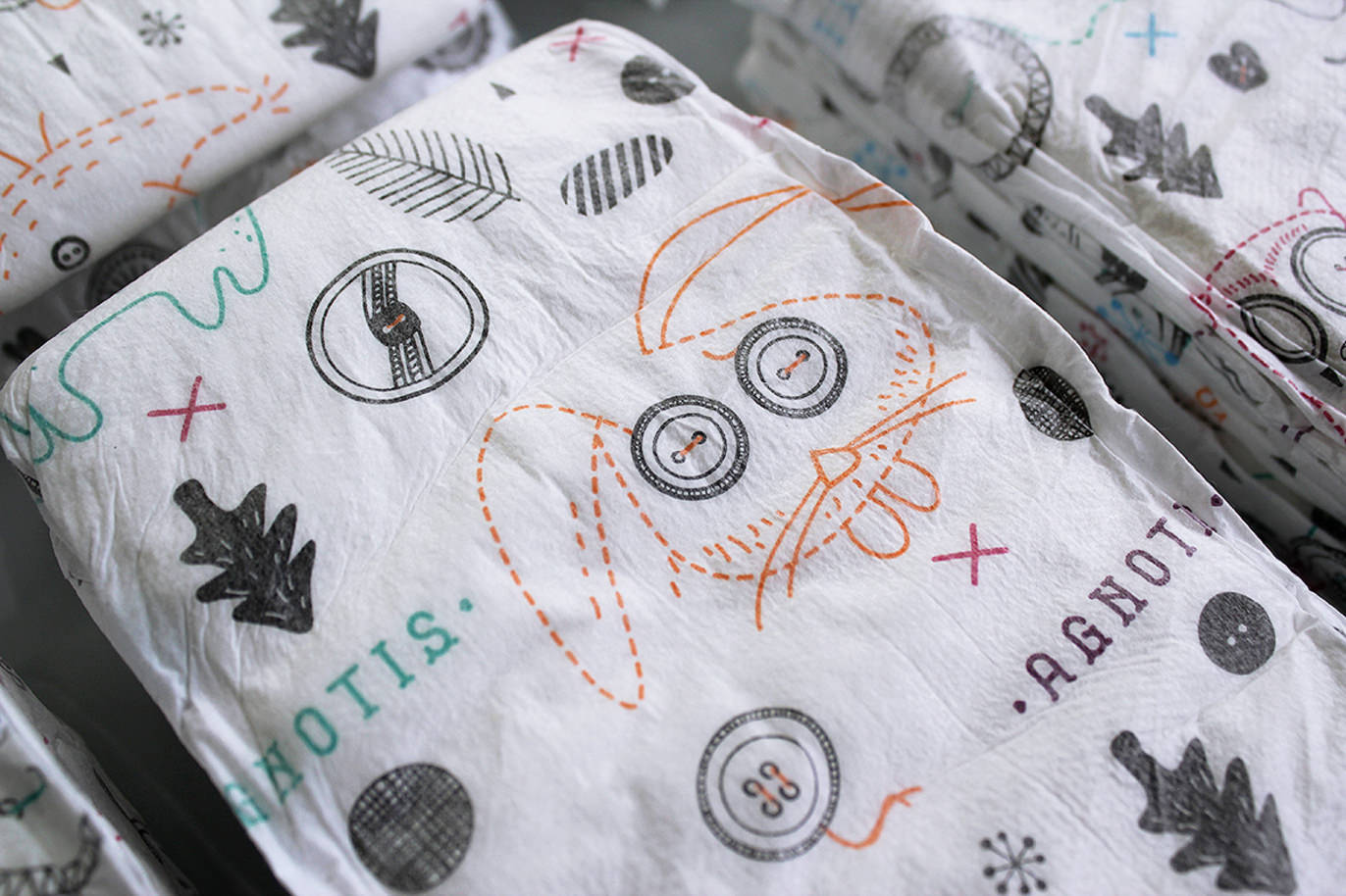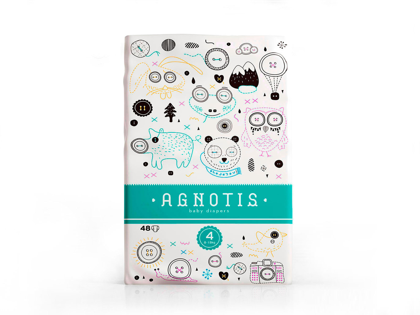Diapers packaging for the newly established company ”Agnotis” (Pyrity), which sells infant hygiene products. The main intention during the client’s briefing was individuation from the competition, and consequently, differentiation on the shelves inside the shops.