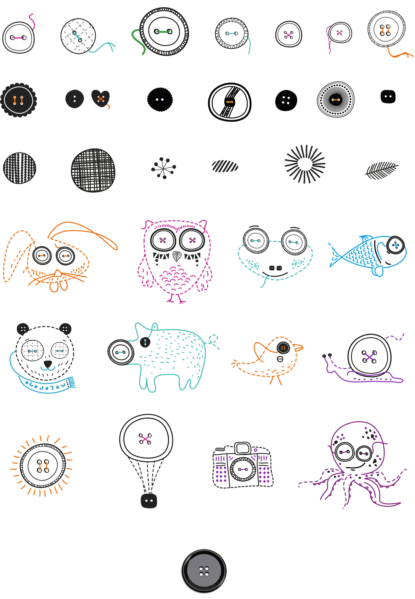 The consideration of the diaper as a garment led to the use of the ”button” as the main element of decoration. Their use in the composition of animal characters and items is obvious in the general illustration.