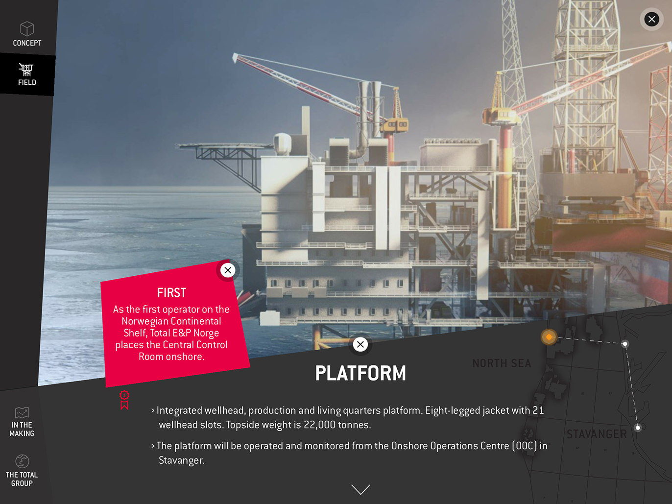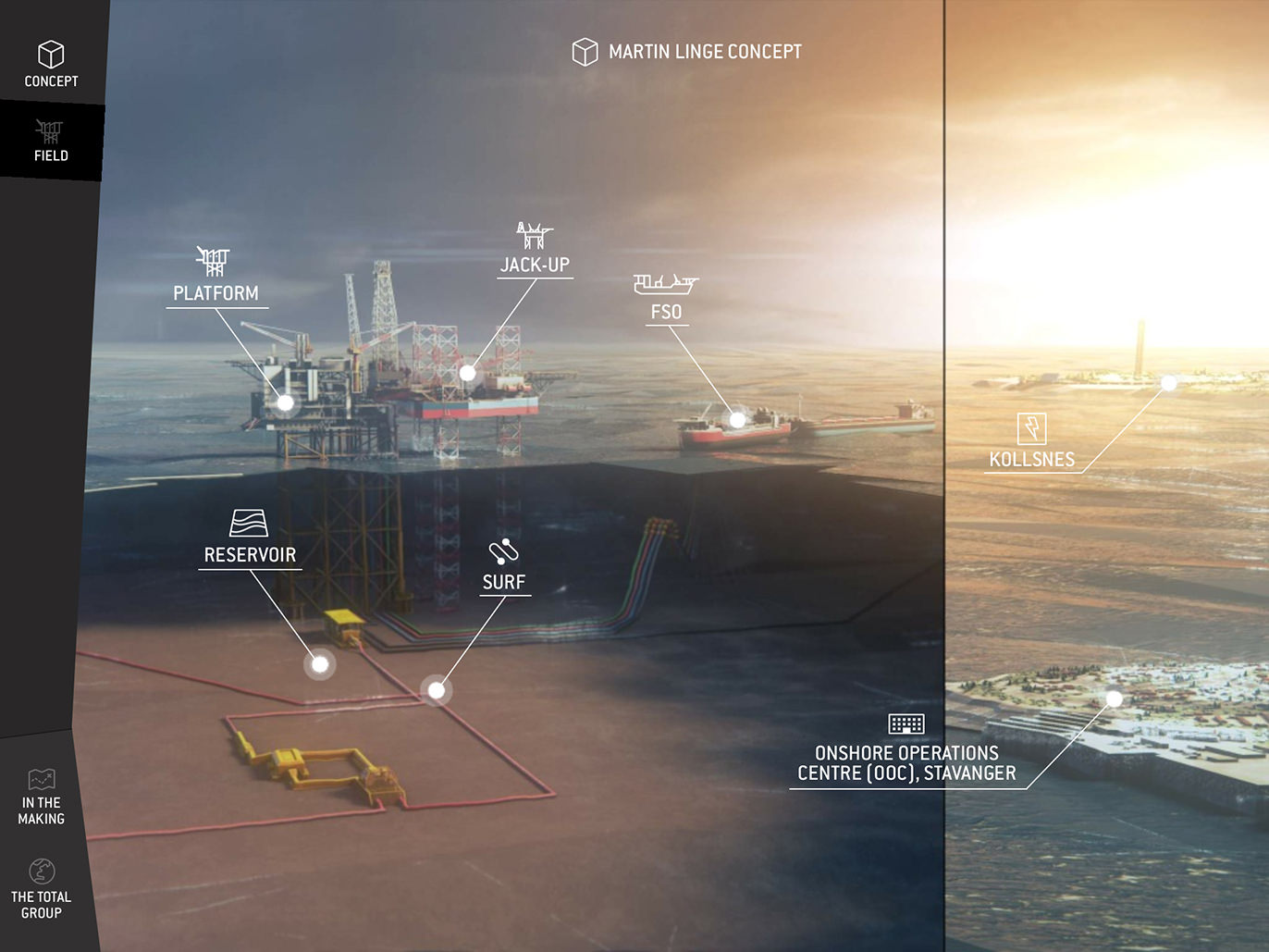 Total wanted to tell the story of a completely new way to build and operate an oil and gas field. This application makes it possible to tell about it in a whole new way too.