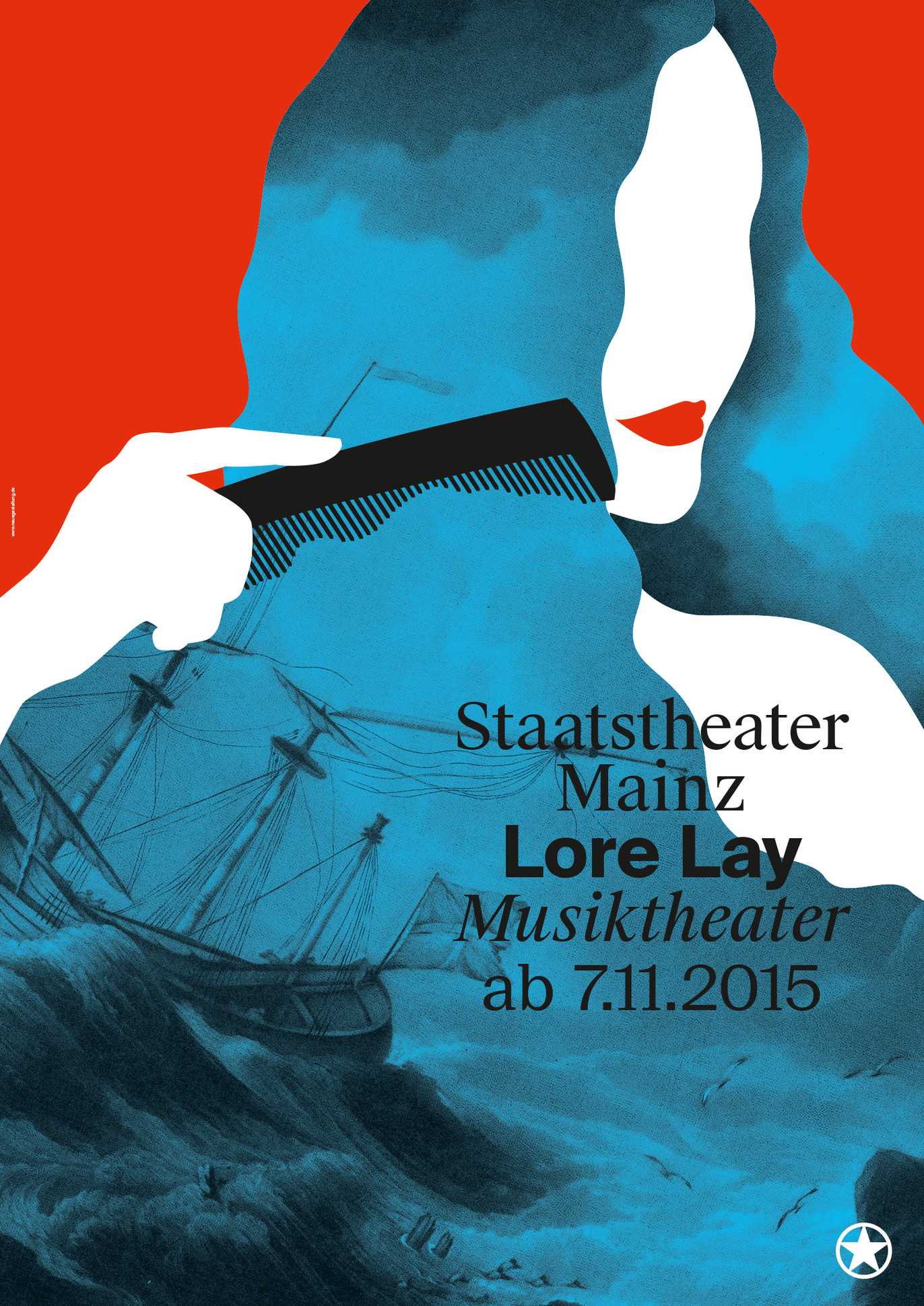 The posters for Staatstheater Mainz seek to spark interest, make the theater visible to the community and reflect its ingenuity. In a marked departure from convention, a wide range of striking illustrative and photographic techniques and typography is employed to create a series shaped by its bold use of an unusually broad palette of visuals. Specifically designed to raise people’s awareness of the artistic richness offered by a multi-genre repertory theater, every poster aims to embrace a given production’s particular flair and focus, with only the theater’s characteristic star logo – undemonstratively placed in one corner – referencing the series’ origin.