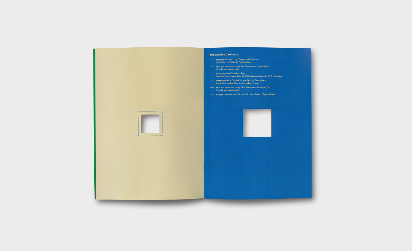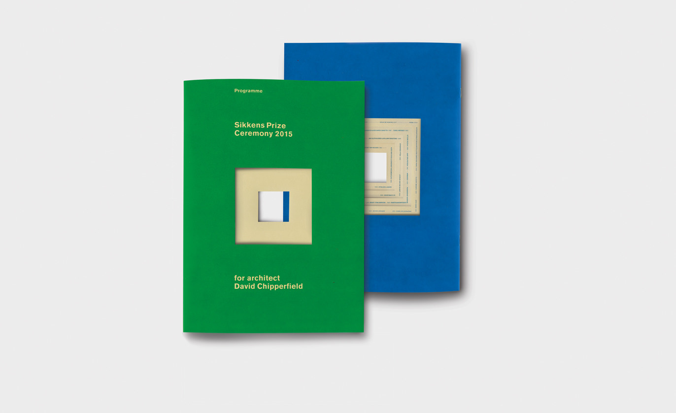 Programme for the award ceremony of the Sikkens Prize 2015. Awarded to British architect David Chipperfield. Commissioned by the Sikkens Foundation.