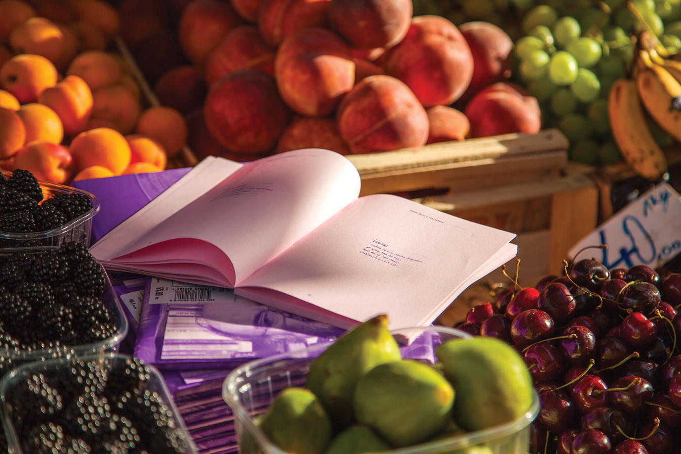 The conceptual solution of the poetry collection ”Closed on Sundays” questions whether a contemporary poet should pack his poetry as a consumer good, in order for it to be noticed in a time when poetry generally becomes completely marginalized. The poet’s words are packed and weighed in kilos, playing with the allusion to everyday consumerism, which has become today almost the only form of communication that a modern man understands.The Istrian dialect term ”doprta butiga” or ”open shop” is used when someone has an open pants zipper. The collection is called “Closed on Sundays”, but the zipper of the poet’s pants (the poster represents a realistic portrait of the author) is actually opened, as a symbol of open stores. The fact is that the poets have no Sundays, no matter how much they would want it.