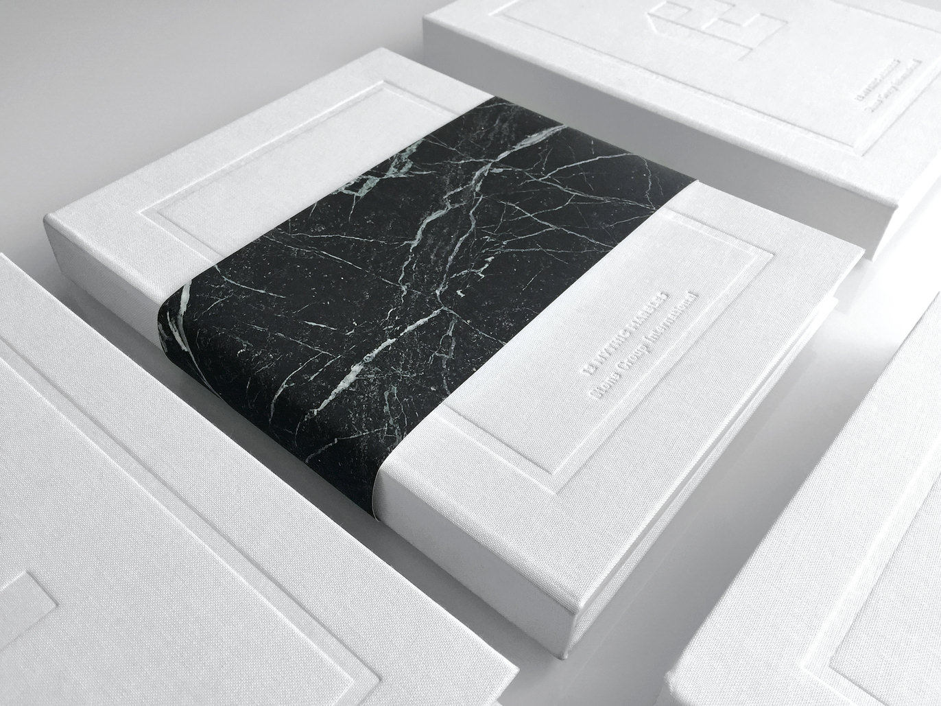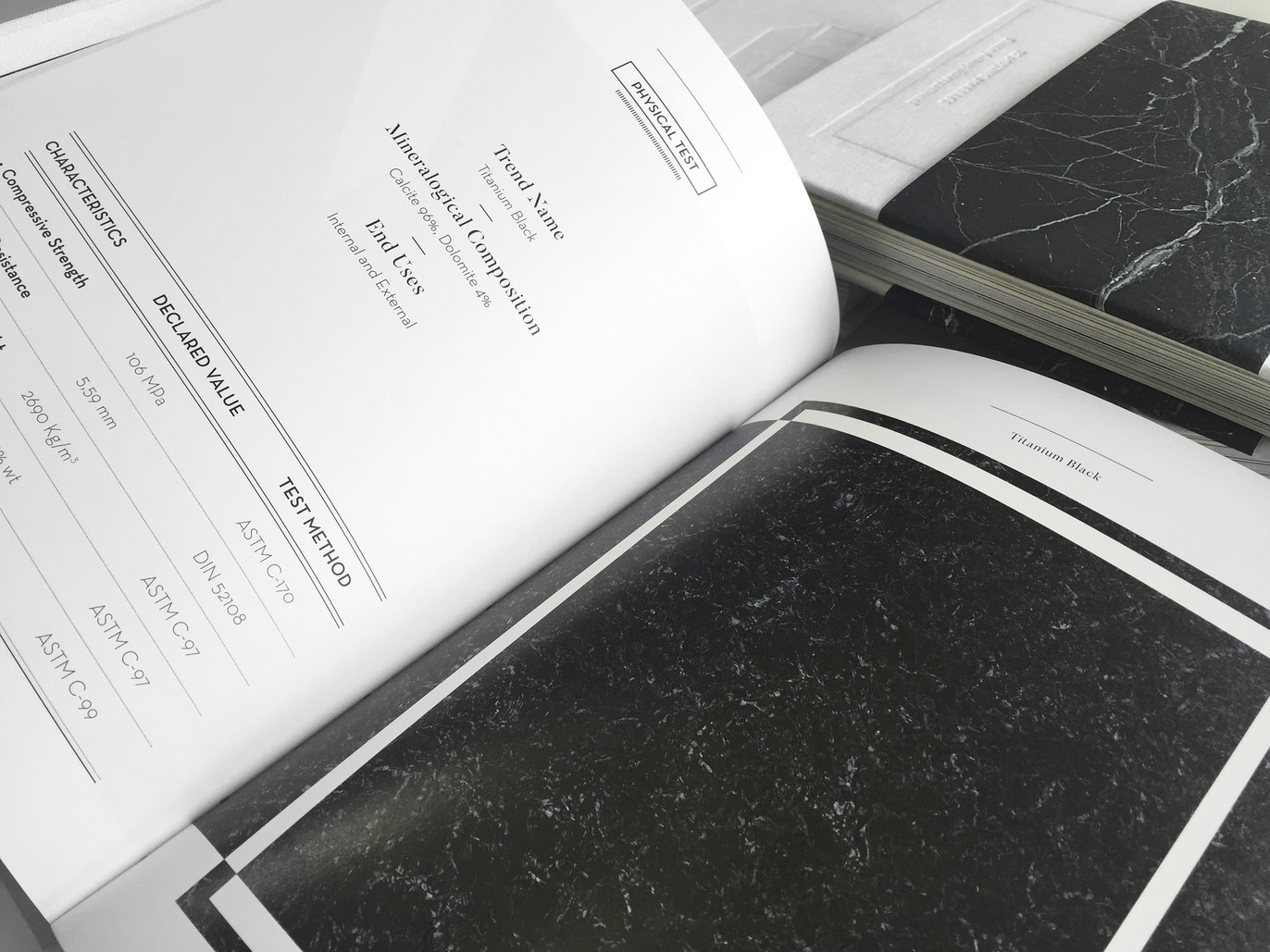 This brochure presents the complete marble collection and is aimed at dealers from abroad. Nevertheless, it was designed with a lot of attention, because apart from being a shopping guide (features, suggestions for uses etc.), one third of it contains texts by prominent art historians and architects.