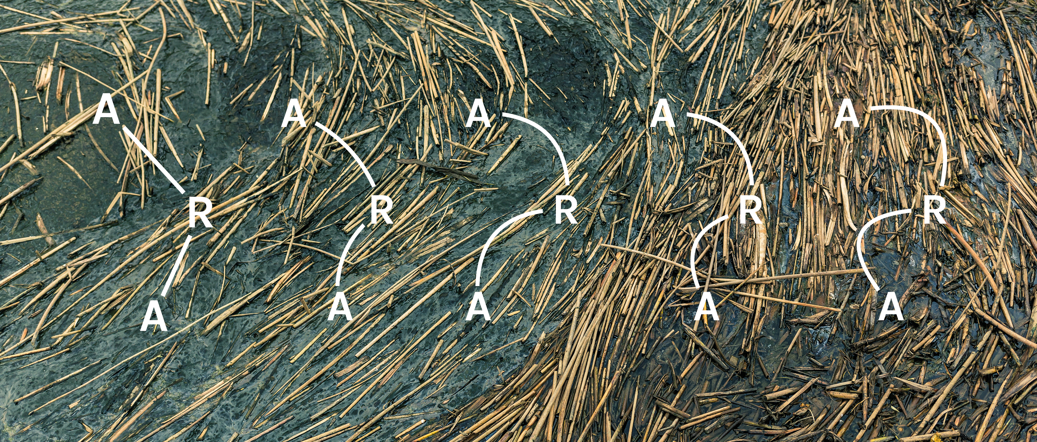 We have chosen to construct a dynamic logo where the glyphs making up the word ARA live within the space and communicate with each other via connections represented by lines, in the same way as the Ara project aims to construct new relationships between the actors in the local area.