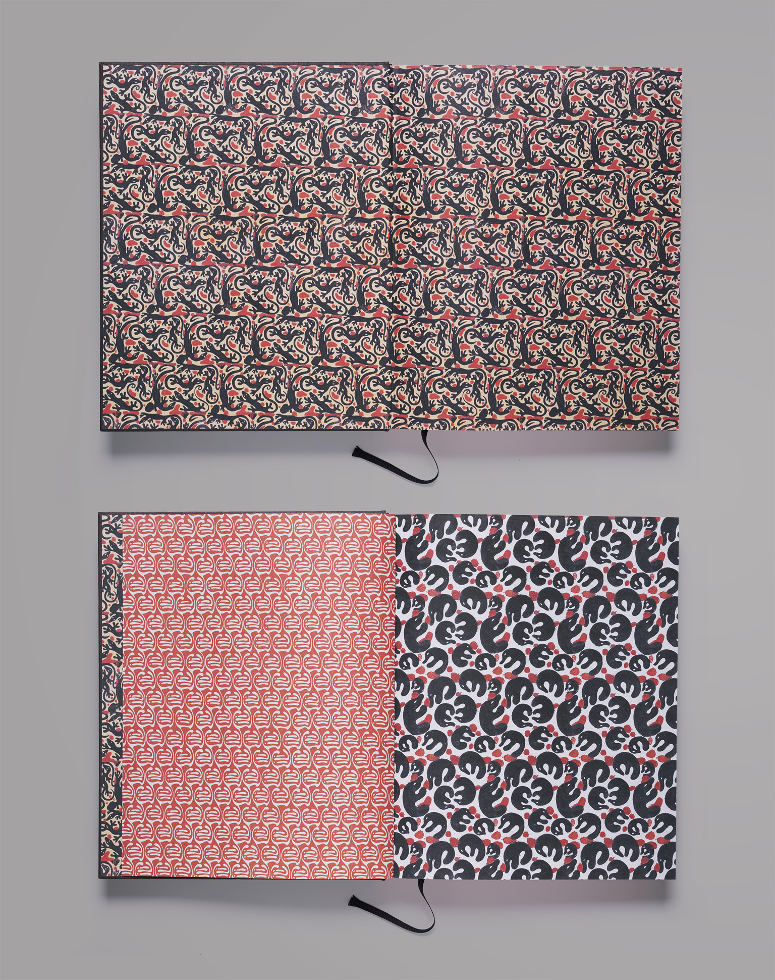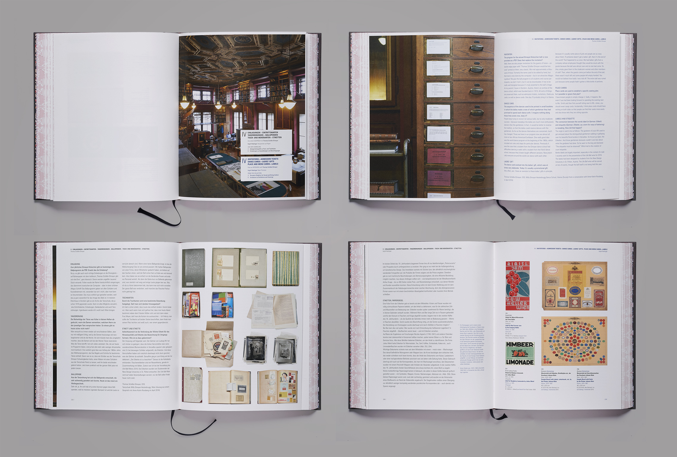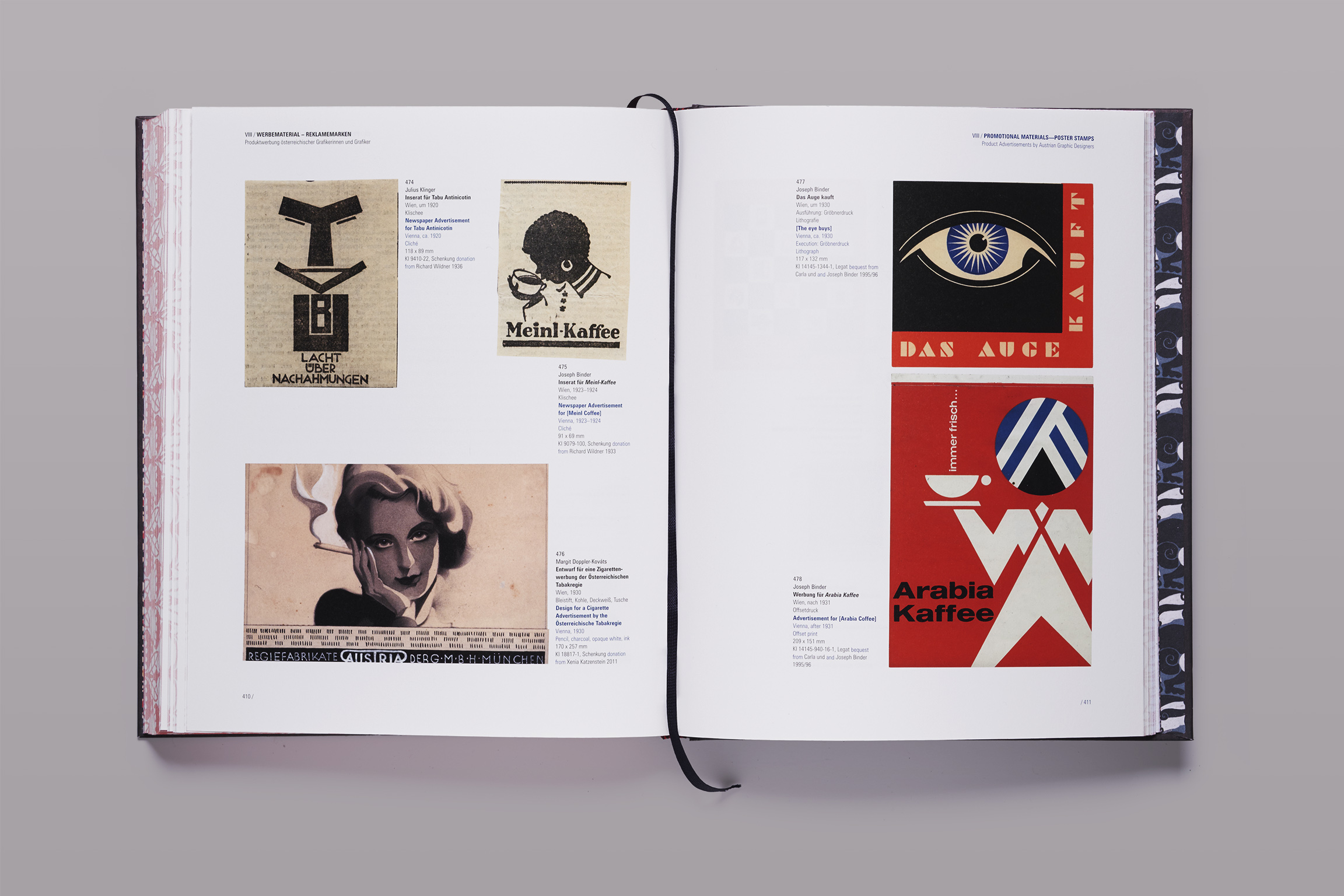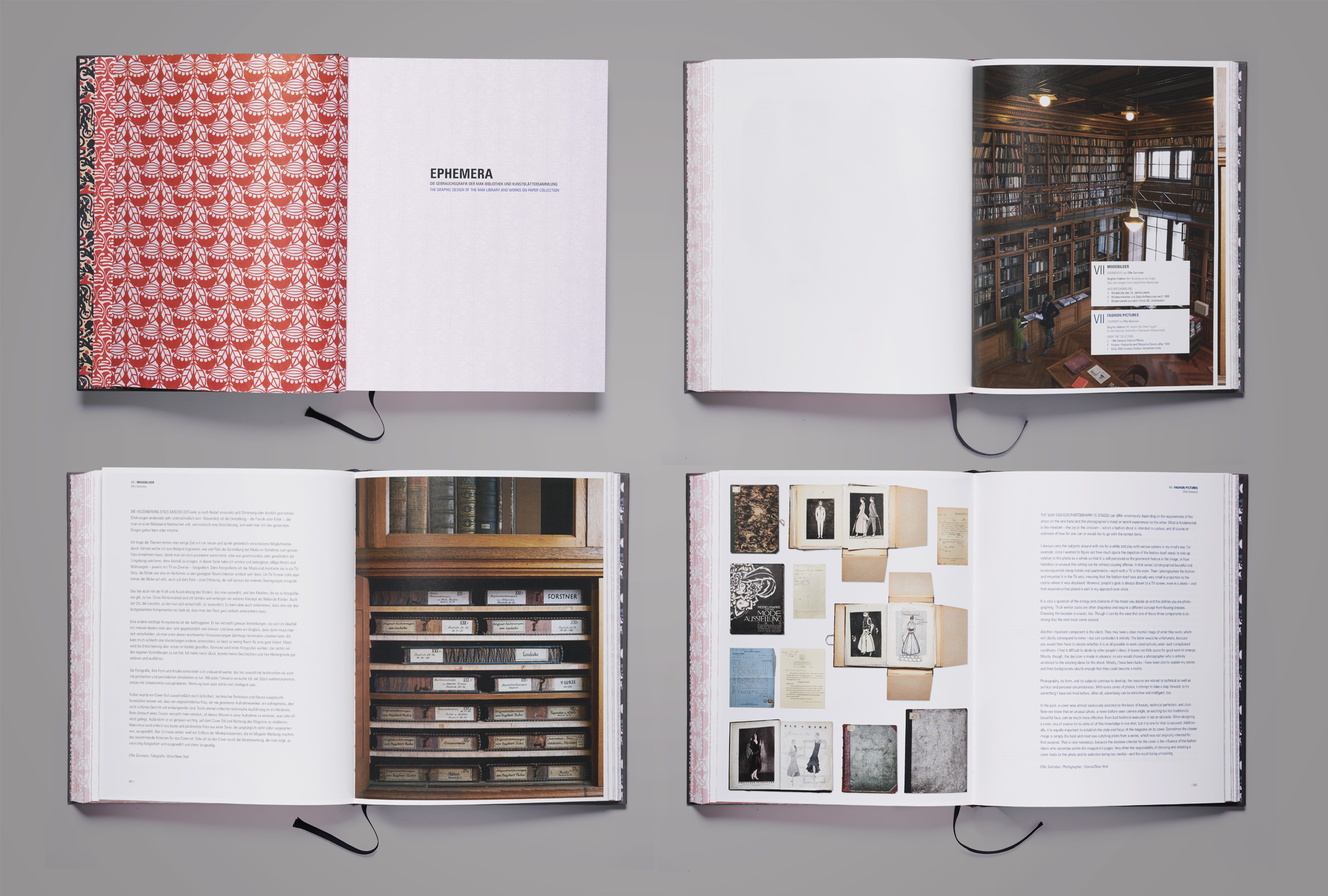 The MAK – Austrian Museum of Applied Arts / Contemporary Art in Vienna is home to one of the largest works on paper collections. The publication EPHEMERA: The Graphic Design of the MAK Library and Works on Paper Collection shows examples from the 18th century to the present day divided into eight chapters (decorated papers; greeting cards, letter paper; playing cards, visiting cards; invitations, admission tickets, dance cards, ladies’ gifts, place and menu cards, labels; ex libris; dust jackets, bookmarks; fashion pictures; promotional materials, poster stamps). Every chapter begins with a photograph of the areas of the MAK that are not open to the public, rooms where exhibits are stored and researched, arranged in various forms from collection files and boxes to individual sheets. Even the cover design makes reference to these repositories, resembling as it does an archive box: with its wooden structure and archive label, the design initially seems very reserved, but with the red edge coloring on three sides—an original pattern by Koloman Moser—it alludes to the “hidden treasures” within.