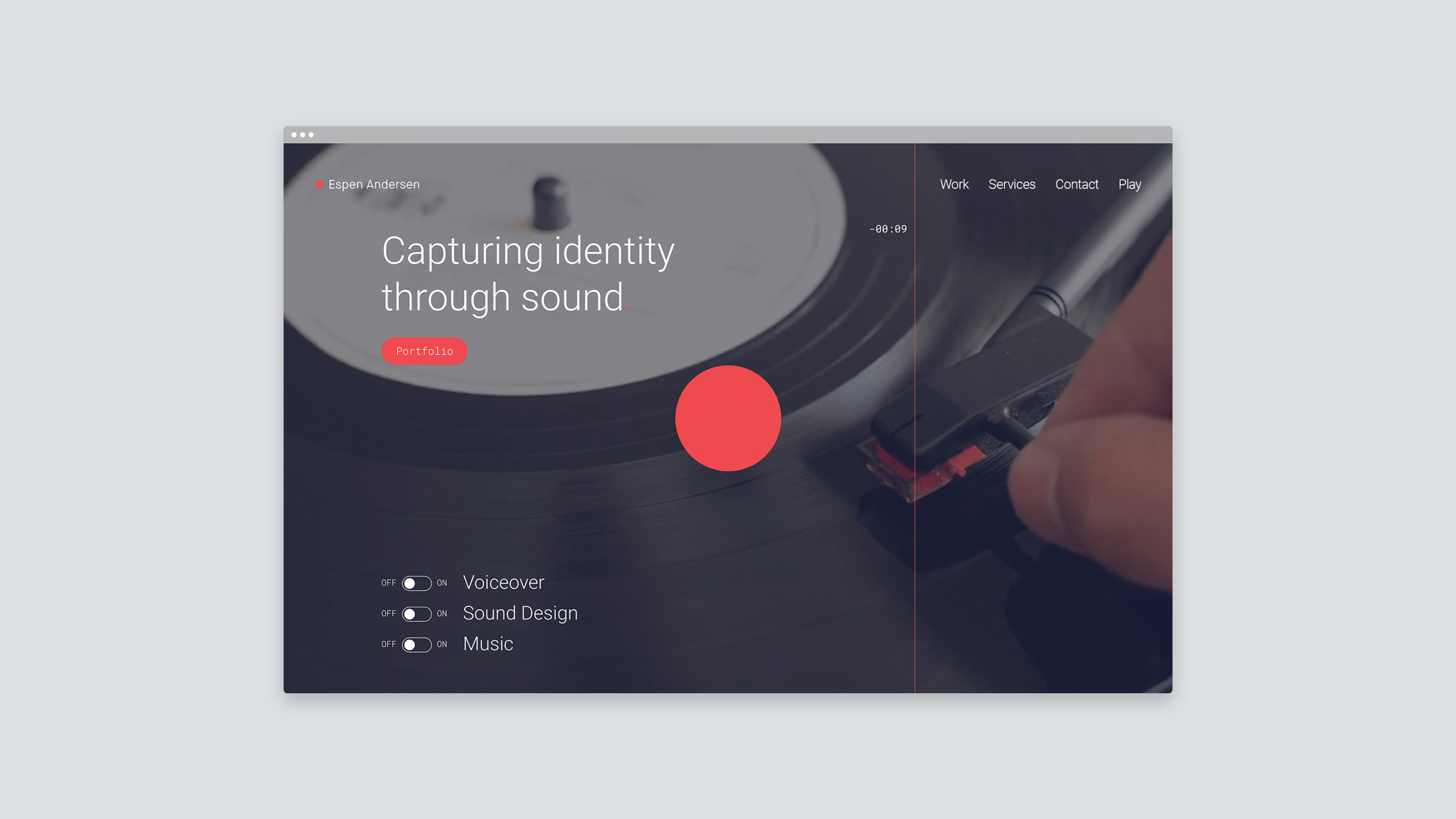 Whether for a band, film score, or commercial, Espen uses sound to tell stories, convey emotions and capture his client’s identity. We captured Espen’s own identity through sound, giving visual form to his sound through the use of two simple elements: the recording button, and the playhead. The identity comes to life on the website—a playful and engaging platform for showcasing his work, services, and creative philosophy.