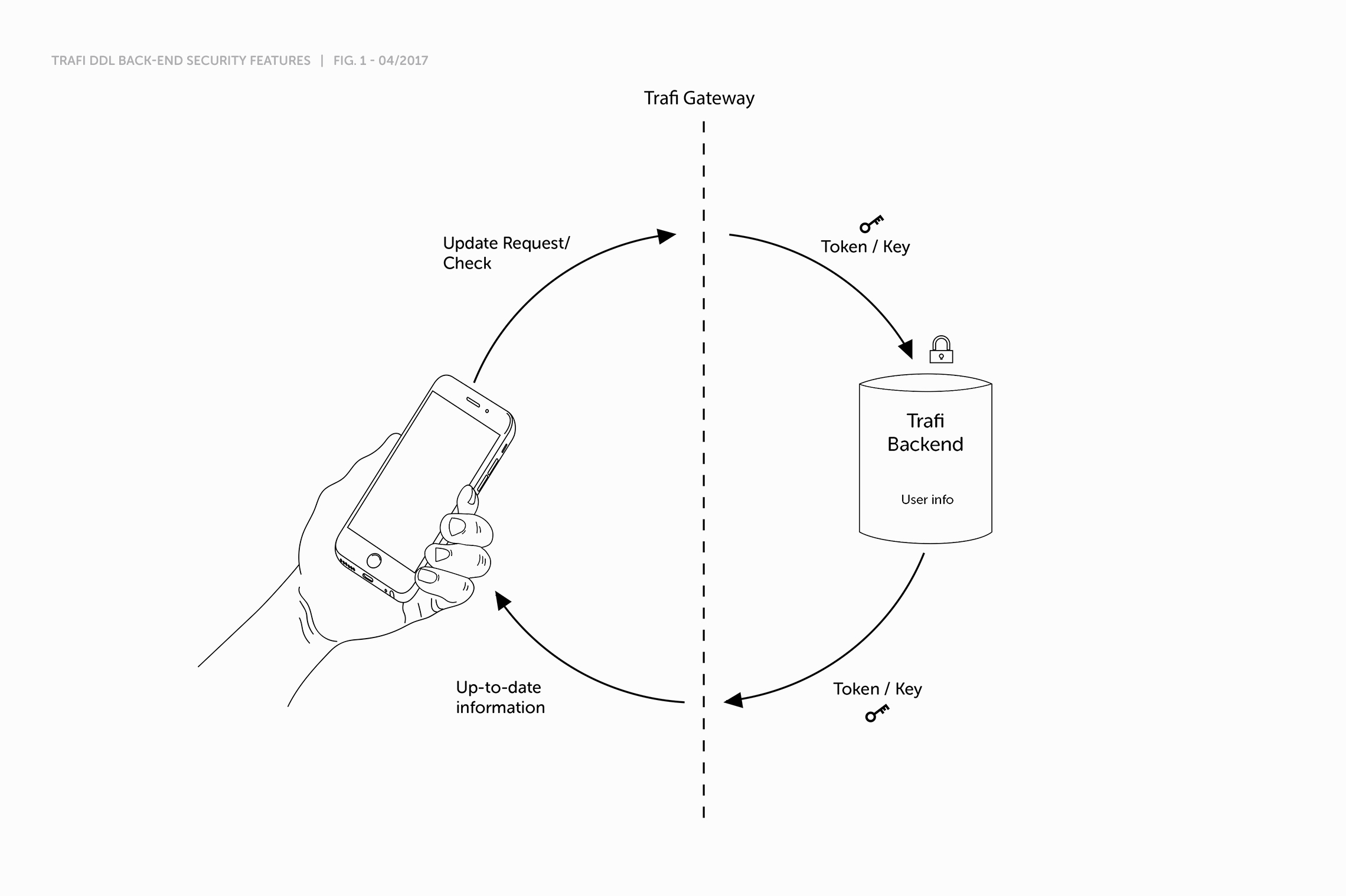 The visual security level uses a gyroscope connected digital watermark combined with continuously animated dynamic OpenGL background, that supports interaction to prevent motion capture frauds. User information and image are always up to date, which makes it easier to identify the person. A barcode is generated from user information to match the barcode in a physical driving license. Visual level security can be dynamically altered and pushed to the devices if a breach is detected.