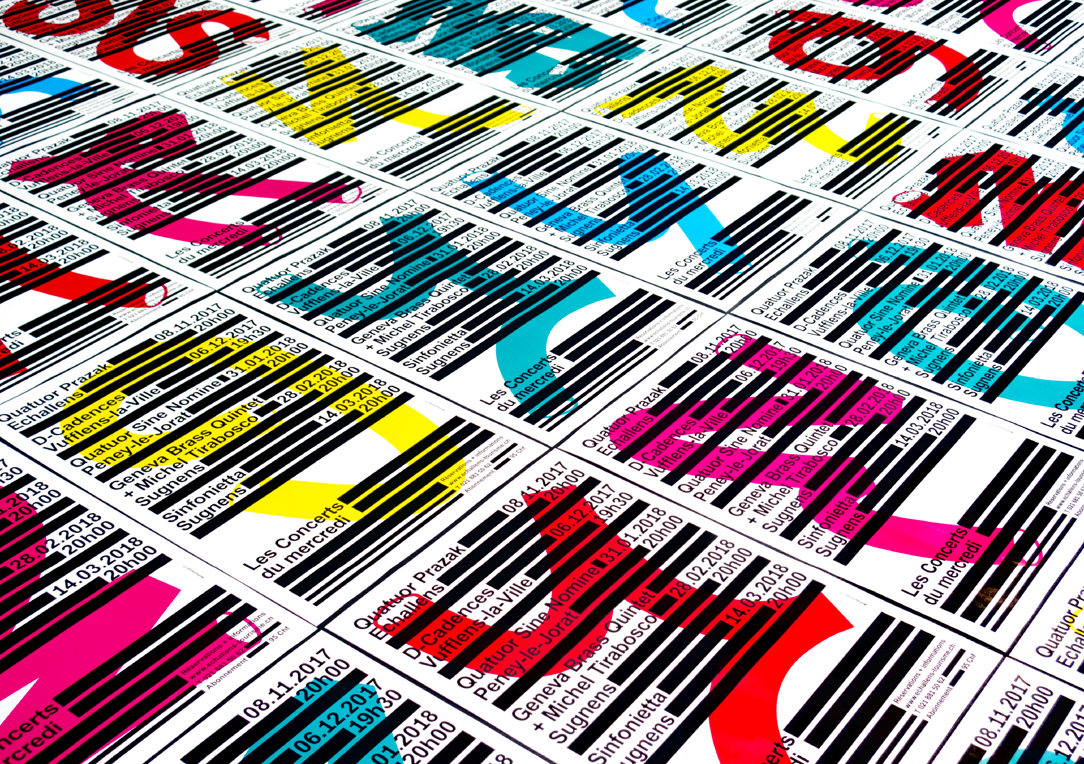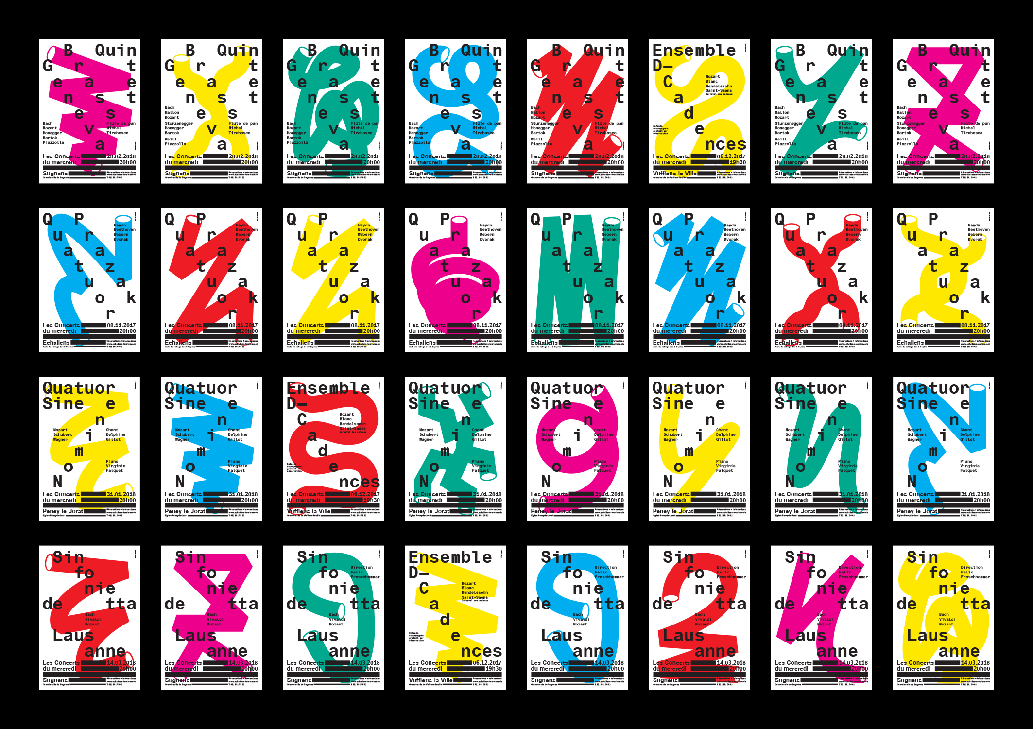 Unlike a musical recording, the conditions of space and time (condition of space-time ) make each performance unique. This observation is the starting point of our approach, which led us to develop a generative design to produce a posters series and a program where each copy is unique.