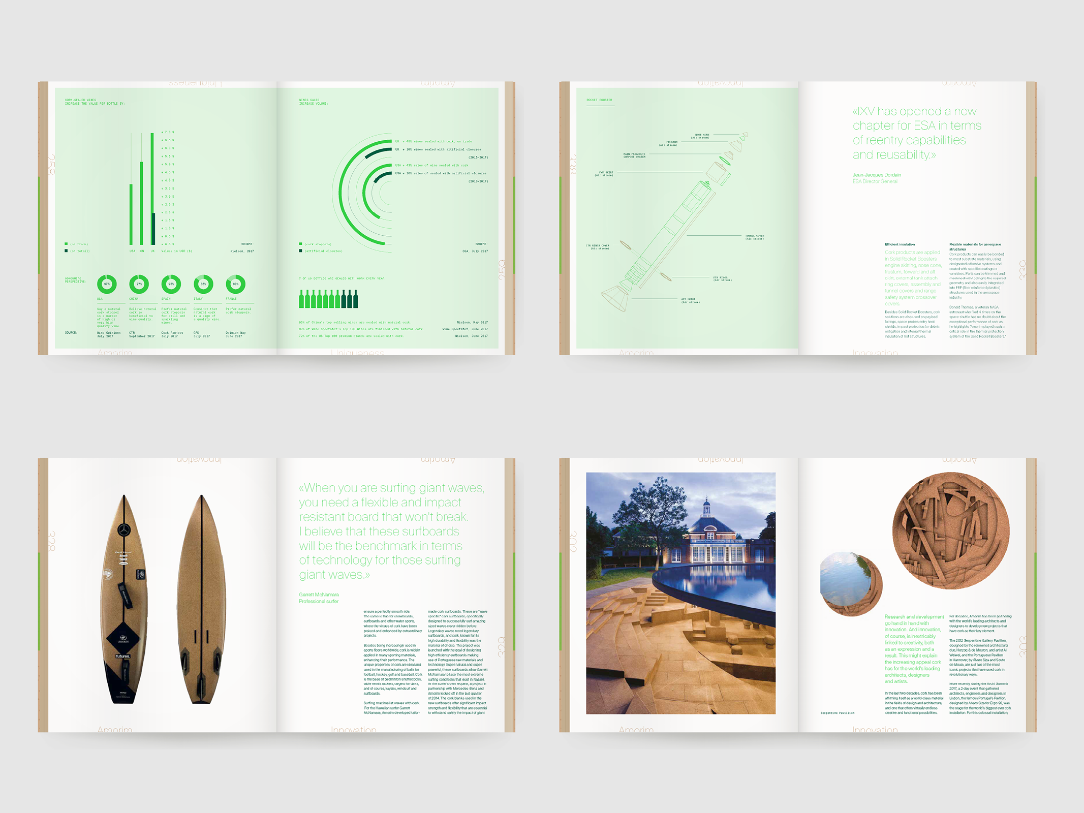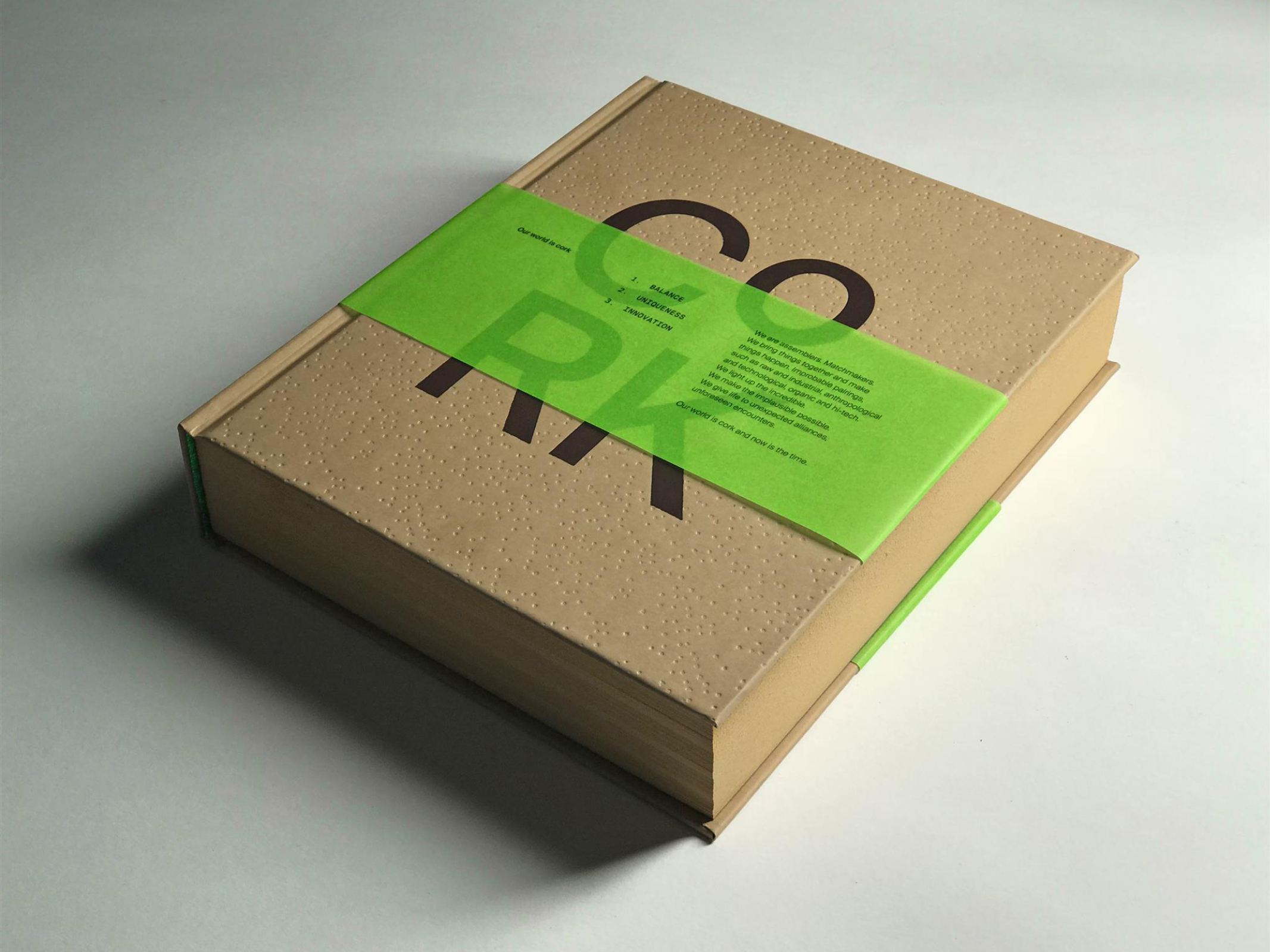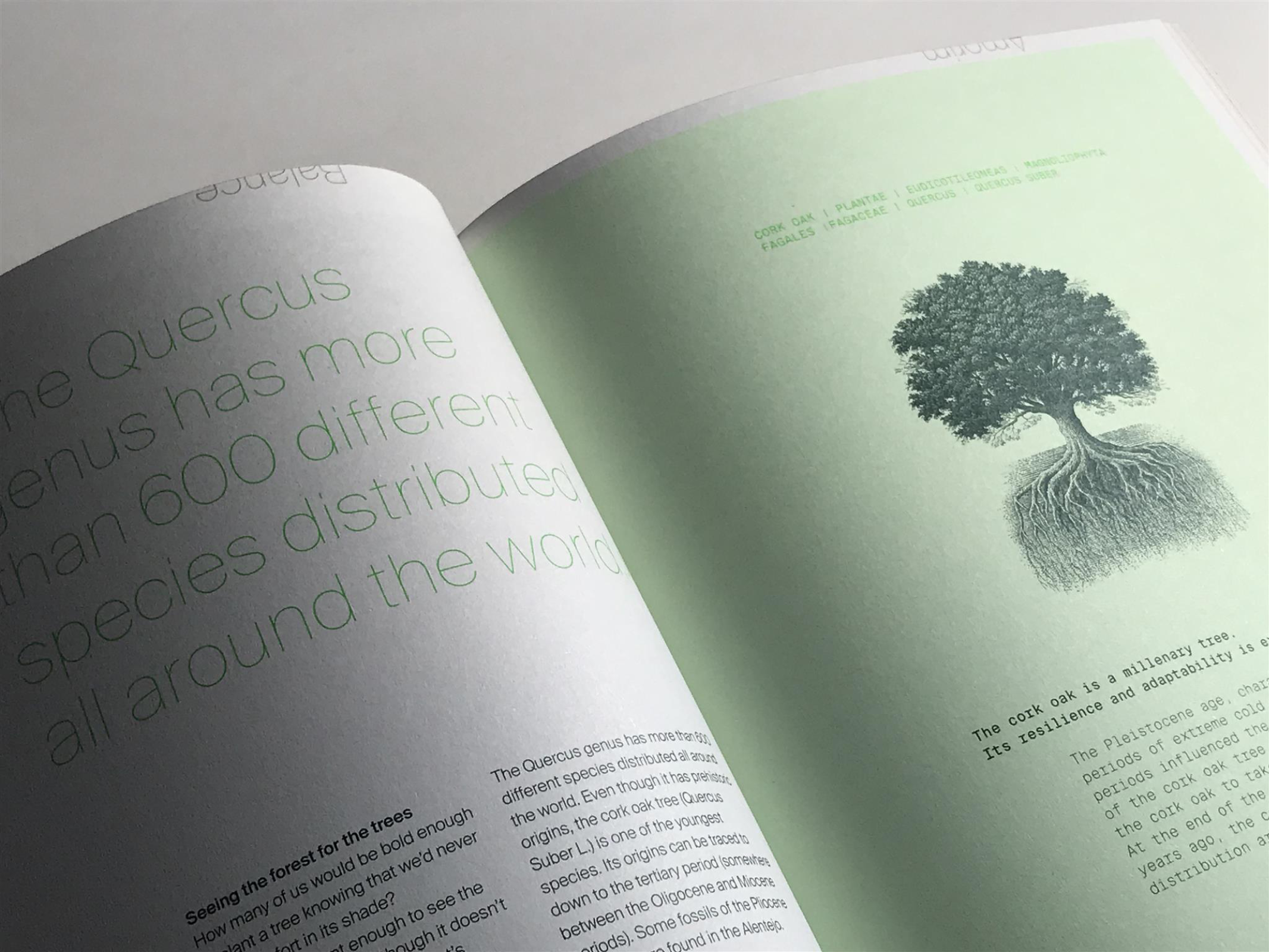 The Cork Book is a book about cork that tells all the aspects of this extraordinary material. Curated by the designer Filipe Alarcao for Amorim (the world's leading producer of cork), the graphic project was developed by studio FM milan, which has always been close to the world of industrial products and architecture. The volume carries on the cover the word Co-Rk composed on two lines, as if it were the initials of a chemical element of the periodic table of the elements, as are iron (FE), copper (CU) and gold (AU) . The color printed on all the faces, the surface texture, the proportion of the Cork Book present the cork as a primary element. In the internal pages of the book contemporary visual codes are used, superimposed on a classic nineteenth-century encyclopedia language. In fact, cork is this dichotomy, a material that has been worked in the same way for thousands of years but has always been able to develop new and unexpected uses.