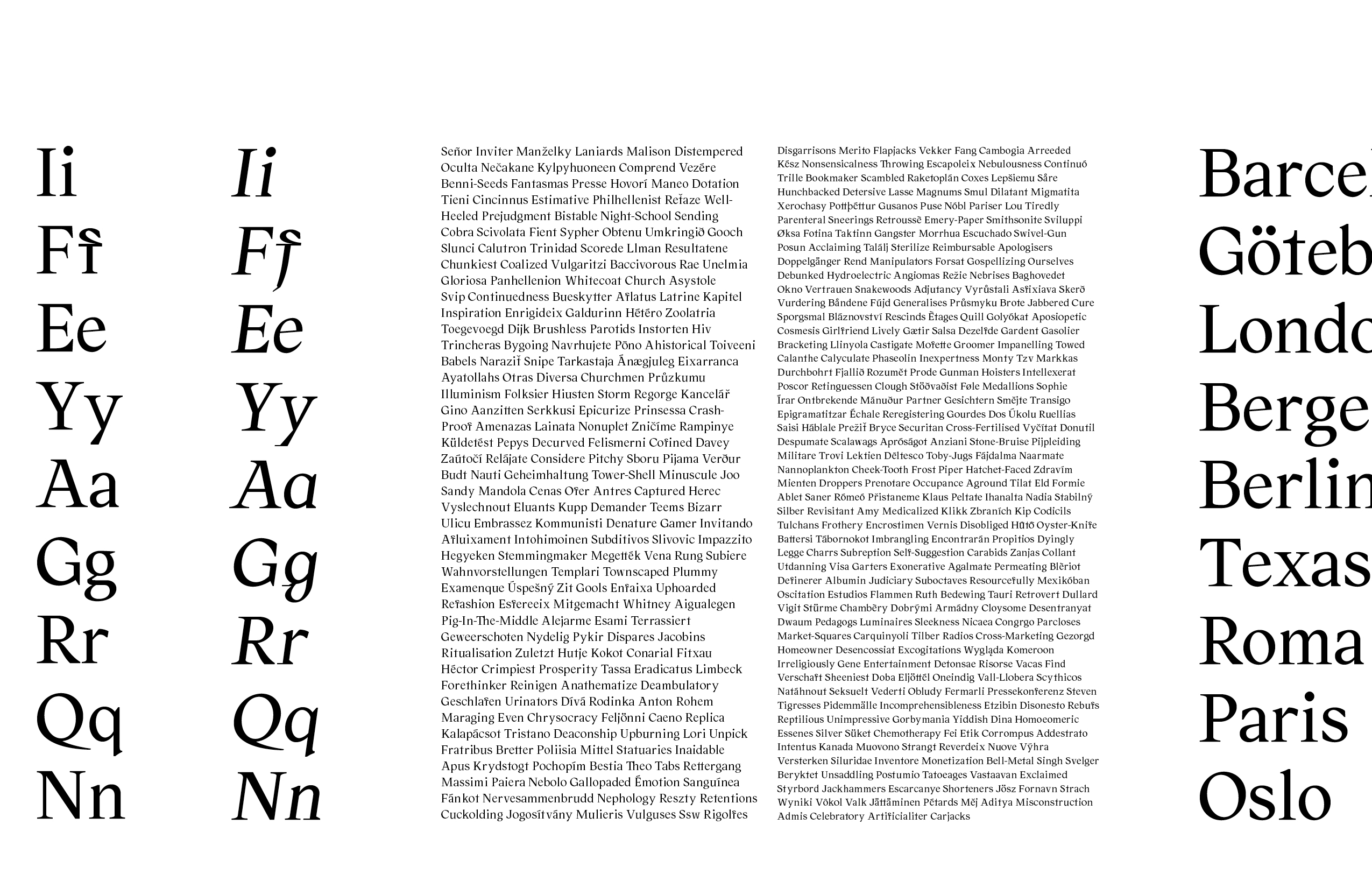 PP Gymnasium is to reckon as an experiment, hard to define because its premiss and defining characters have been dictated during its process of creation. It’s a shaggy serif typeface with over 700 characters in two styles, including stylistic alternates, optical sizes, old-style numbers and wide language support. A typeface that has been in the making over a two-year period, where newly acquired knowledge and technique has been applied during the process, hence the name – Gymnasium. Seeing that most of its personality and quirkiness comes from a naive approach and a lack of knowledge, blended together with an increasing respect and insight into the classic principles. The result is a typeface, schooled by its own process.