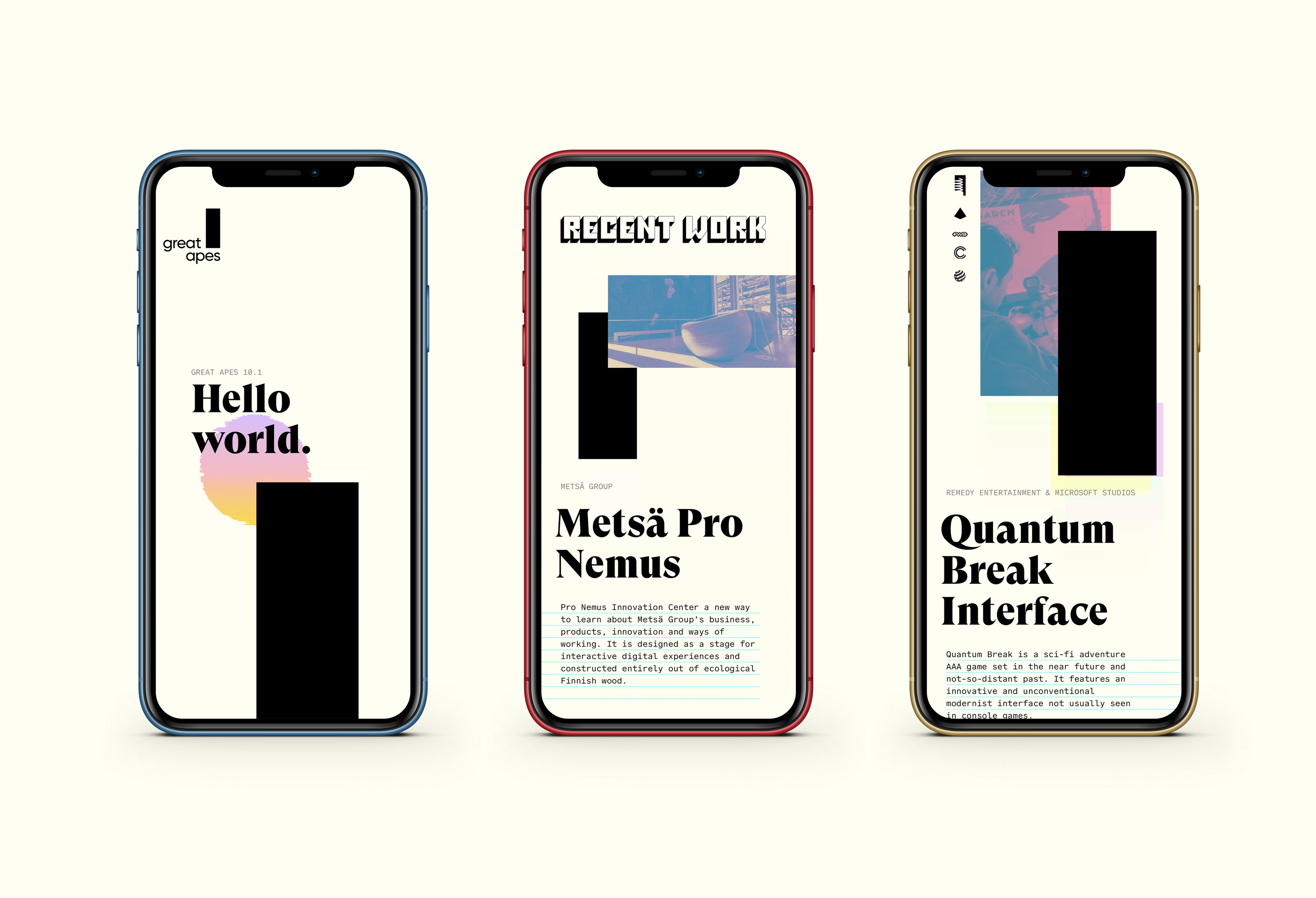 The new Great Apes website is an avant-garde approach to B2B self-promotional sites. The stable of any website; scrolling is intentionally made so addictive that to actually focus on the content in it's static beauty you need to take your hand of your mousewheel or finger of the touch screen. But even if you choose not to focus on the content you will get a subliminal sense of what we are at our core which is innovative, experimental and a tiny bit whimsical.