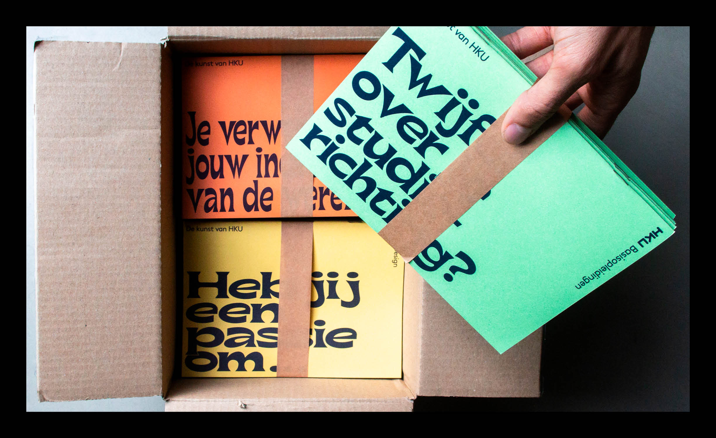 With more than 3,900 students and over 40 different courses, HKU is one of the largest art and culture-oriented institutes in Europe. The goal of the recruitment campaign was to motivate talents to visit the ‘Open Day’ and to increase the registration of potential students. The campaign has a populair, intriguing yet open character which reflects to contemporary young creatives.