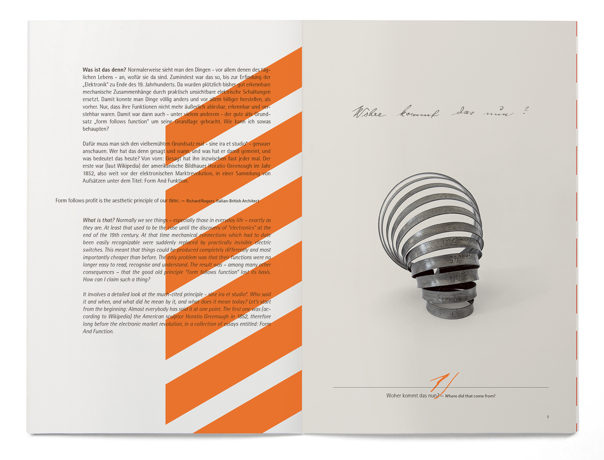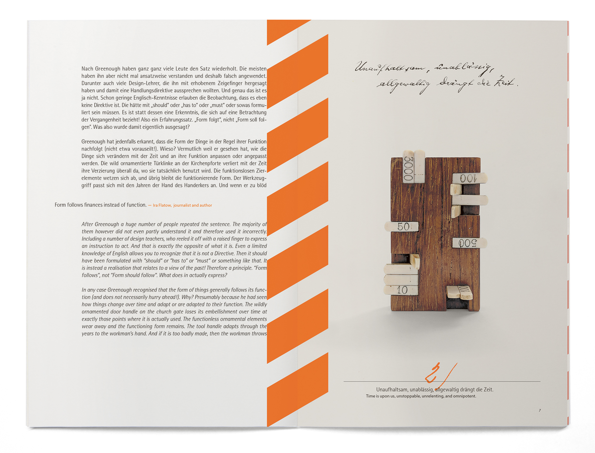 The current issue contains an essay which deals with the question if the motto „form follows function“ – quoted as often as strained and interpreted – is still valid in the „age of user experience“ of „generation y“ and „millennials“. The essay is supported by illustrations of selected historical measuring instruments: Their function can first be guessed on the basis of their form and is then resolved in the form of a memory game on pairs of cards.