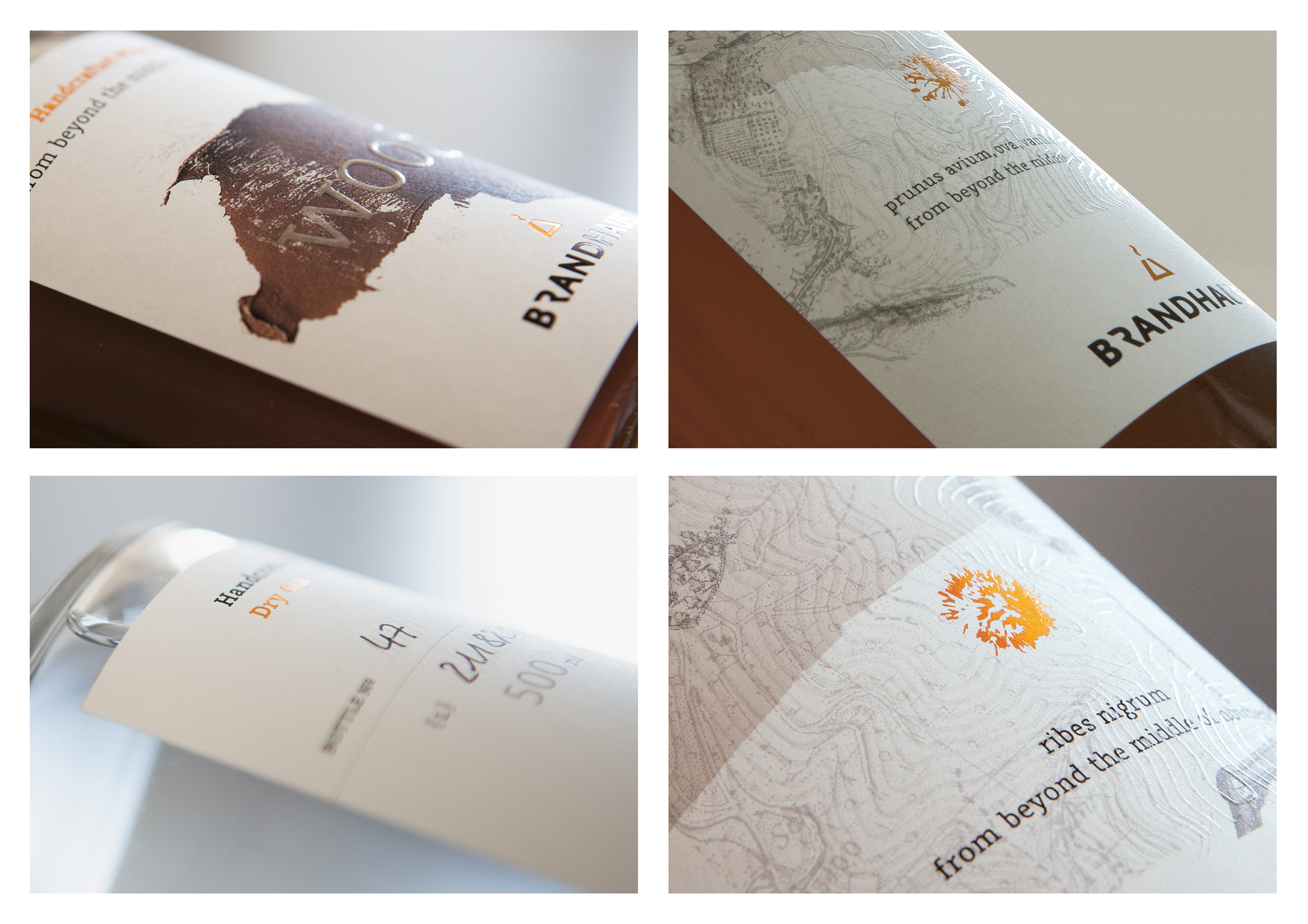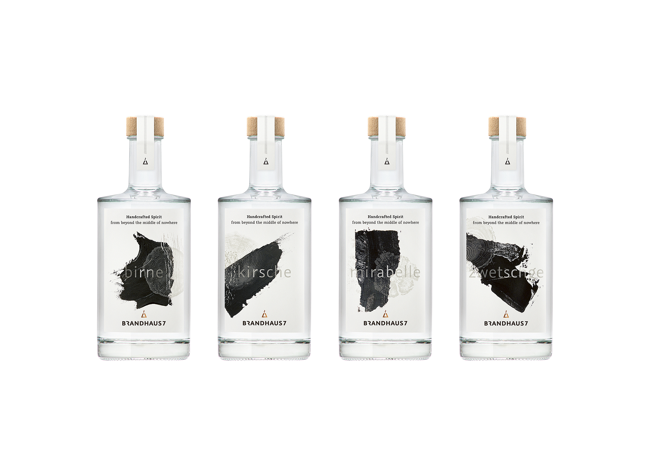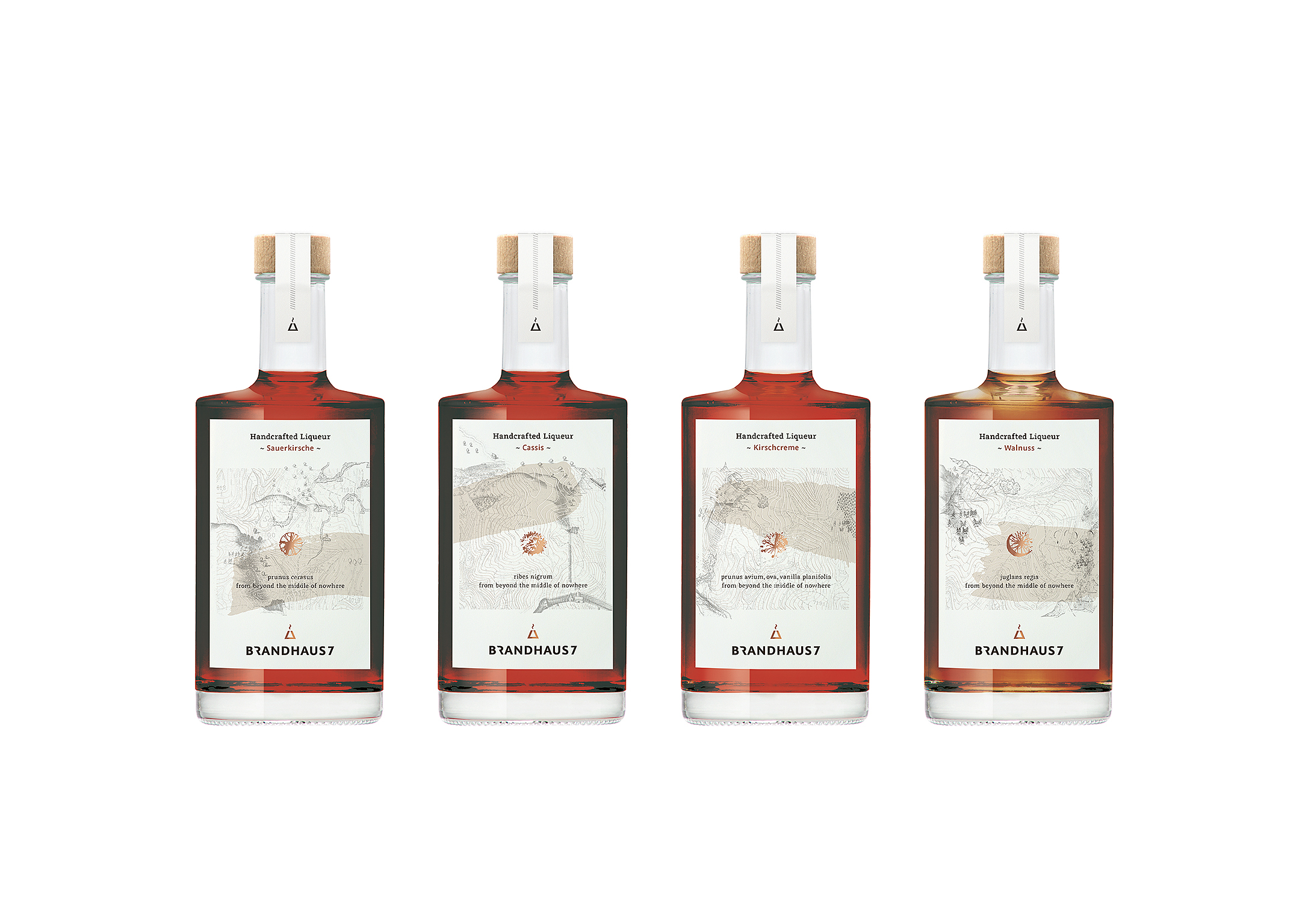 Brandhaus 7 is a small distillery based in a 400 year old farm house deep in the Black Forest in Germany. The philosophy of the company is simple: only use local and mainly self-produced ingredients, create clear and intense flavors, and only supply the highest quality. This philosophy was the basis for the whole brand design.