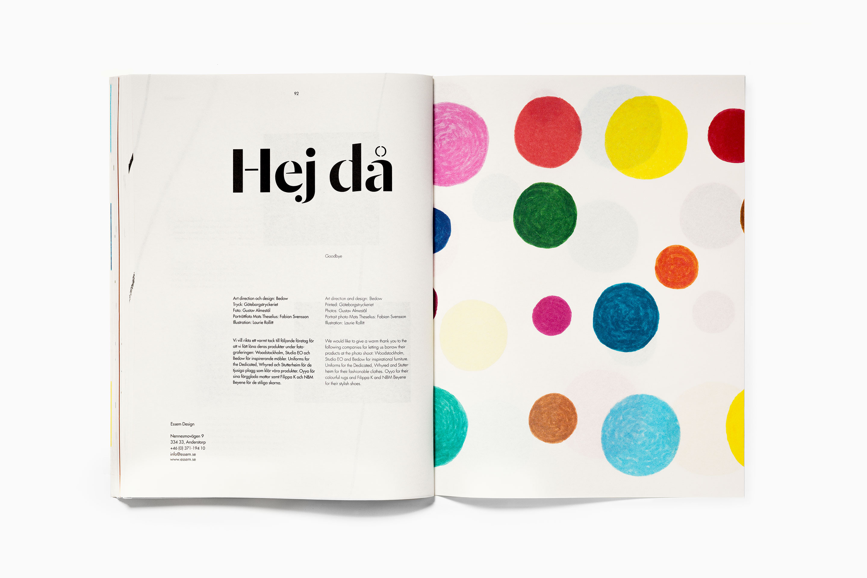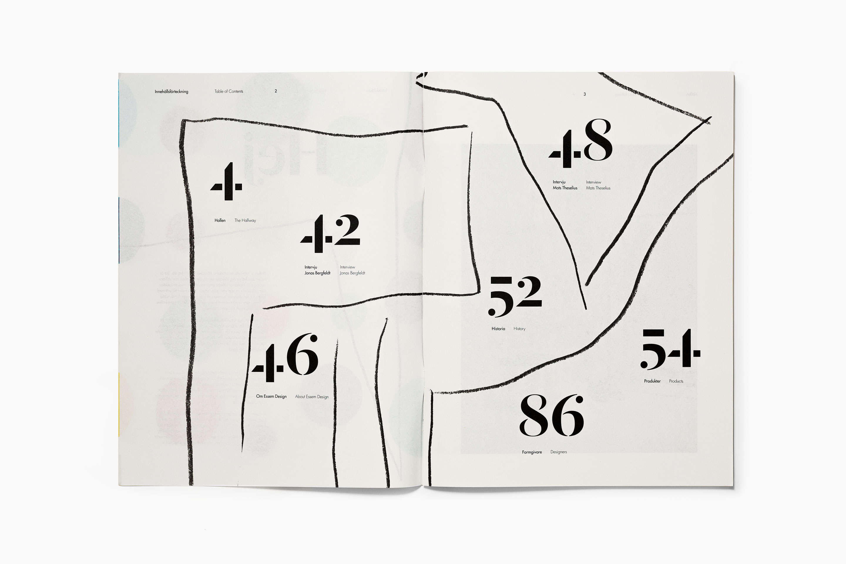 Art direction and design of the 2018 product catalog for Essem Design – a Swedish manufacturer of hallway interiors. The catalog is aimed at architects, interior architects and designers and should act as an inspirational source when designing new homes. The functional Scandinavian minimalistic layout is accompanied by high contrast type, precise photography and abstract product illustrations – all with the idea of giving an eclectic and inspiring experience. All pages are printed on a thin (70gsm) uncoated natural white paper reminiscent of drawing paper pads used by many architects.