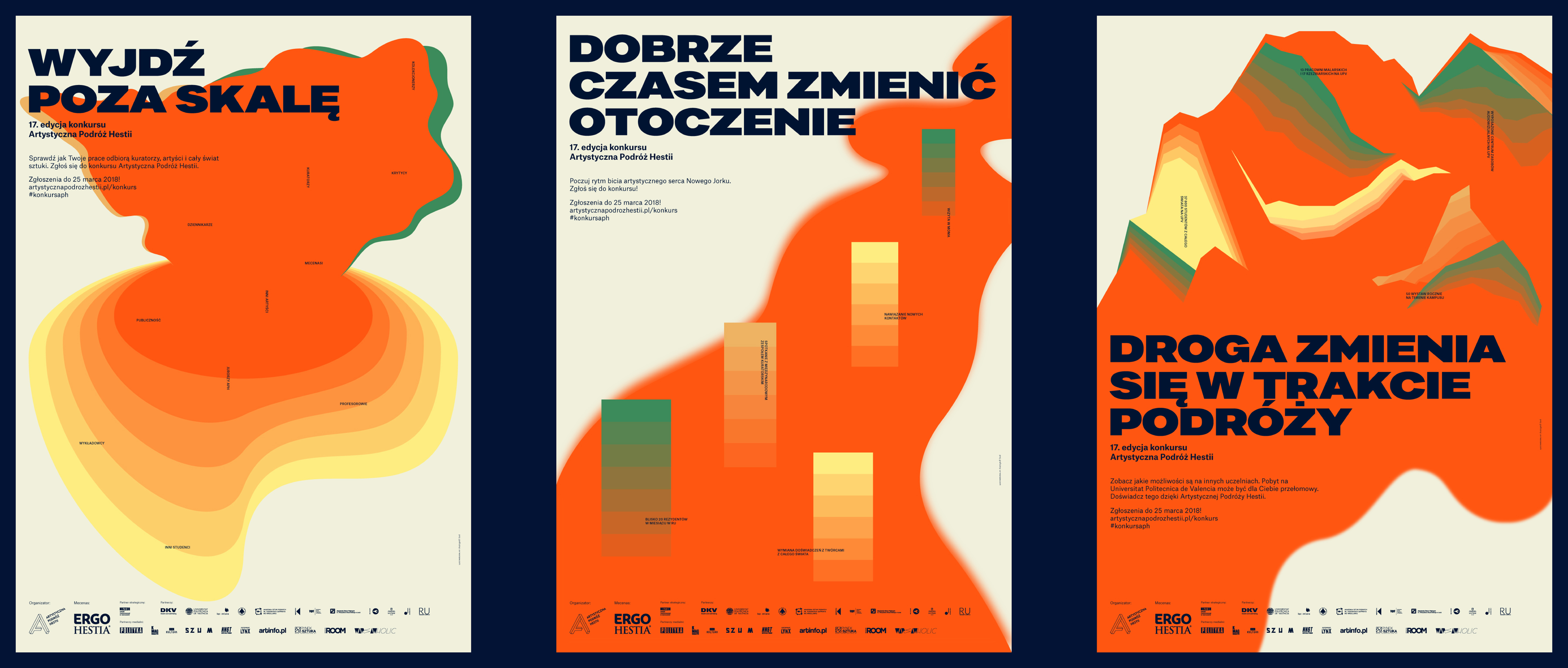 The main visual theme of the APH campaign were visual forms of presenting statistic data. Numbers and statistics allowed us describe in an abstract way the strength and position of Hestia’s Artistic Journey. We created about a dozen messages which addressed various aspects related to the competition – the art market and APH’s position in relation to other institutions, which types of visual arts are missing in the applications as well as information regarding due dates and prizes for the contestants.