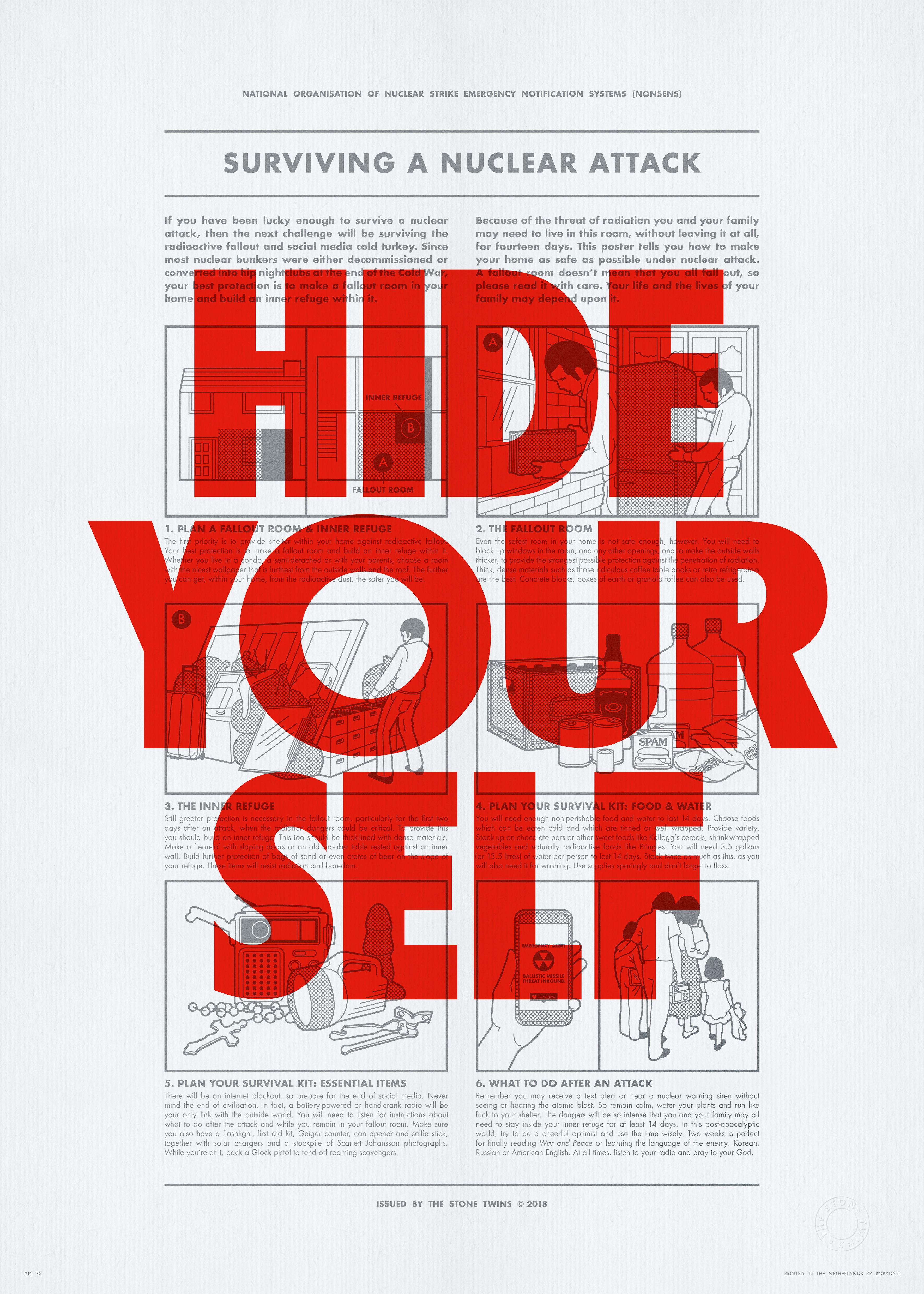 As the threat of a nuclear catastrophe dominated news coverage during the start of 2018, we created this satirical poster as a self promotional mailer.