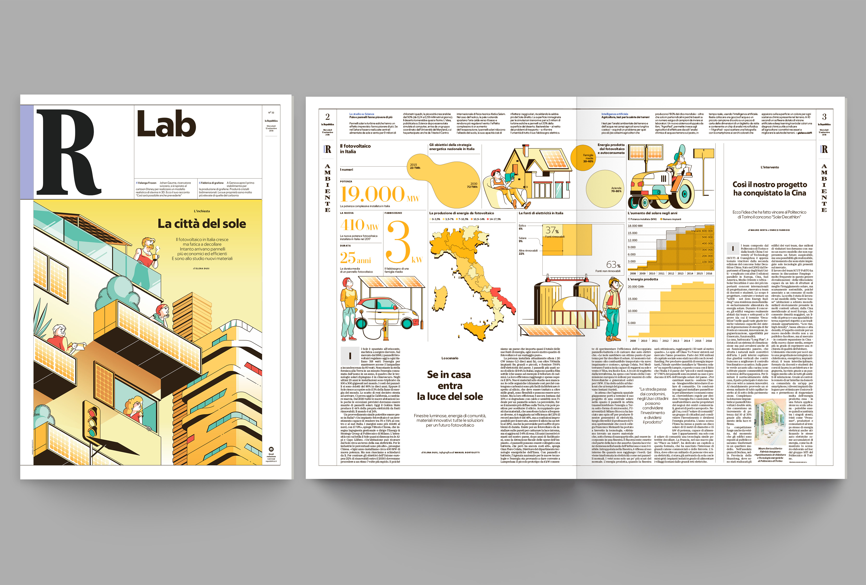 RLab is la Repubblica science and technology weekly supplement. It treats scientific topics in a didactic manner.