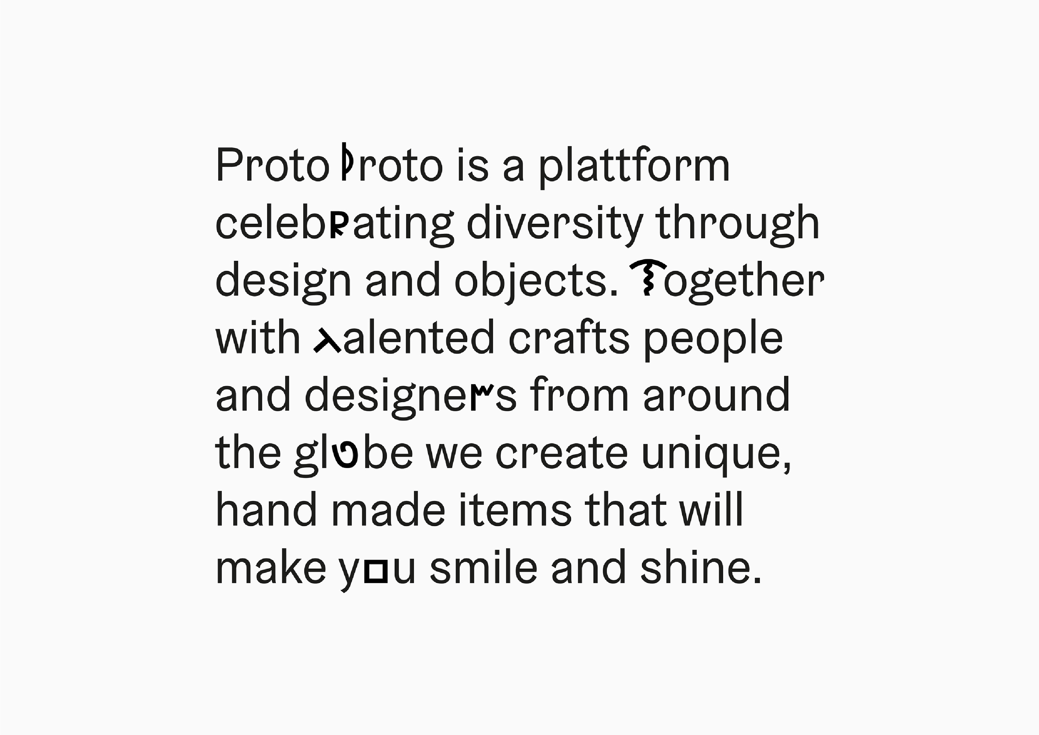 The brief was to position Proto Proto as a friendly company that challenges conventional aesthetics and the model how things are produced, speaking to open minded design consumers.