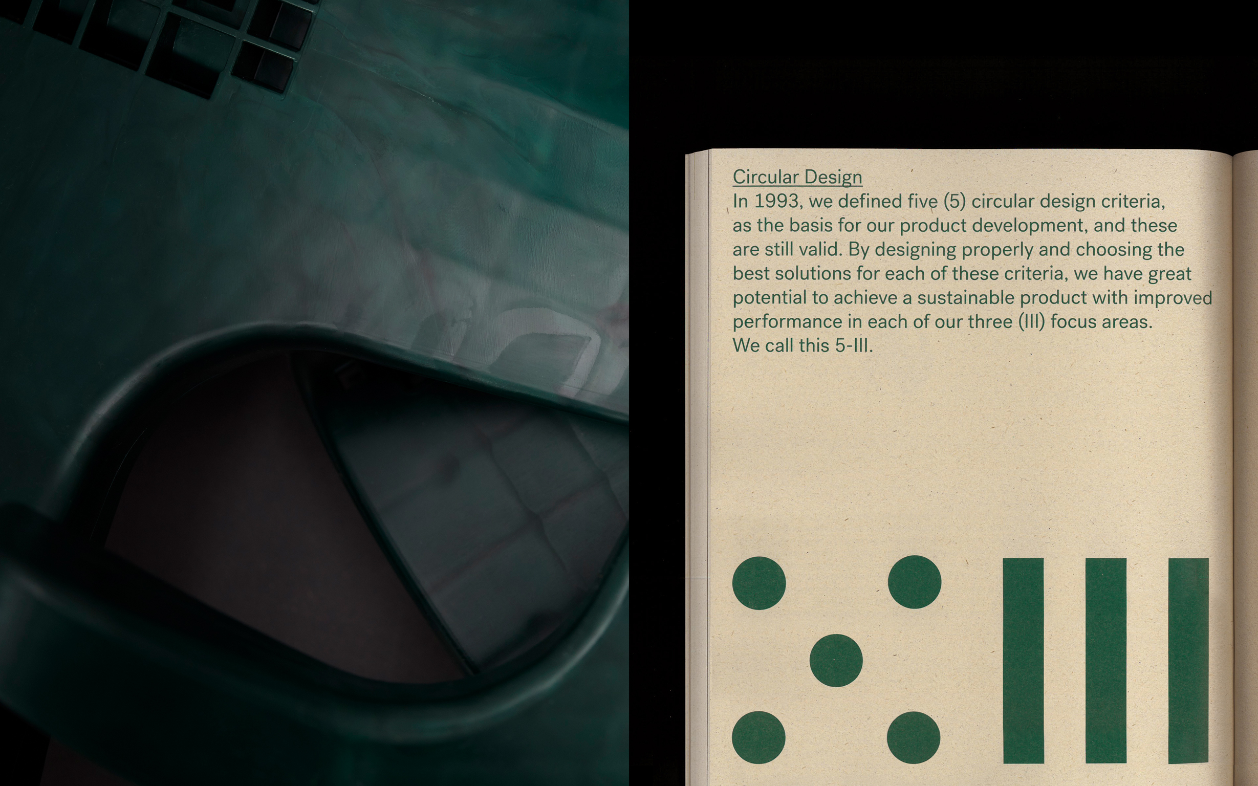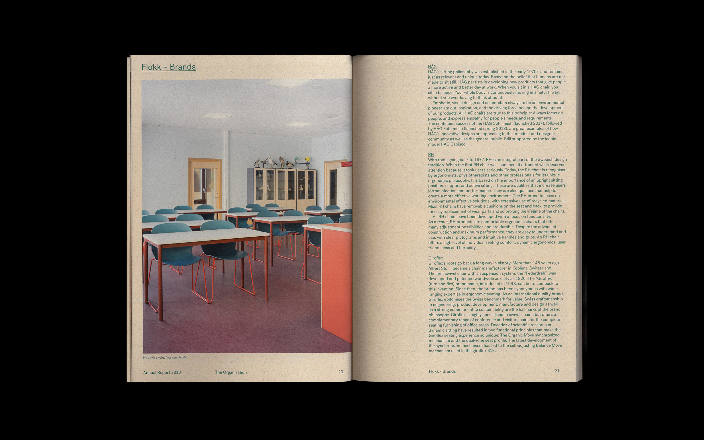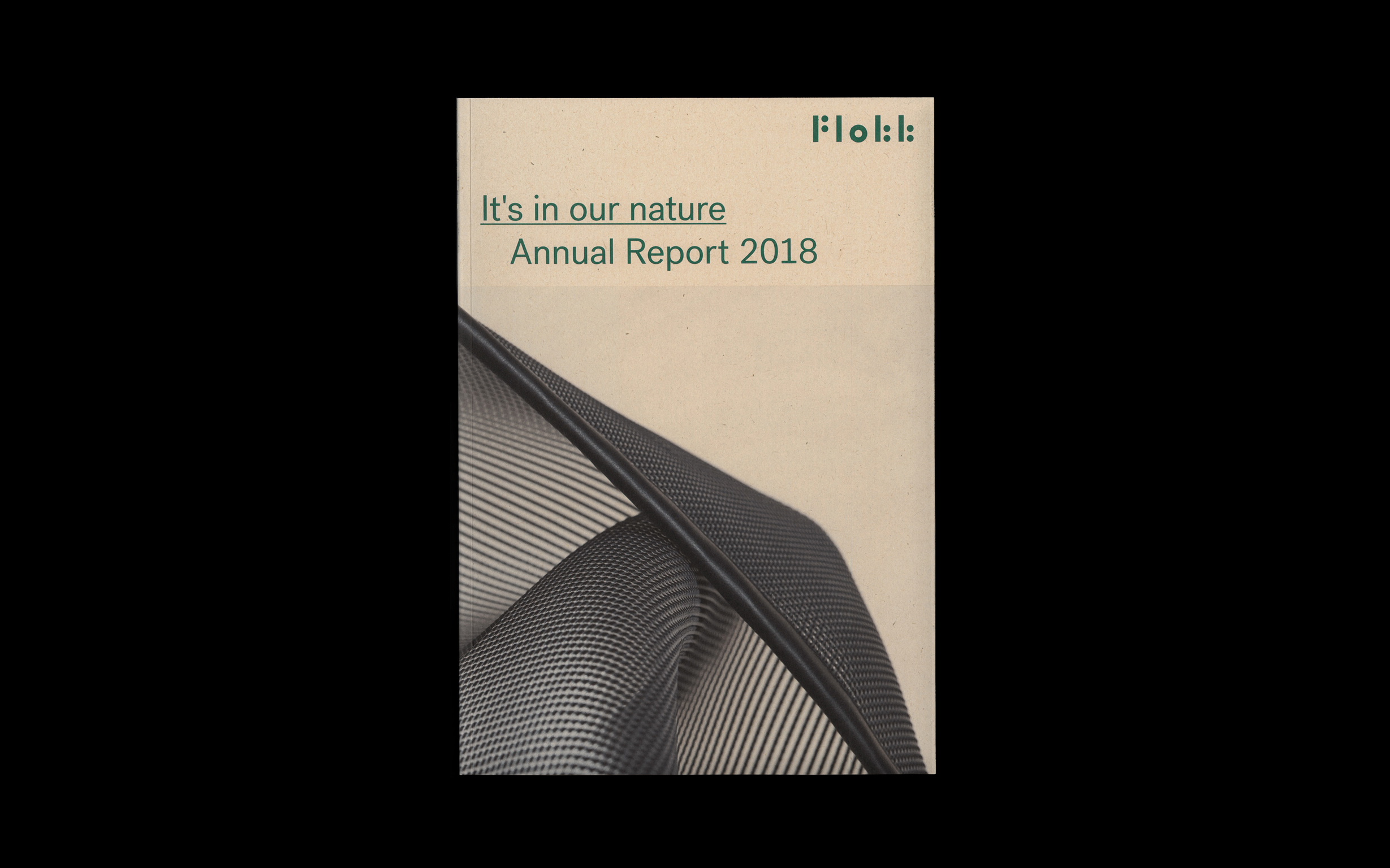 Our concept was to communicate the sustainability with a down to earth tone and transparency focus. The title 'It's in our nature' firstly informed the material choice: paper made from plant waste so that the annual report can actually be thrown away in nature to rot (or recycled as paper). Instead of playing on plain raw materials, we wanted the photos to be of real components used in Flokks products – like plastic parts from recycled ocean plastic, Norwegian wool and wood. As a design choice, we wanted to text and design to use as little ink as possible to emphasize the low footprint of the print.