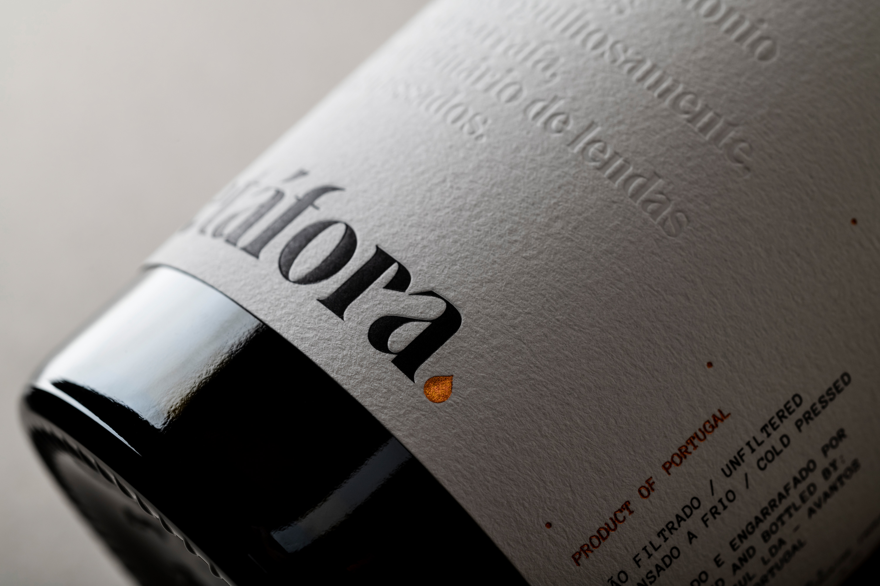 The minimal approach of the logo favors the relationship between the purity of the product, its character of selected olive oil, and the craftsmanship and care that one wants to communicate. A charismatic and serifed typography was used, historically linked to the written word, identification of the manufacturer, batch and hand-written bottles helps to contextualize a craft scene. The chromatic palette is neutral, with metallic color notes. Priority for the written word: label with text, for those who have time and value reading. Not for hurried people. Use of metaphors as a graphic element, whose theme is related to the universe of olive oil, through the exploration of words such as mountain, river, tree, forest, field, etc. Low-relief text on the label (which is a metaphor for the cold and manual method of pressing the brand's olive oil).