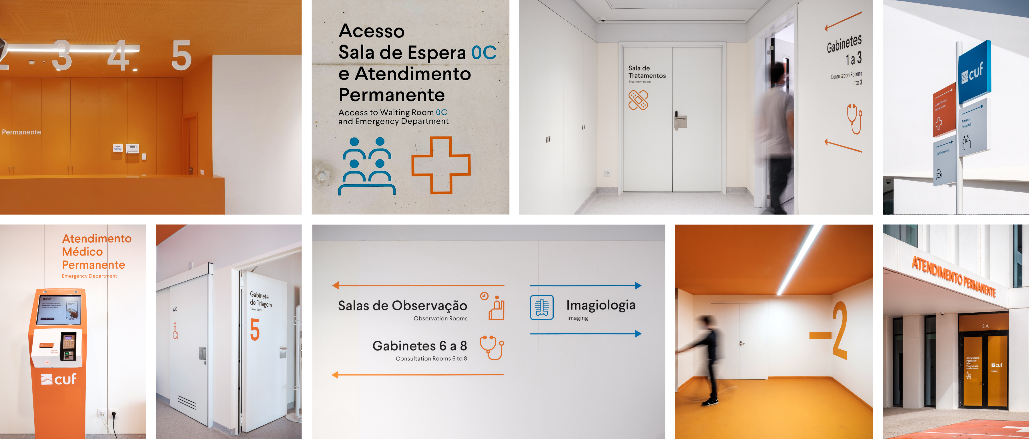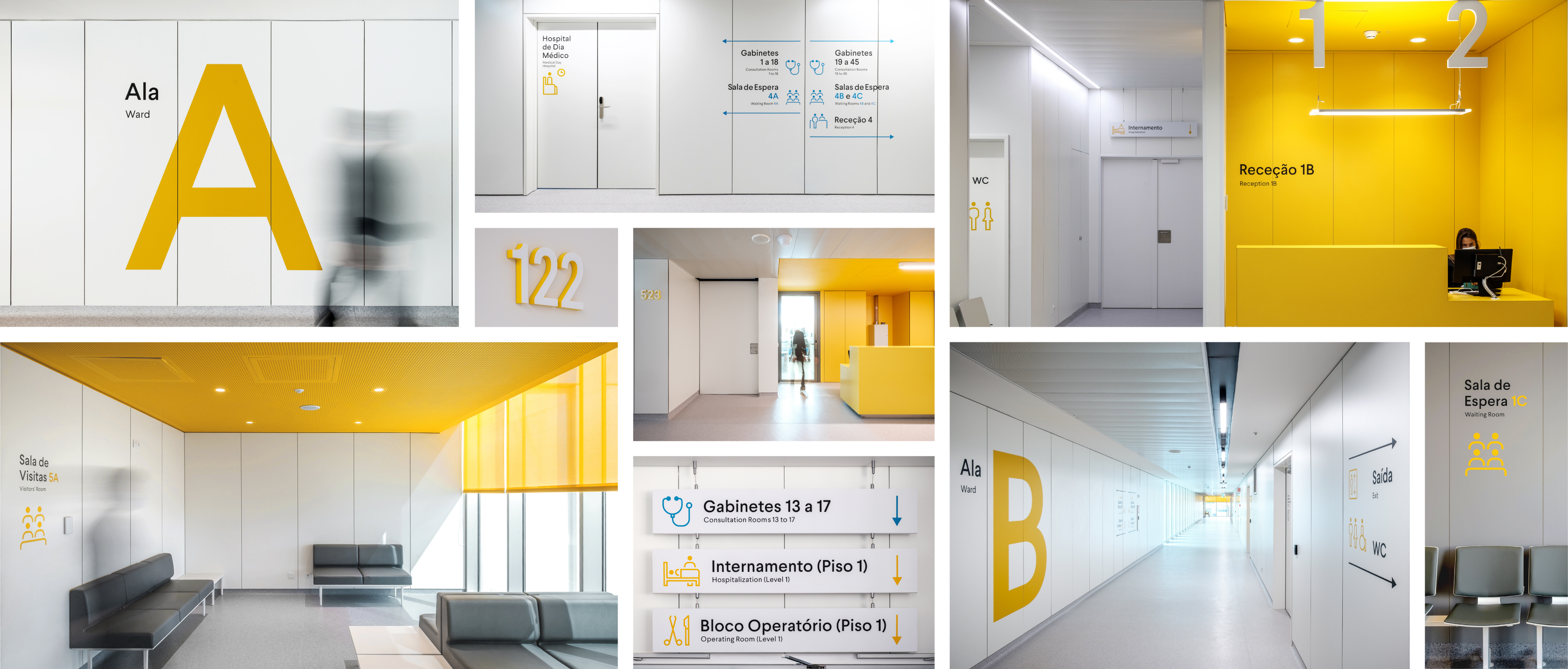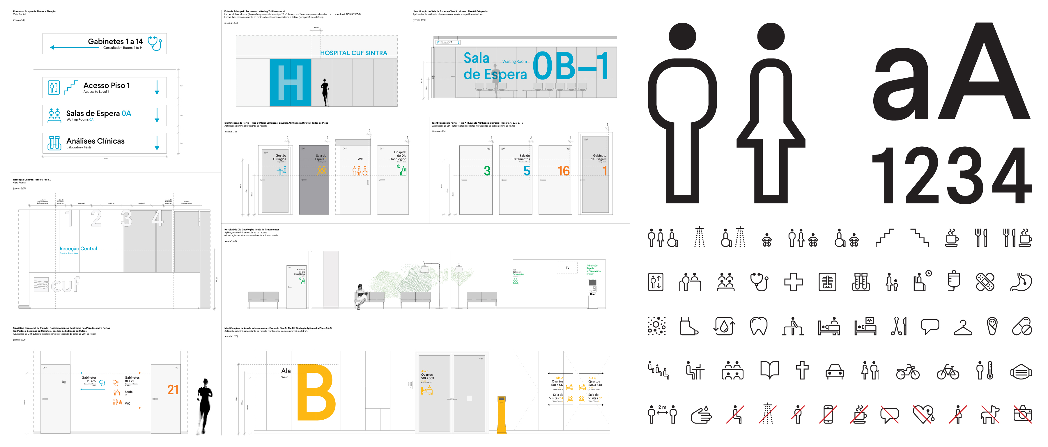 This new signage concept for CUF hospitals was developed as a global system with a style guide, and also developed on individual projects for each hospital where the system is adapted to each hospital’s specific architecture and operational needs.