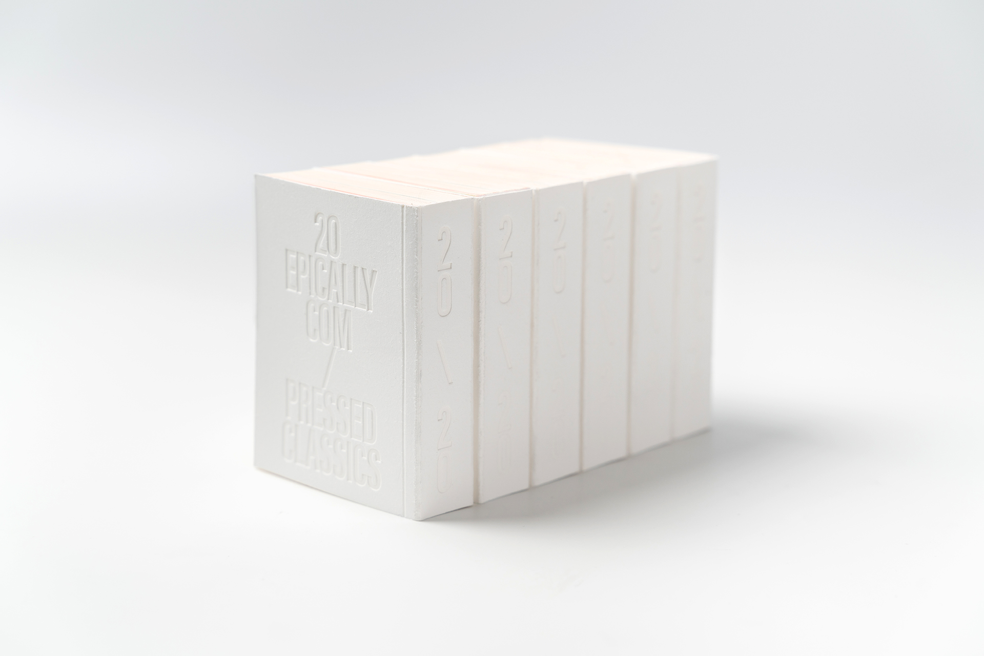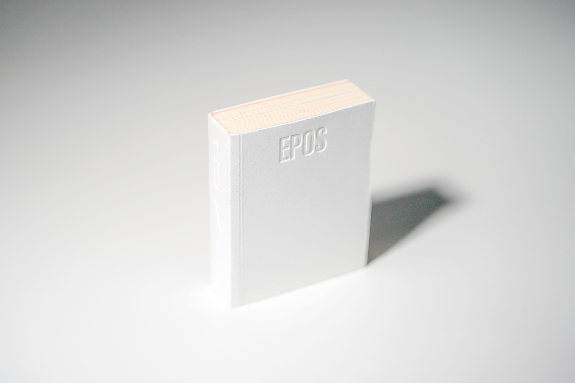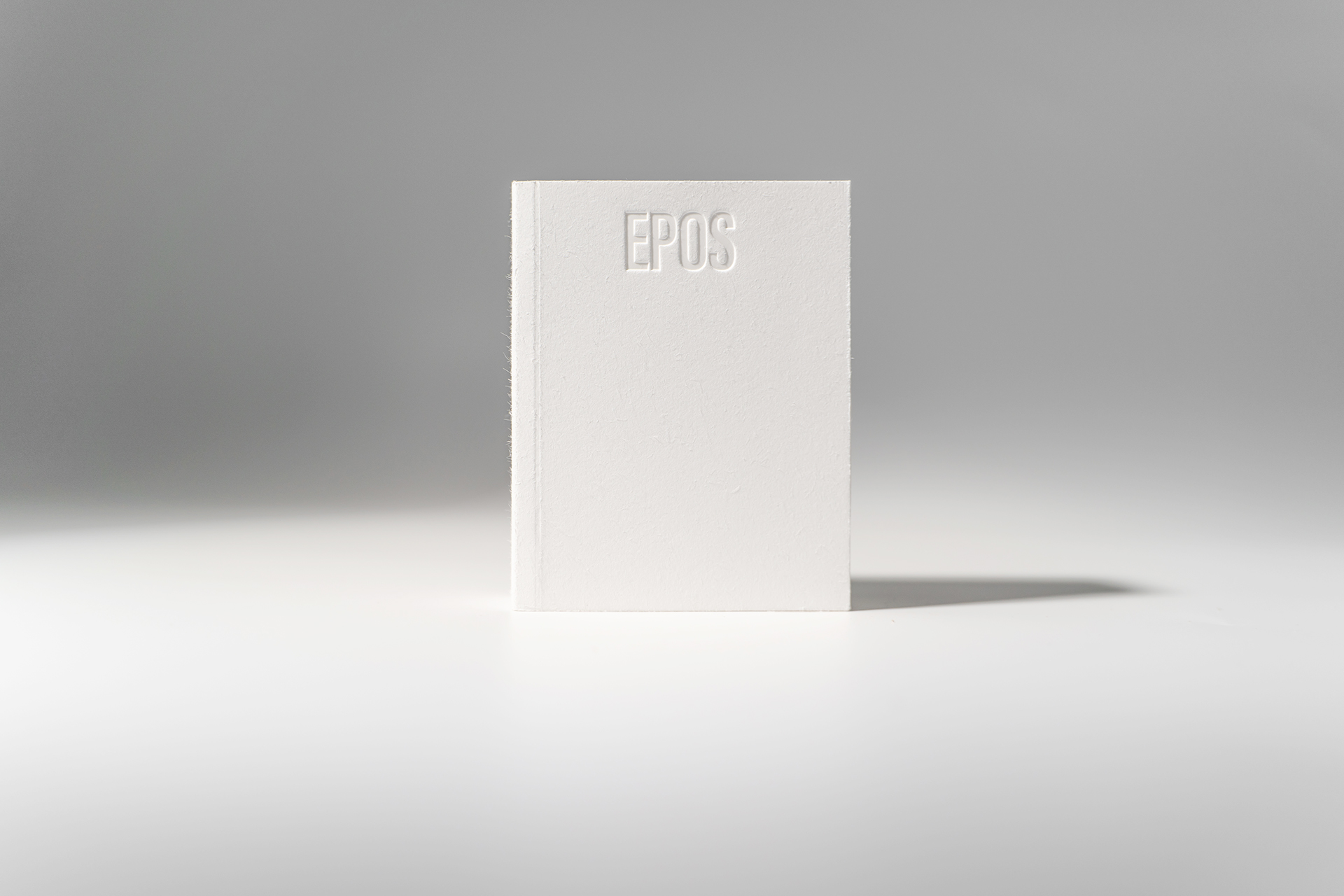 The book's purist cover is a minimalist translation of classical book designs of the past, reducing all information to a simple title. Its minimalist design contrasts the maximalism of the contents to underpin the contradiction between big and small. The all-white embossed cover serves to create the essence of a treasured objet d'art, people will want to keep. a treasured objet d'art. “Epos” was printed in 300 numbered copies, available at oddities bookstore Dolce publishing, Athens Greece, at the Villa premises on Crete and through direct mail to visitors.