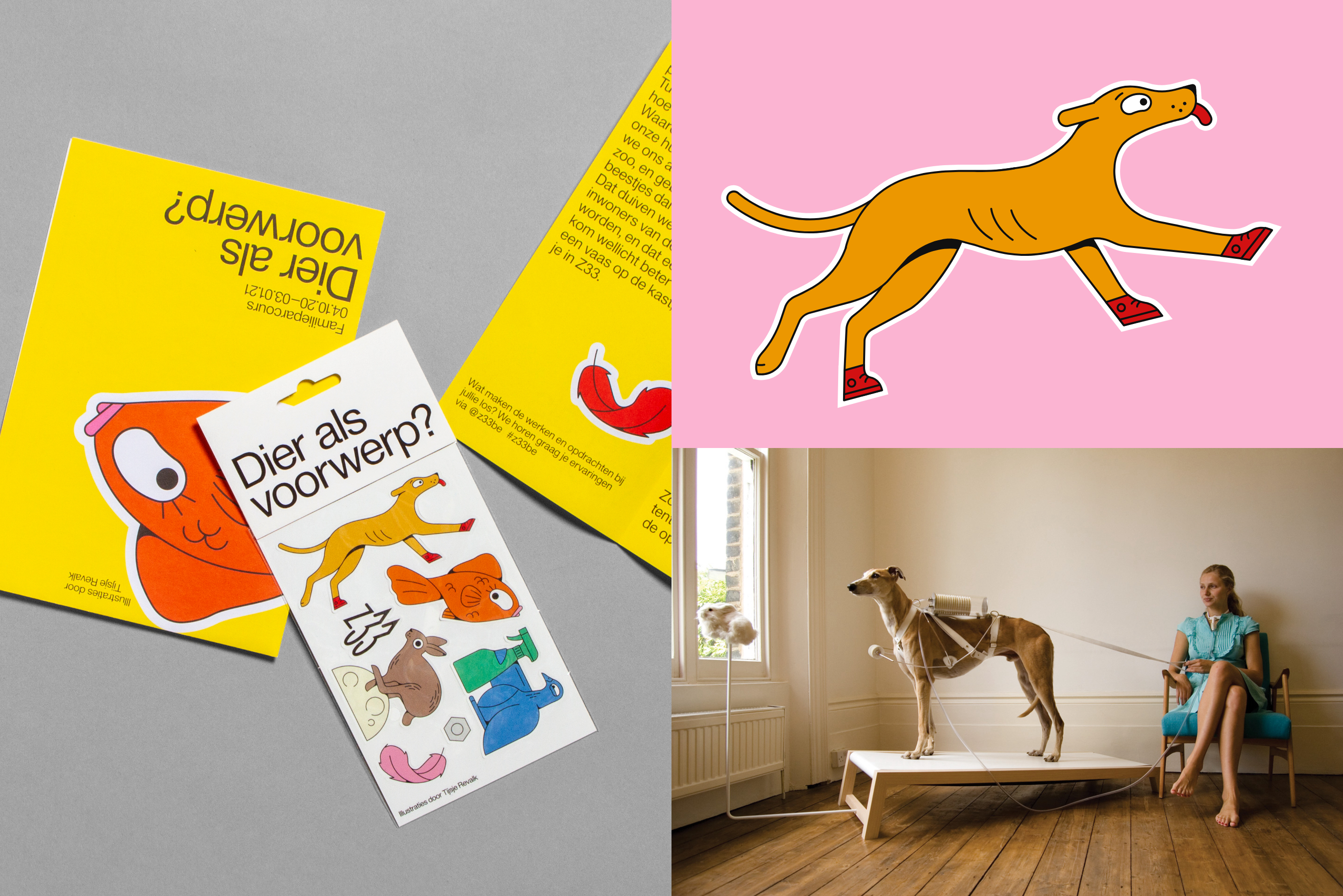 Next to the development of the Digital House of Art, Design and Architecture, our studio was commissioned to rebrand the family programme. Z33’s heart beats for talent development and scintillating collaborations, one design requirement was to collaborate with (young) designers, without being limited to one style. Every upcoming exhibition, we ask different upcoming illustrators to create illustrations based on the pieces of the current exhibition. This results in plenty of variety in content and style, while building a strong, recognizable brand identity.