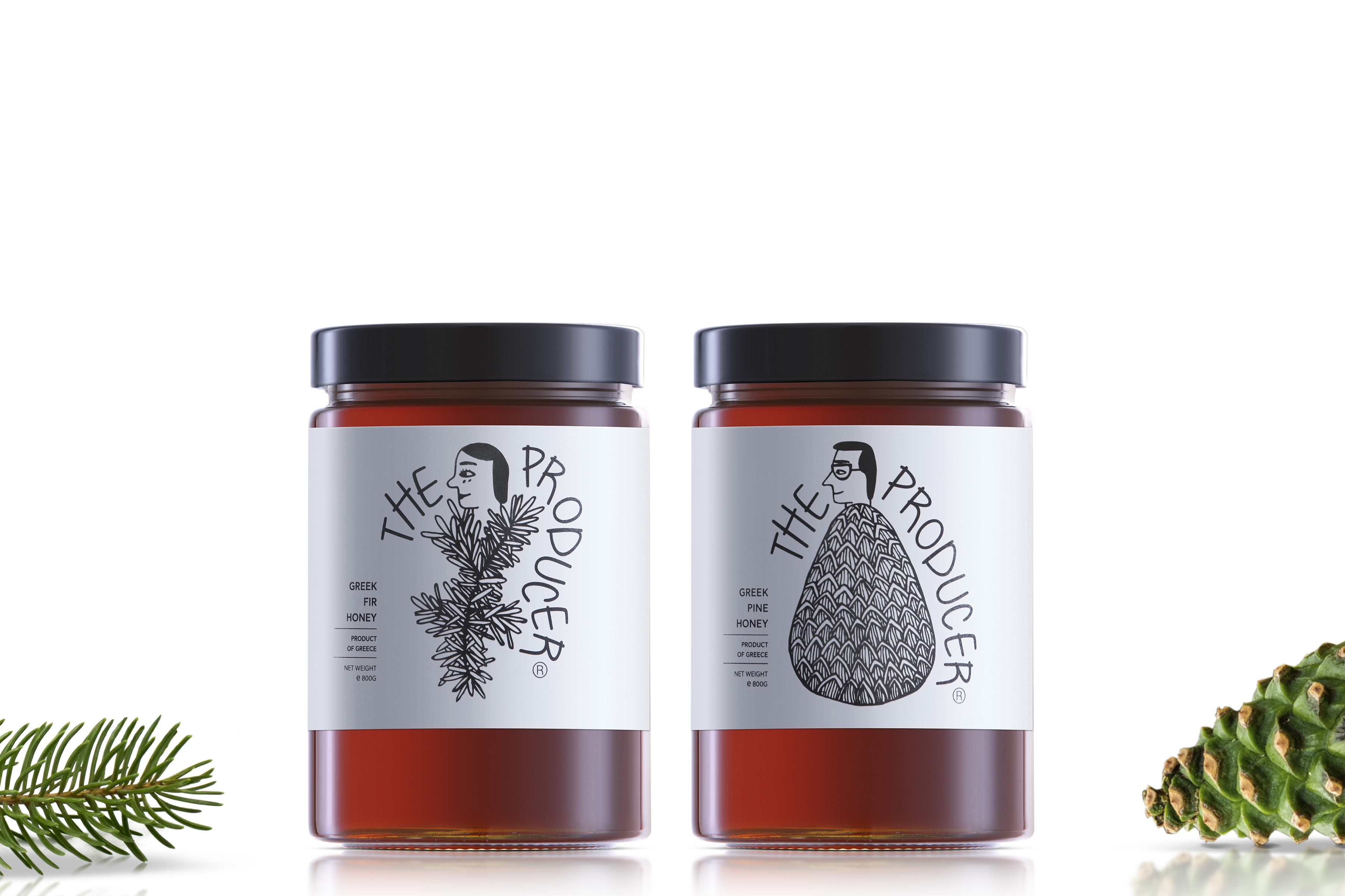 The minimal design of the packaging with the mixed typography and the black & white printing concludes the branding concept of this limited production of pure, natural, authentic, high value Greek honey.