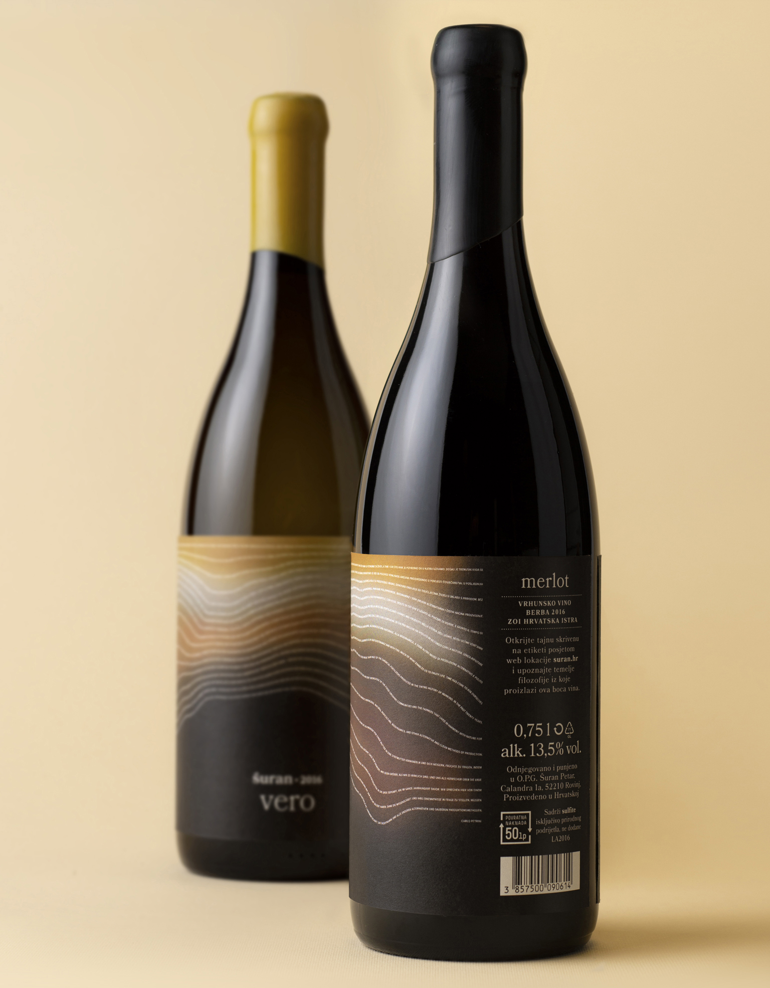 The idea behind our label is based on this most important characteristic of biodynamic agriculture – enriching the soil with natural preparations which significantly increase the microbiological activity of the soil. For this reason, we chose to present this microbiological activity on our label with a cross section of the soil. In our design, microorganisms have been represented by letters, which form a text written by Italian scientist, researcher, and activist, Carlo Petrini. As an activist he proved himself with the Slow Food International movement, which he also founded. In the quote used on the label (in Croatian, Italian, English and German), Petrini calls for environmental awareness, criticising mass production of food. He instructs us to return to ancient knowledge of farmers and to communities that have produced food and lived in harmony with nature for millennia.