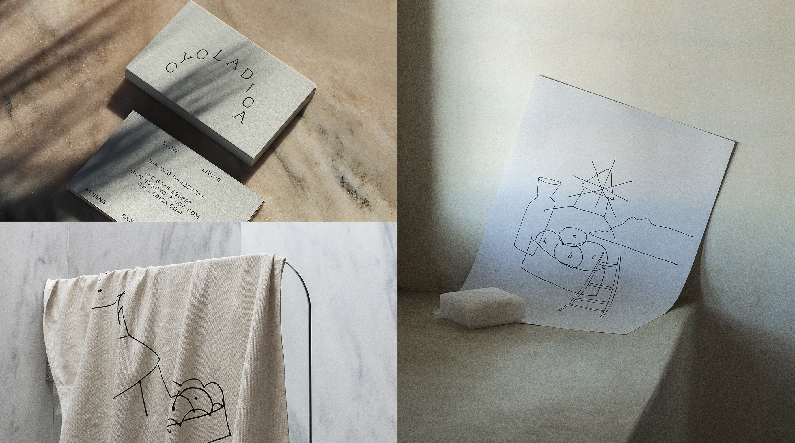 Being a brand with an international range, besides the naming, we created a series of applications that convey the sense of staying at the Cycladica residences as a holistic experience, centered around each venue.