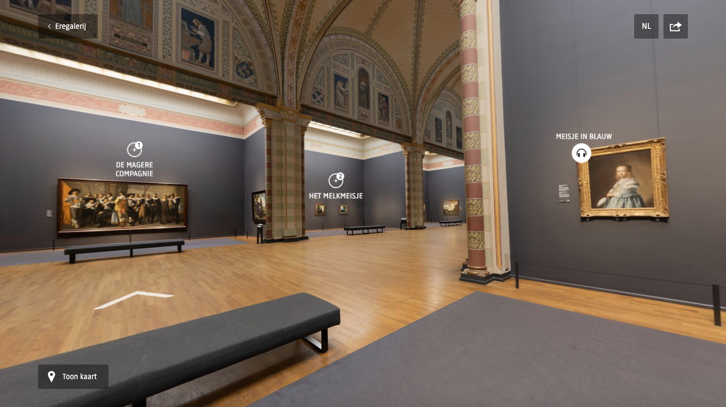 With Rijksmuseum Masterpieces Up Close you get the feeling that you walk through the abandoned museum exploring the stories behind the artworks in peace. A specially developed 360 degree version of the Gallery of Honour takes you past eighteen paintings that are explained with text and audio fragments. Thanks to the use of new patterns, navigation is a lot easier than with standard 360 tours, and it is easily accessible on both desktop and mobile. During the online tour, you can zoom in to the smallest details of art treasures. We used the ultra-resolution storytelling tool Micrio, build by strategic technical agency Q42. With this technology it’s possible to smoothly display very large images and 360 degree footage