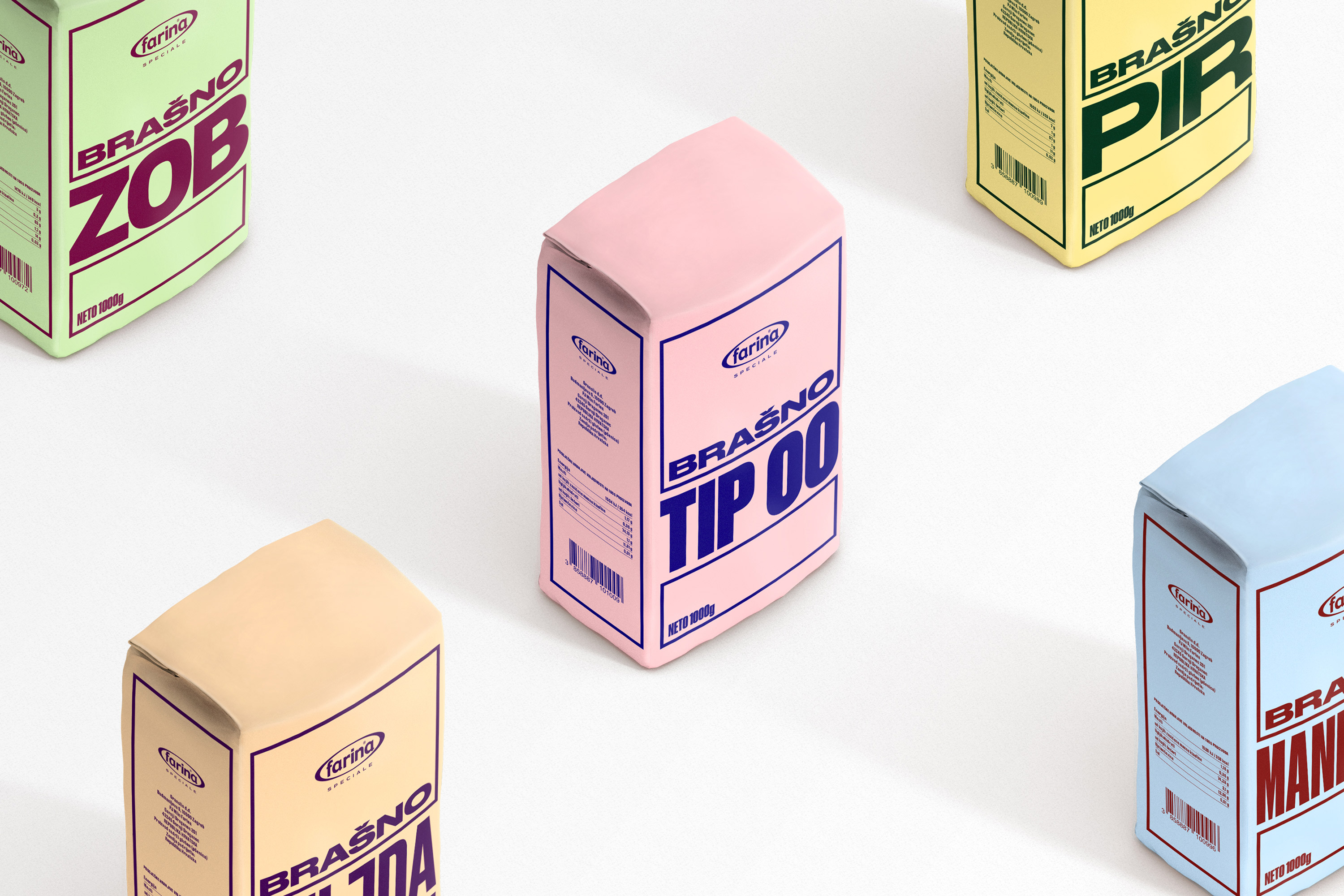 Farina Speciale is a product line extension that introduced special flour types in the conservative Croatian market. The main target segment is open-minded people with a progressive outlook on food and experimenting. We decided to break category design standards and create a packaging design that will stand out on the shelf as both different and distinctive.