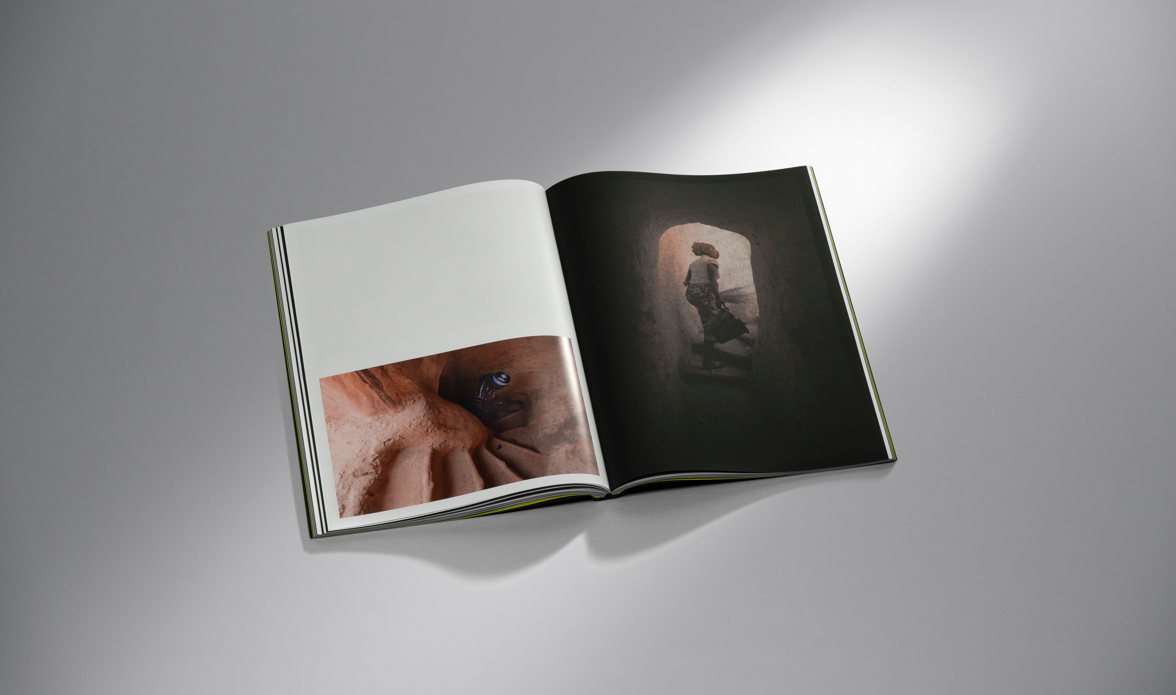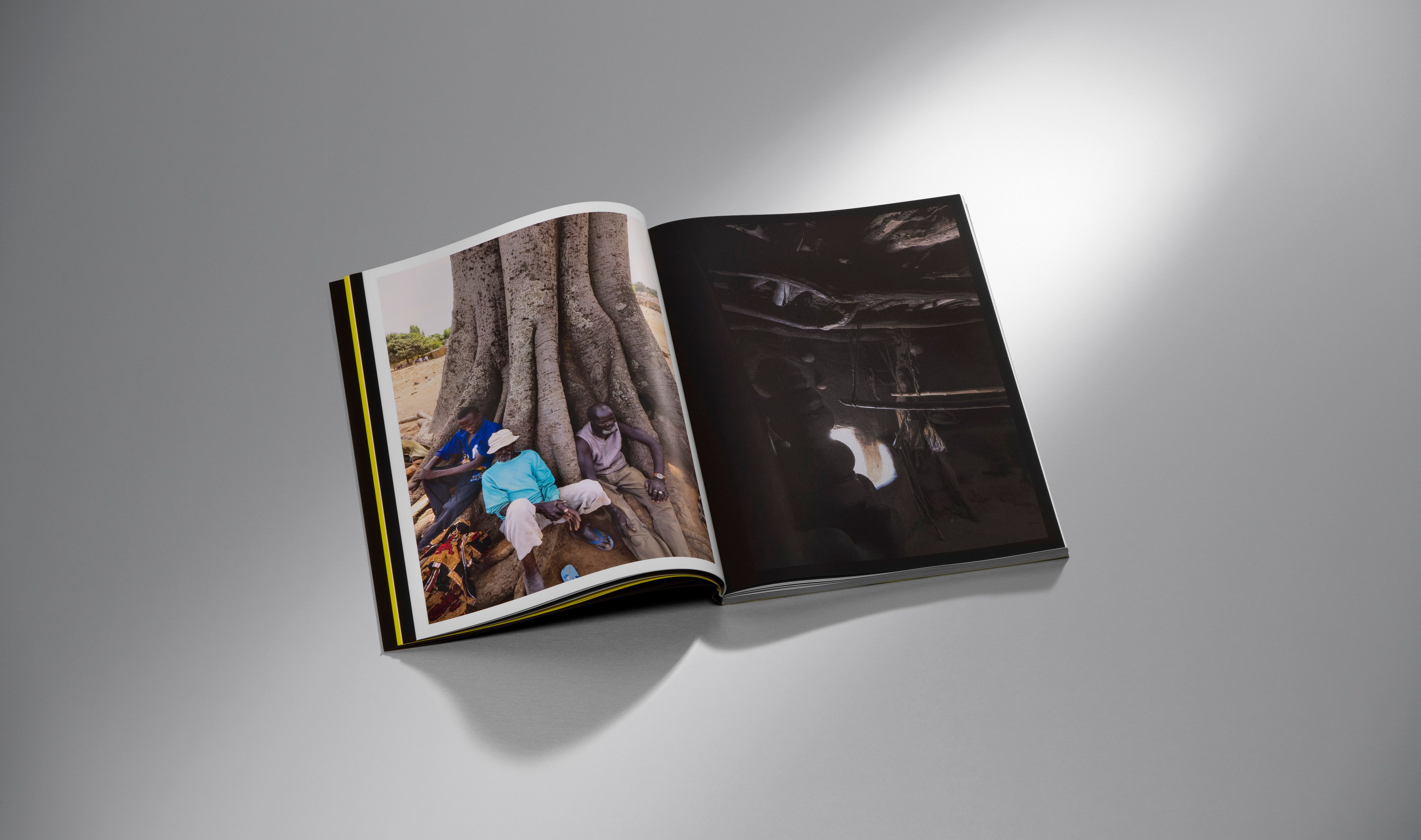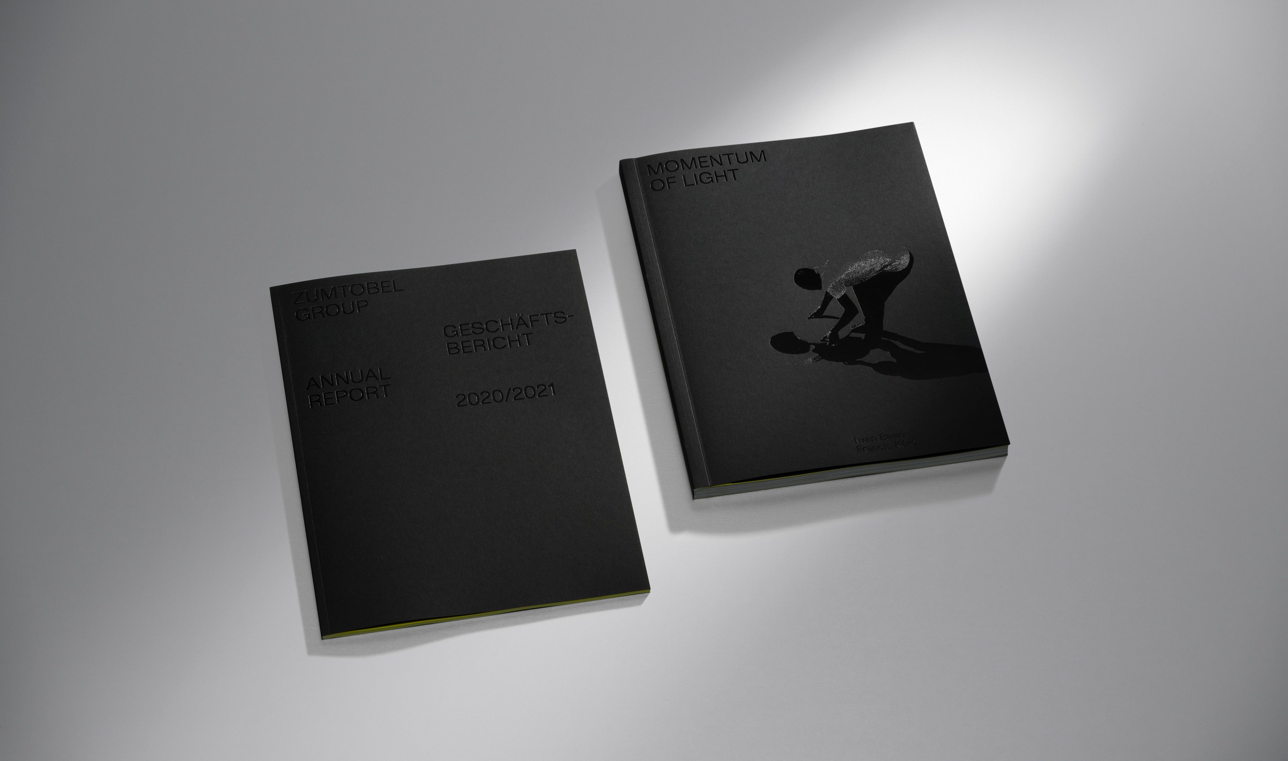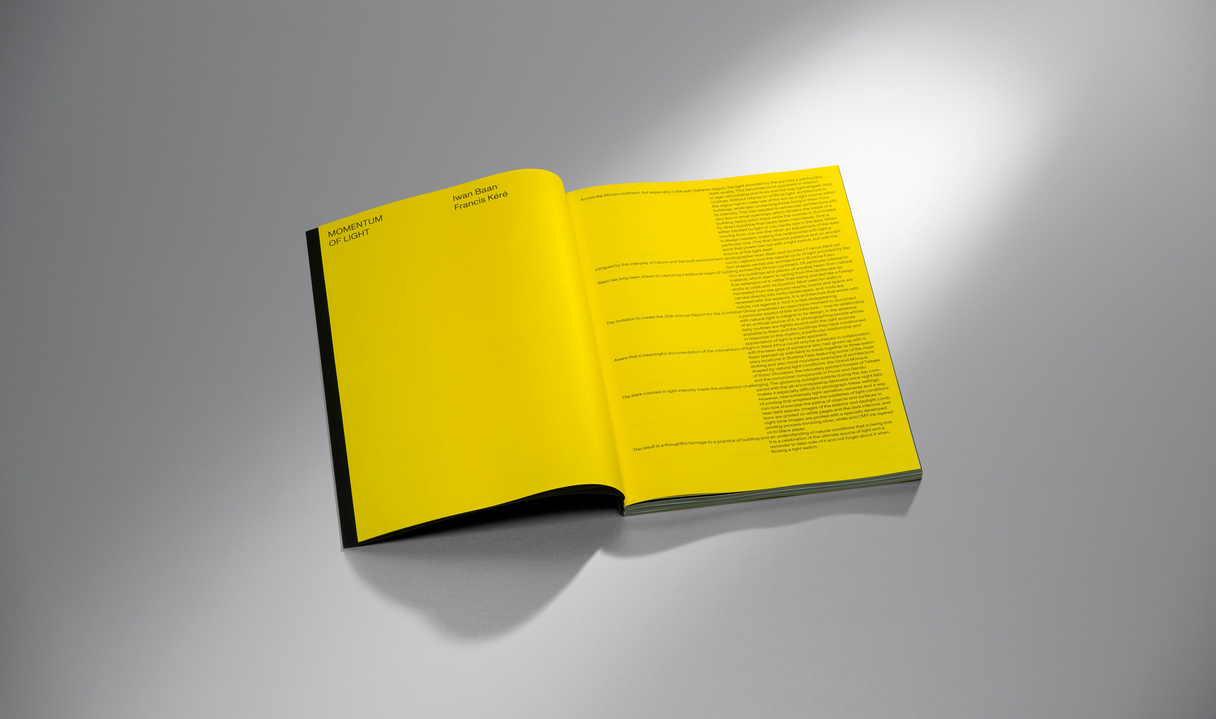 Iwan Baan’s pictures are accompanied by architectural sketches from Francis Kéré, who grew up in this light environment and whose architecture is inspired by it. The design of the annual report picks up on the theme of contrasts and implements it in the structure and materiality as well as in the choice of print. The outdoor and daylight shots are printed on white glossy pages that reflect the light. In contrast, the dark indoor and night shots were produced using a special printing process that has ‘put light to paper’ by applying silver, white and CMY ink to black paper.