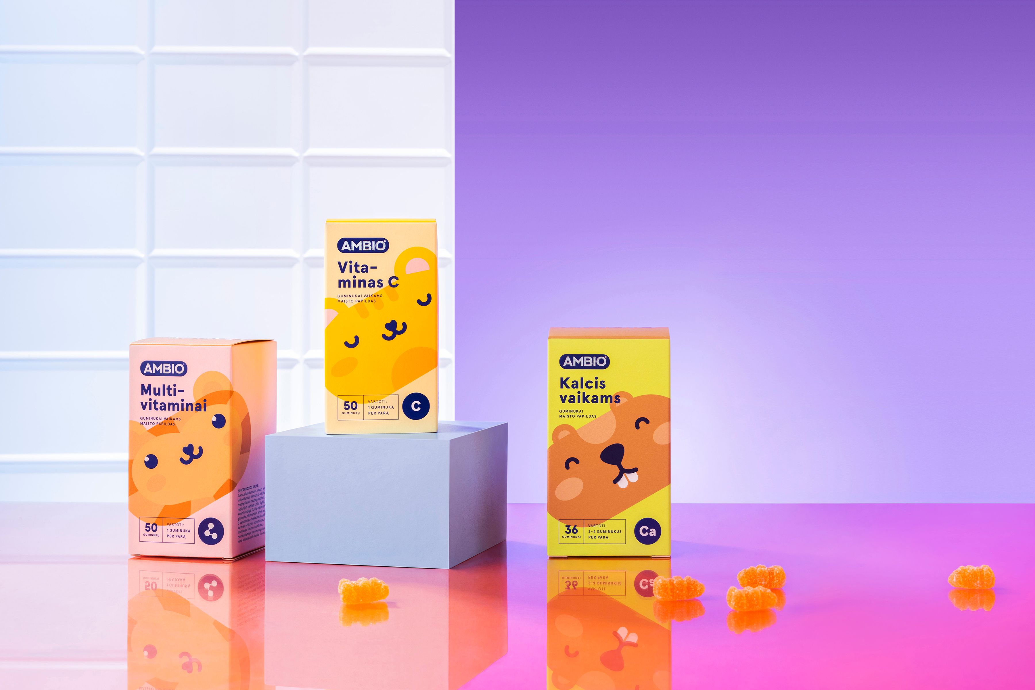 The coloured pill packaging reveals the simplicity, accessibility, modernity and daily health and beauty support of the product. The coloured pills create a rhythm on the shelves and distinguish the products in colour while attracting attention. In the children’s line, the pill form transforms into attractive characters.