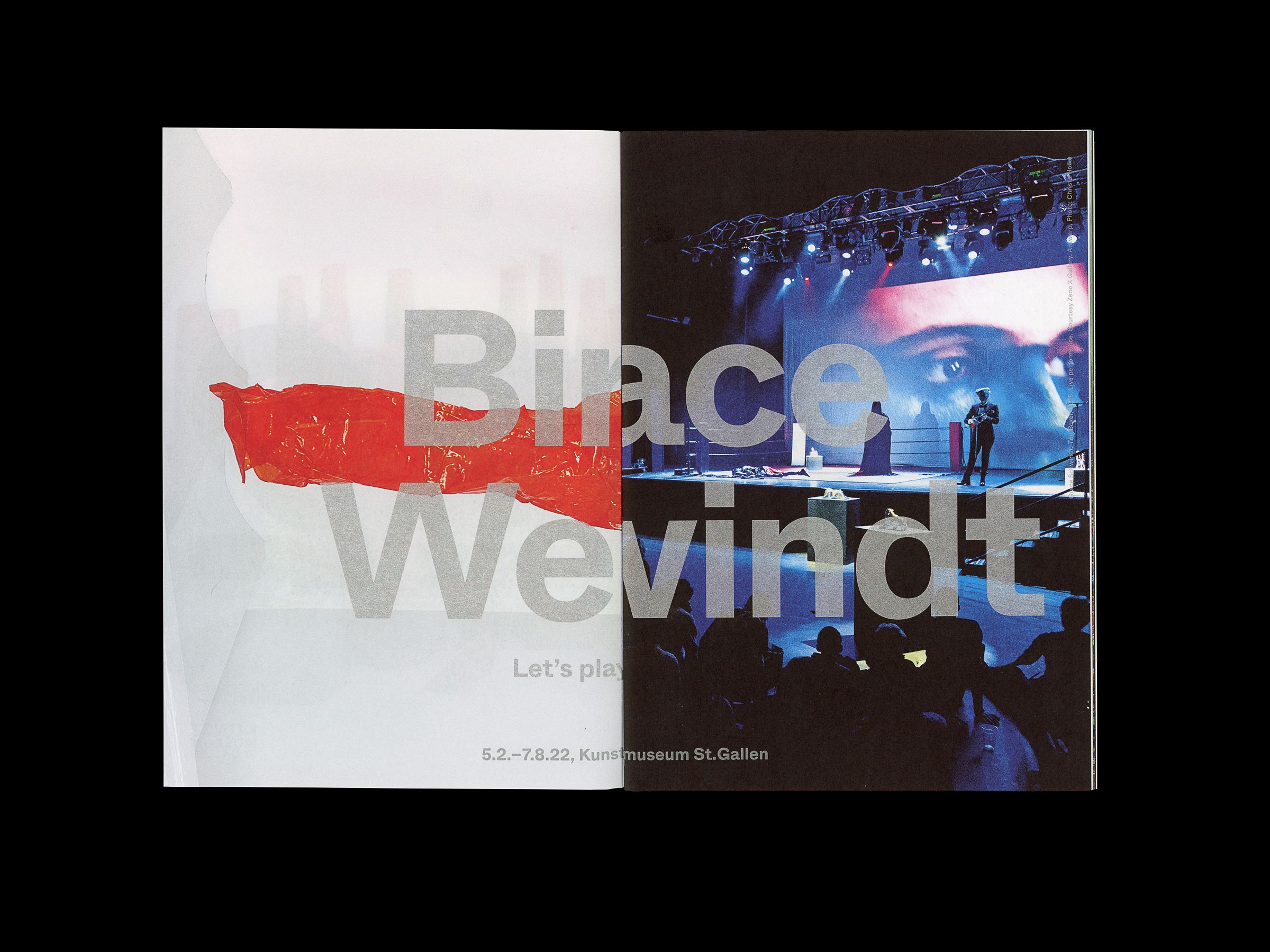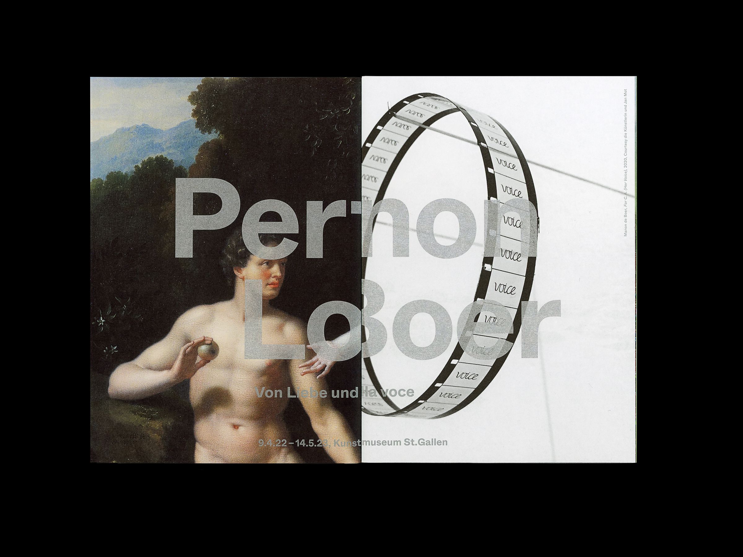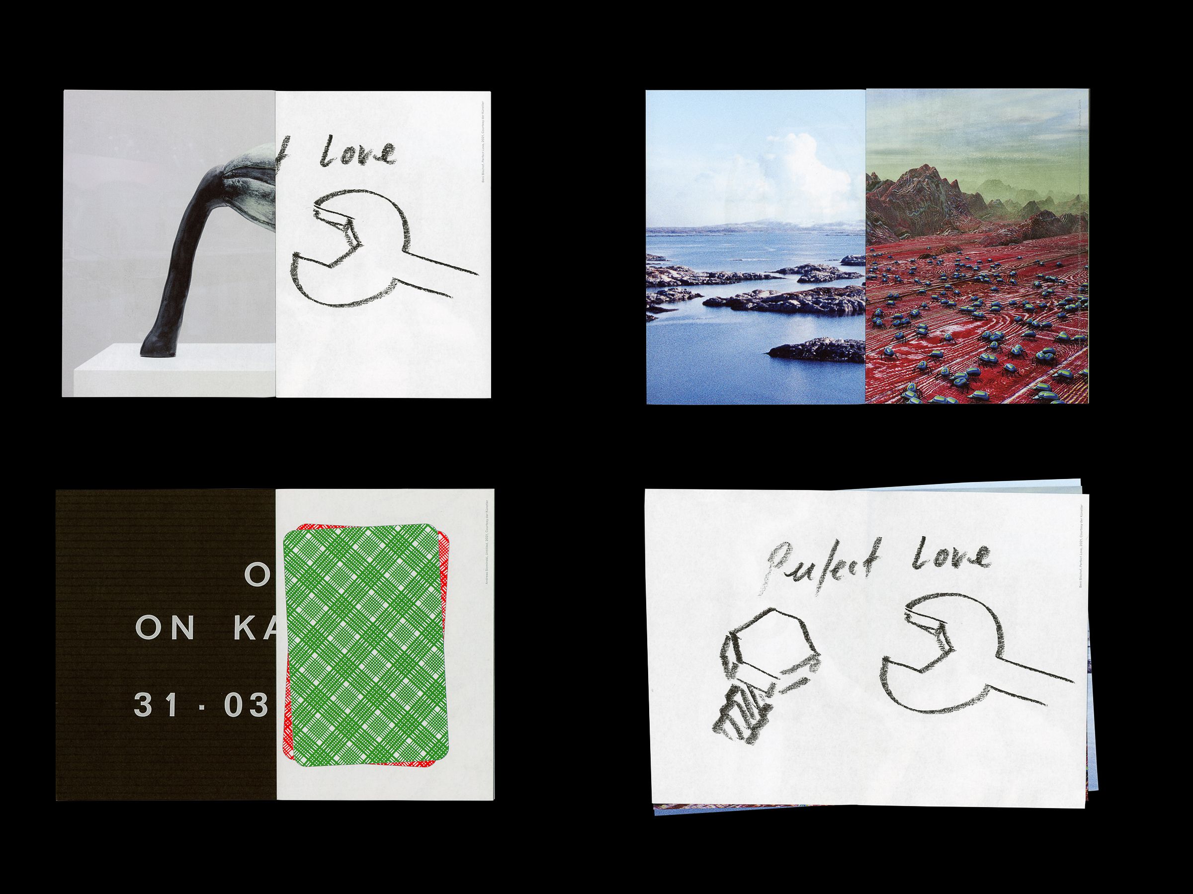 Each exhibition is featured on an individual sheet: title with first image on the front, second image on the back. The sheets can be taken out as posters.