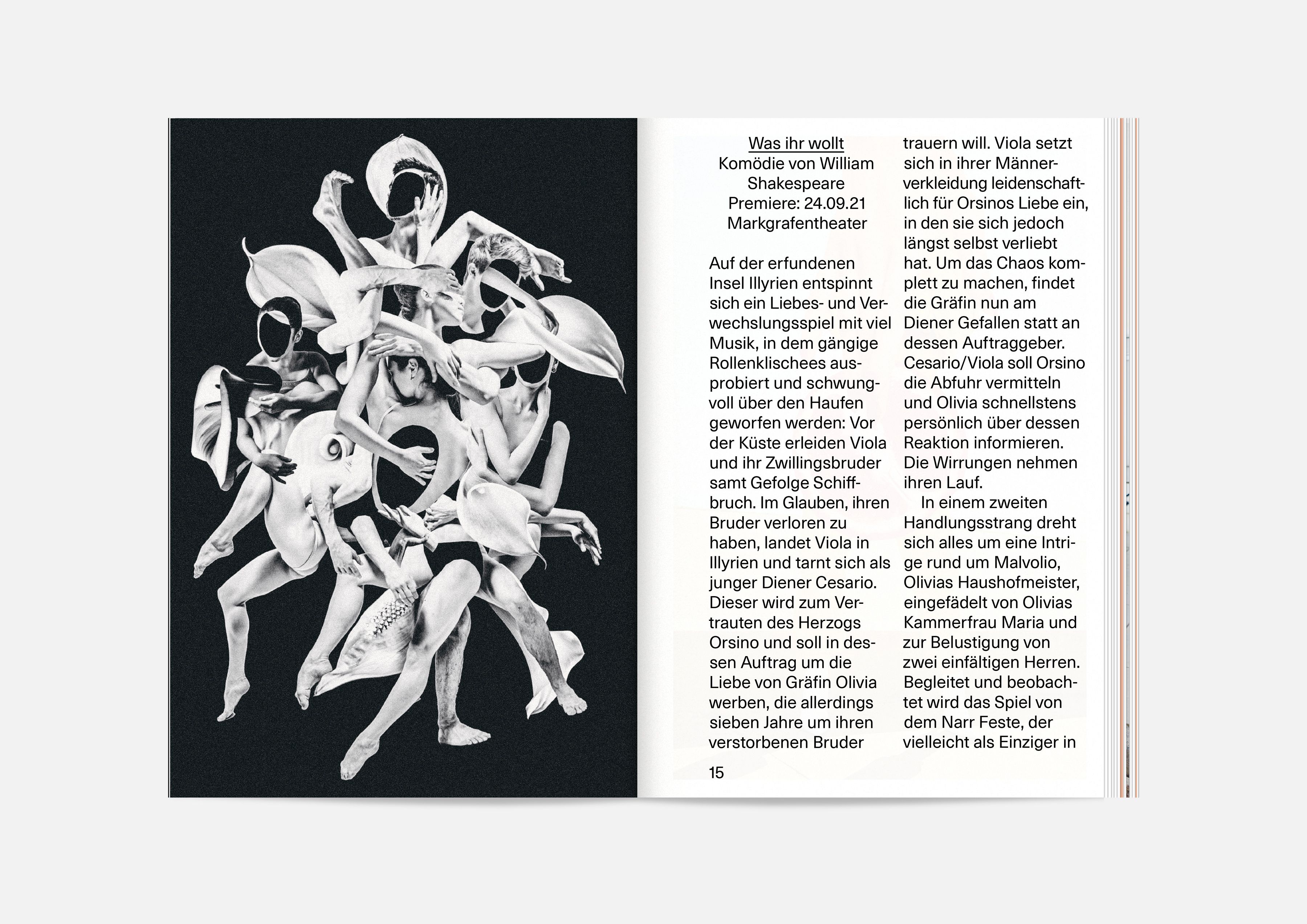 »Finally!« In the 2021/22 season, theater can once again be experienced with all the senses. Full of anticipation for a wide range of new and classic plays and formats, visual finds and their virtuoso fusions form a brilliant travel companion into the coming theater year.