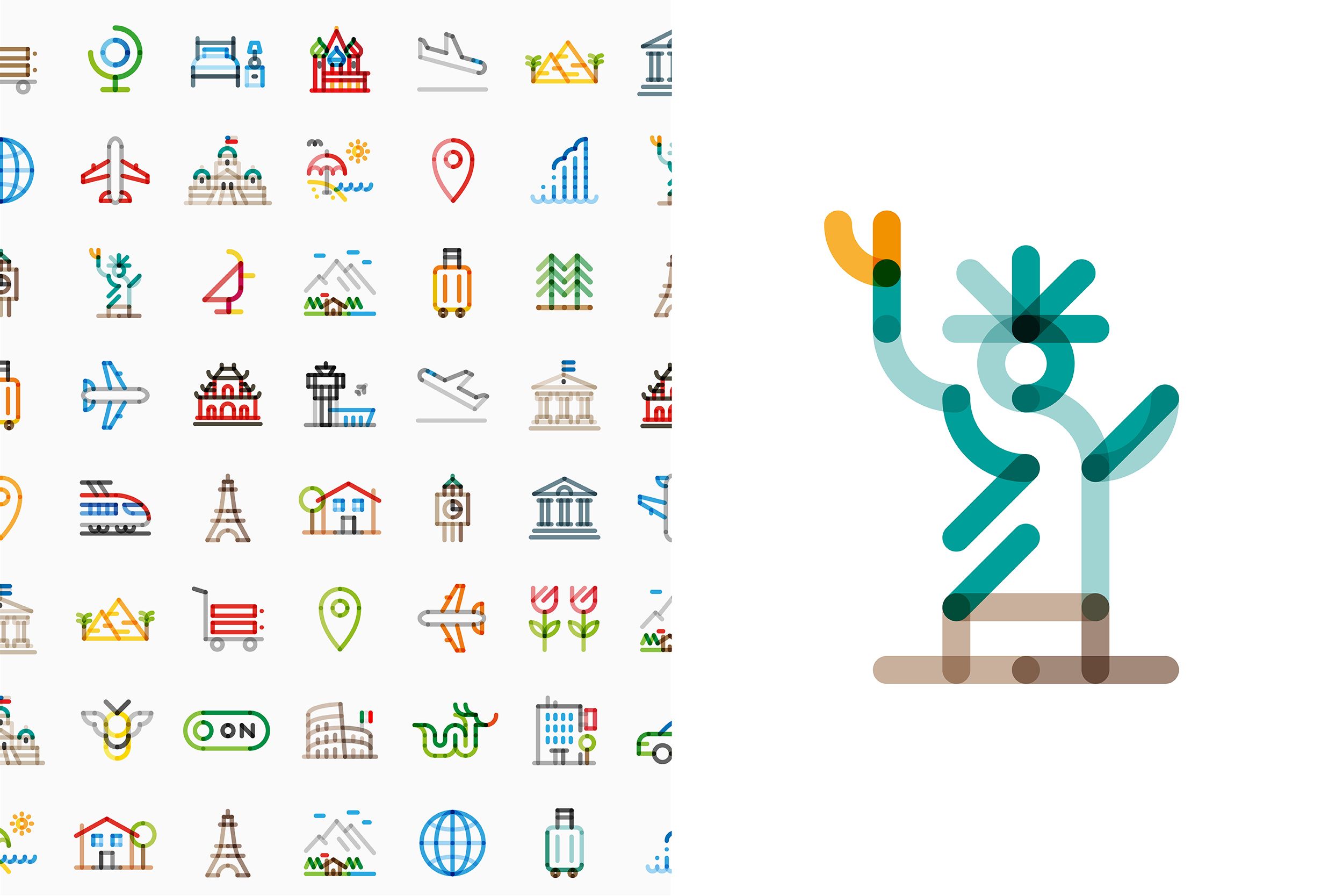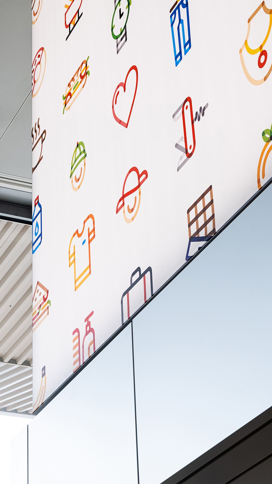 The palette of fun and playful icons invites passengers and visitors to interpret the messages, letting them imagine their own experience at the airport, rather than guiding them with ready-made images.