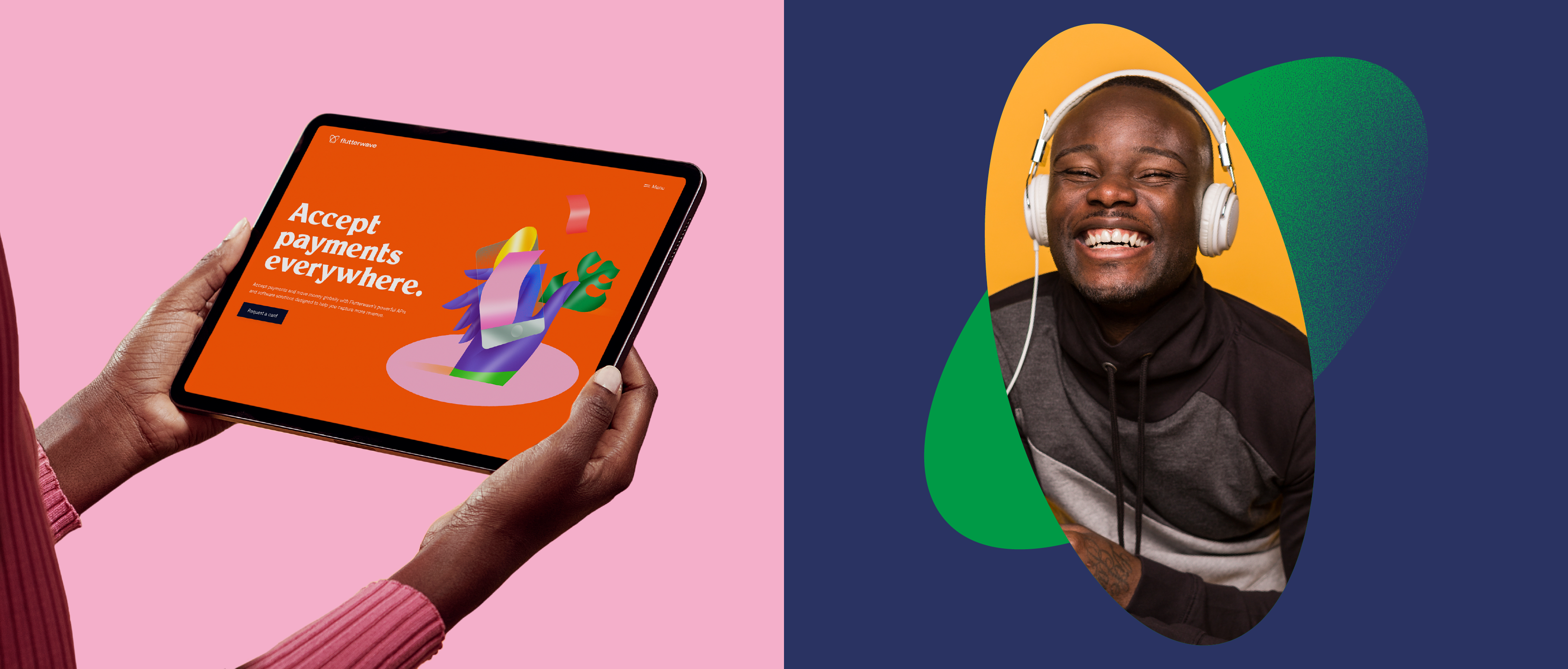 FinTech unicorn Flutterwave was founded on an audacious dream: to see entrepreneurs take global stage. One problem: Africans are separated from each other and the world by dozens of unconnected banks, currencies and mobile wallets. Flutterwave built bridges between financial systems. We captured their spirit in a vibrant identity that champions entrepreneurs and their dreams.