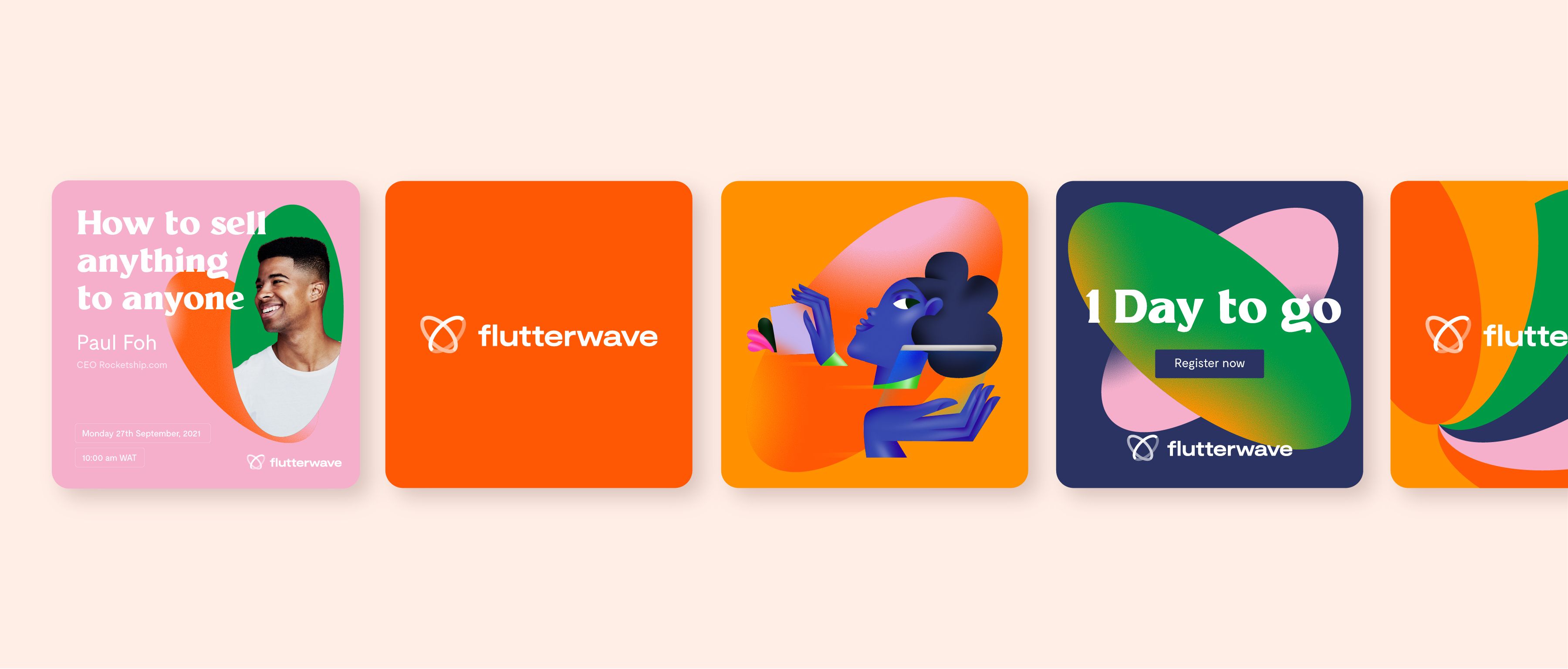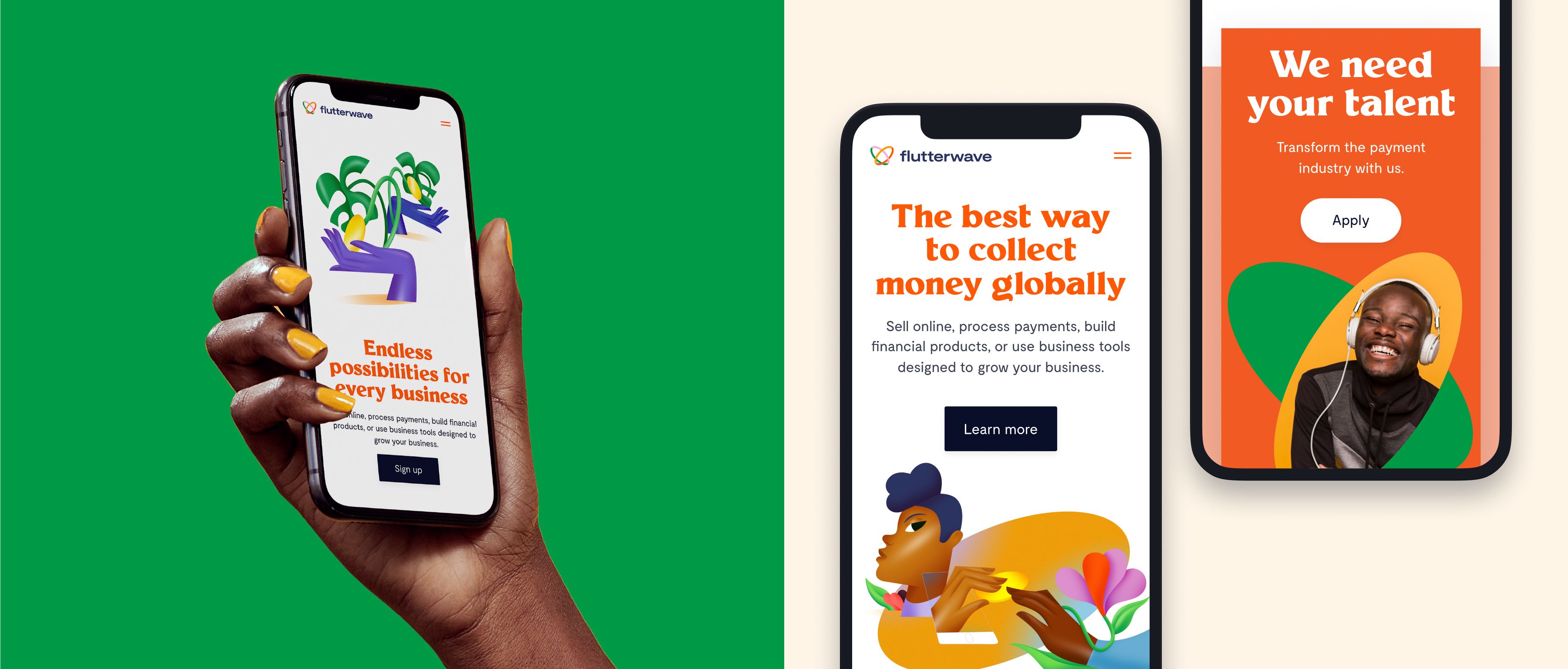 The Fintech scene is dominated by green and blue: too phlegmatic for Flutterwave. FinTech aesthetics are in stark contrast to the dreams of the African entrepreneur, which are bright, vivid and colorful. With a new brand story centered around self-made success, we positioned Flutterwave more within the creator economy and outside of the FinTech scene.
