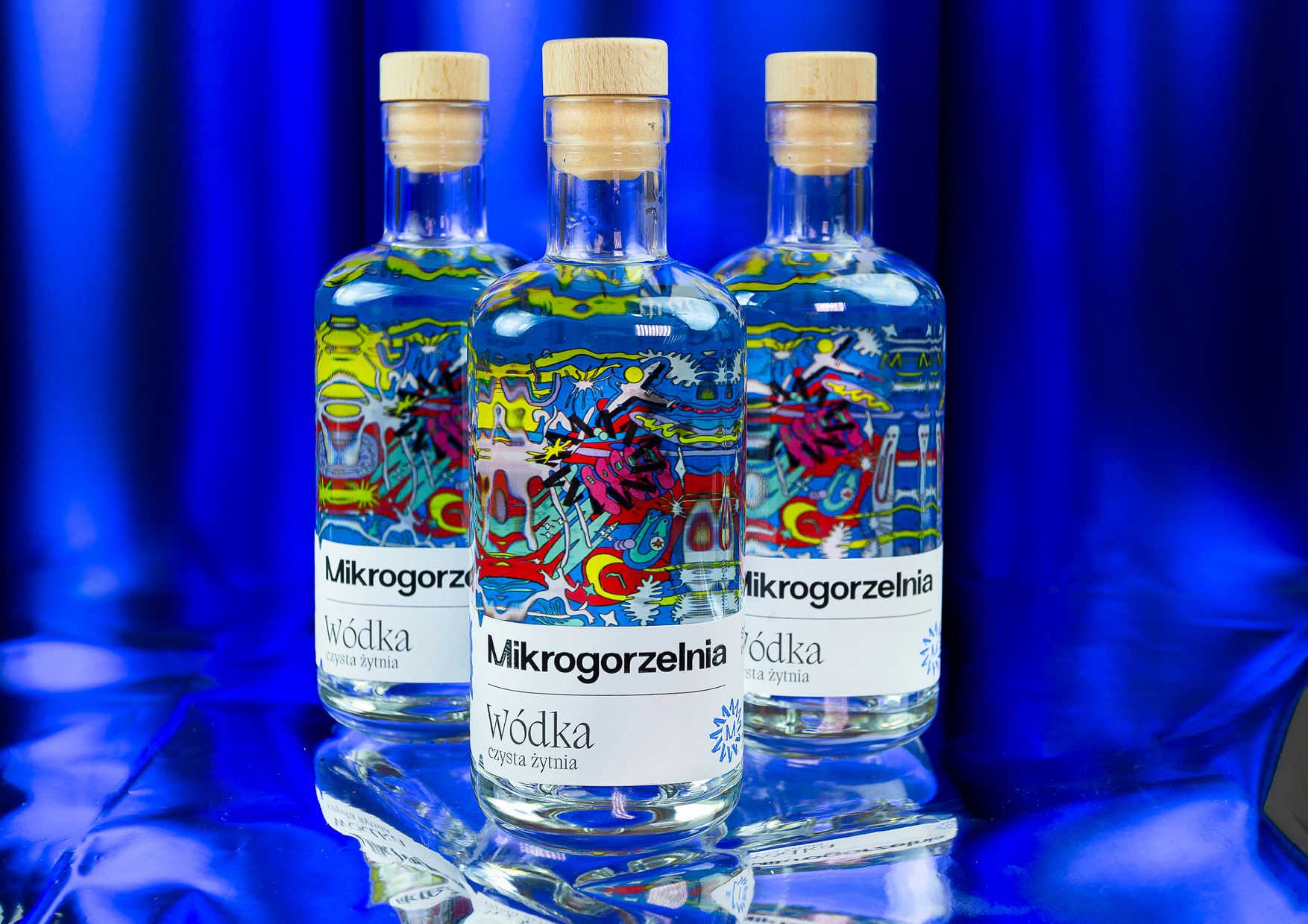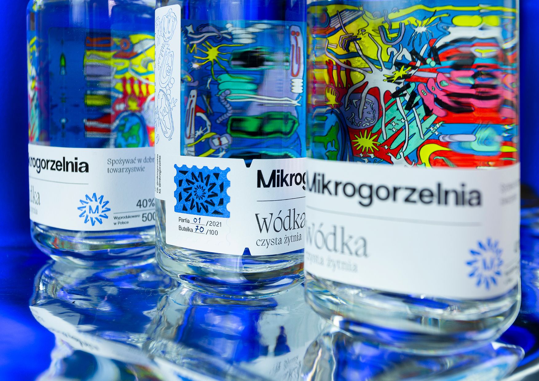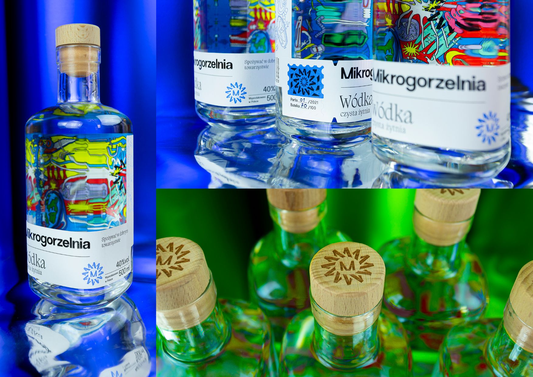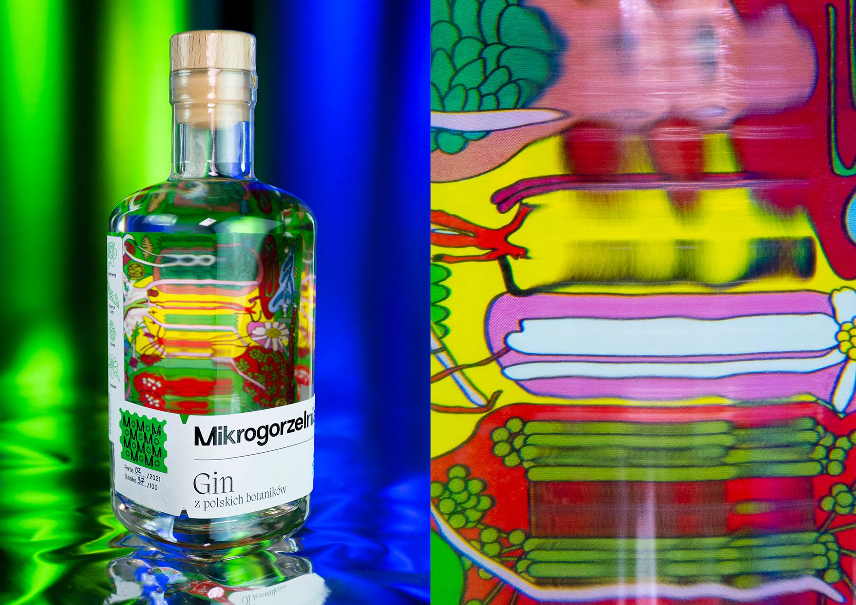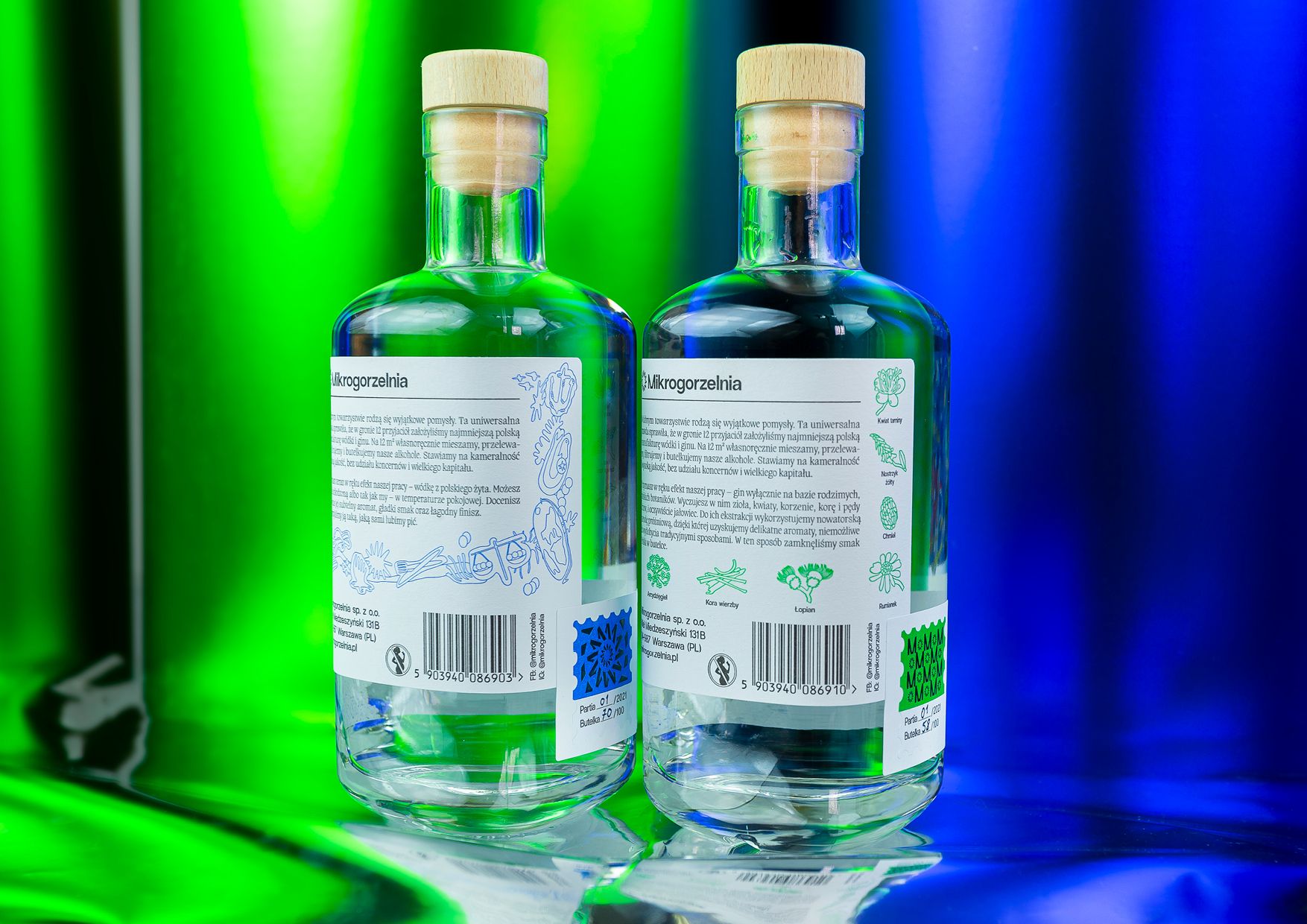 The first two products introduced onto the market by Mikrogorzelnia are pure rye vodka and gin made from Polish botanicals. By emphasizing the visual identity of the brand in the packaging design, we’ve decided to combine a clean, simple front label with a psychedelic illustration inside the bottle. Each of the founders of the brand chose one of the attributes from which the illustration accompanying the vodka was built. The Gin illustration talks about the ingredients. It contains images of all of the 11 Polish botanicals used to create the unique recipe of the spirit.