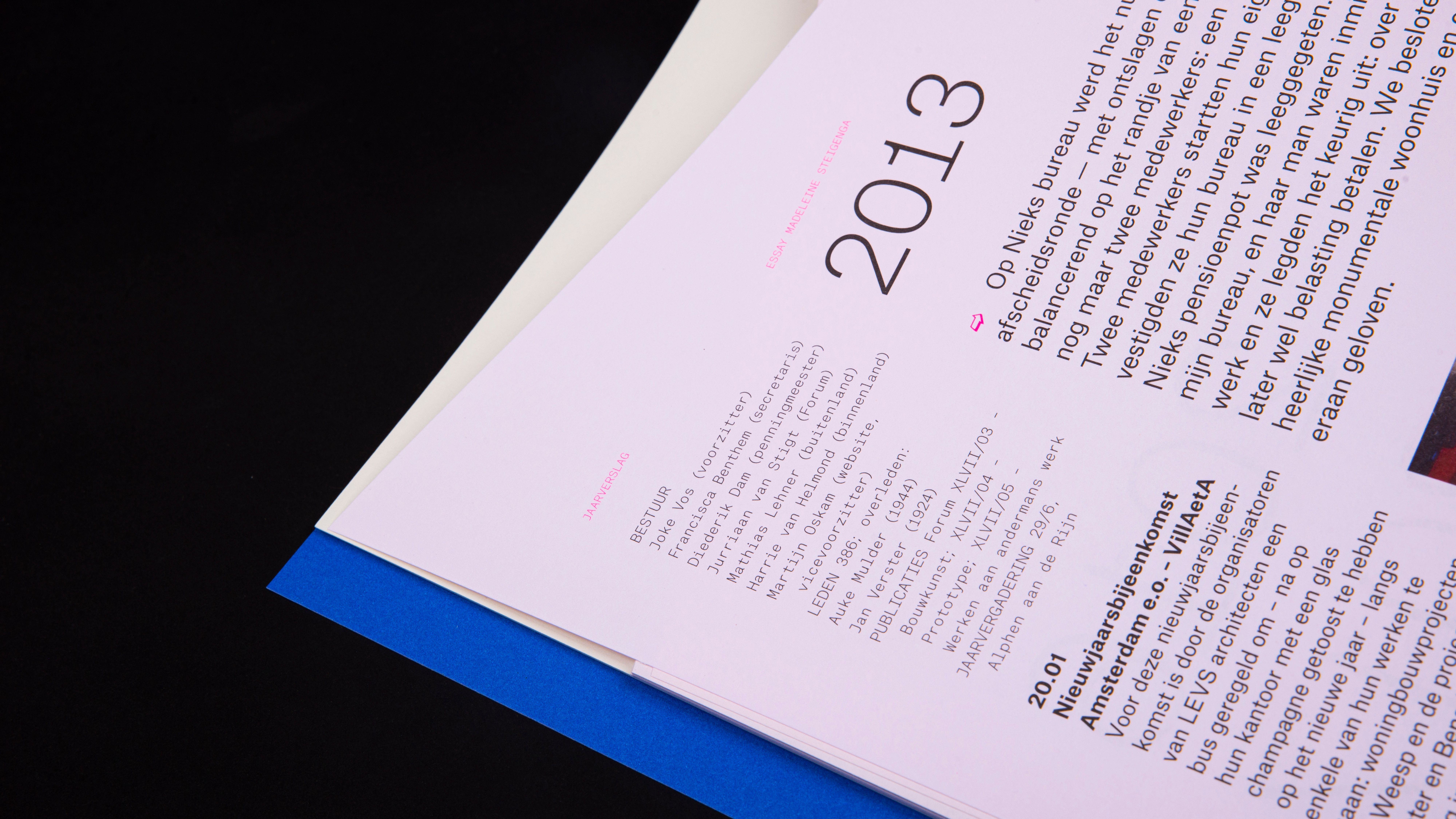 The book is a collection of: reports of activities, organized by AetA for the members, with supporting visual material, portraits of board members drawn by Joost Swarte, covers of Forum, interviews with government architects (2006-2020) and a personal essay, written by architect Madeleine Steigenga. The personal essay runs like a thread through the book.
