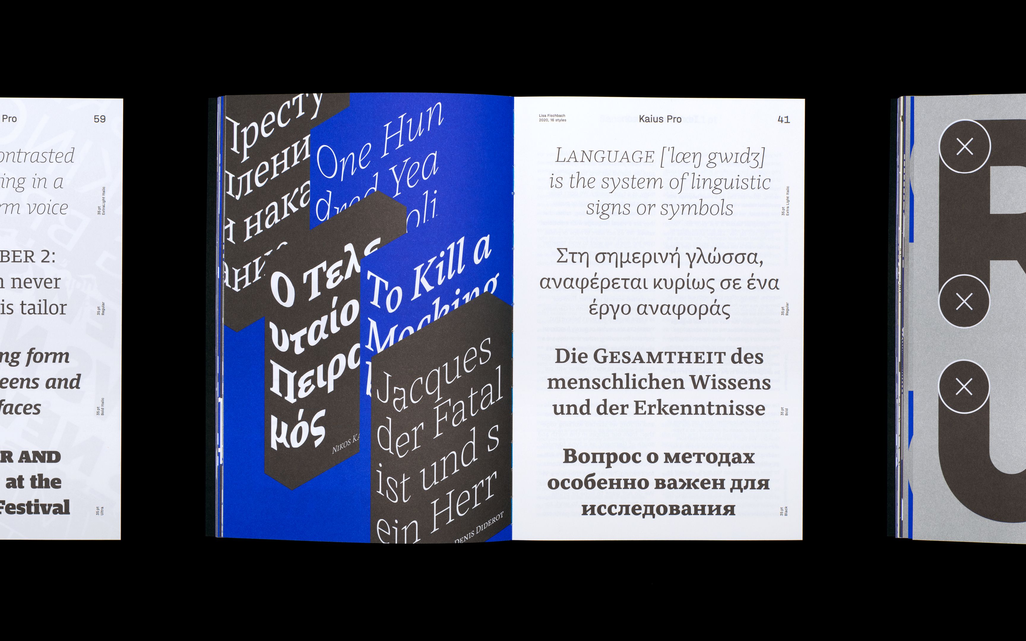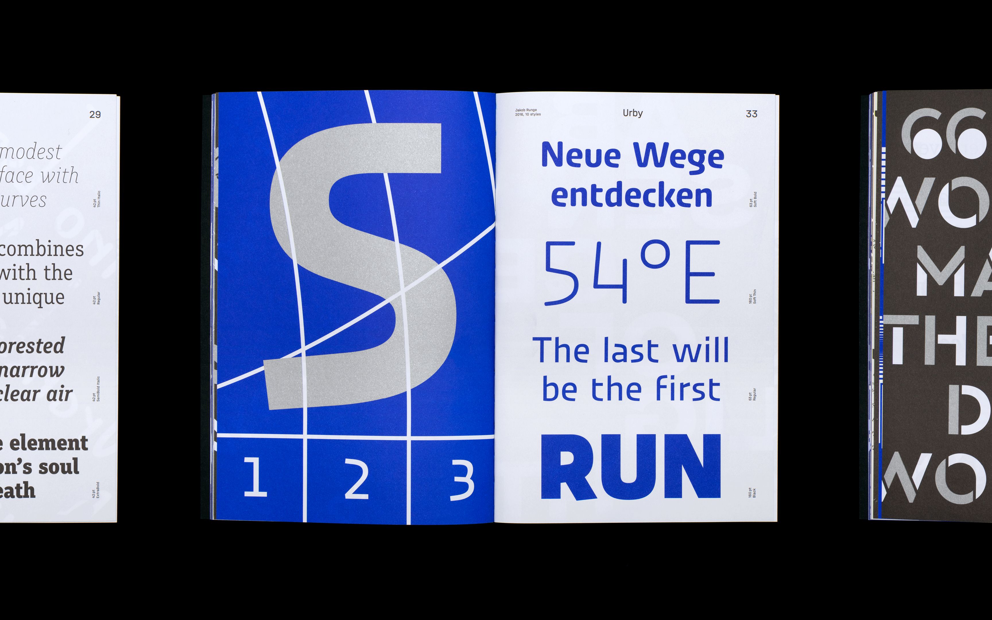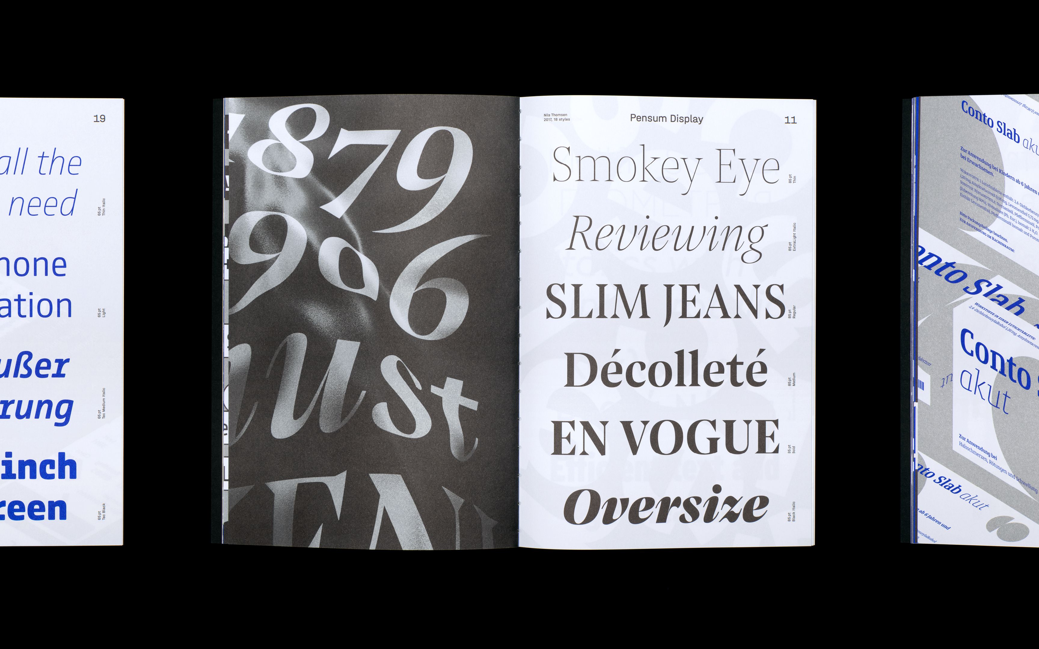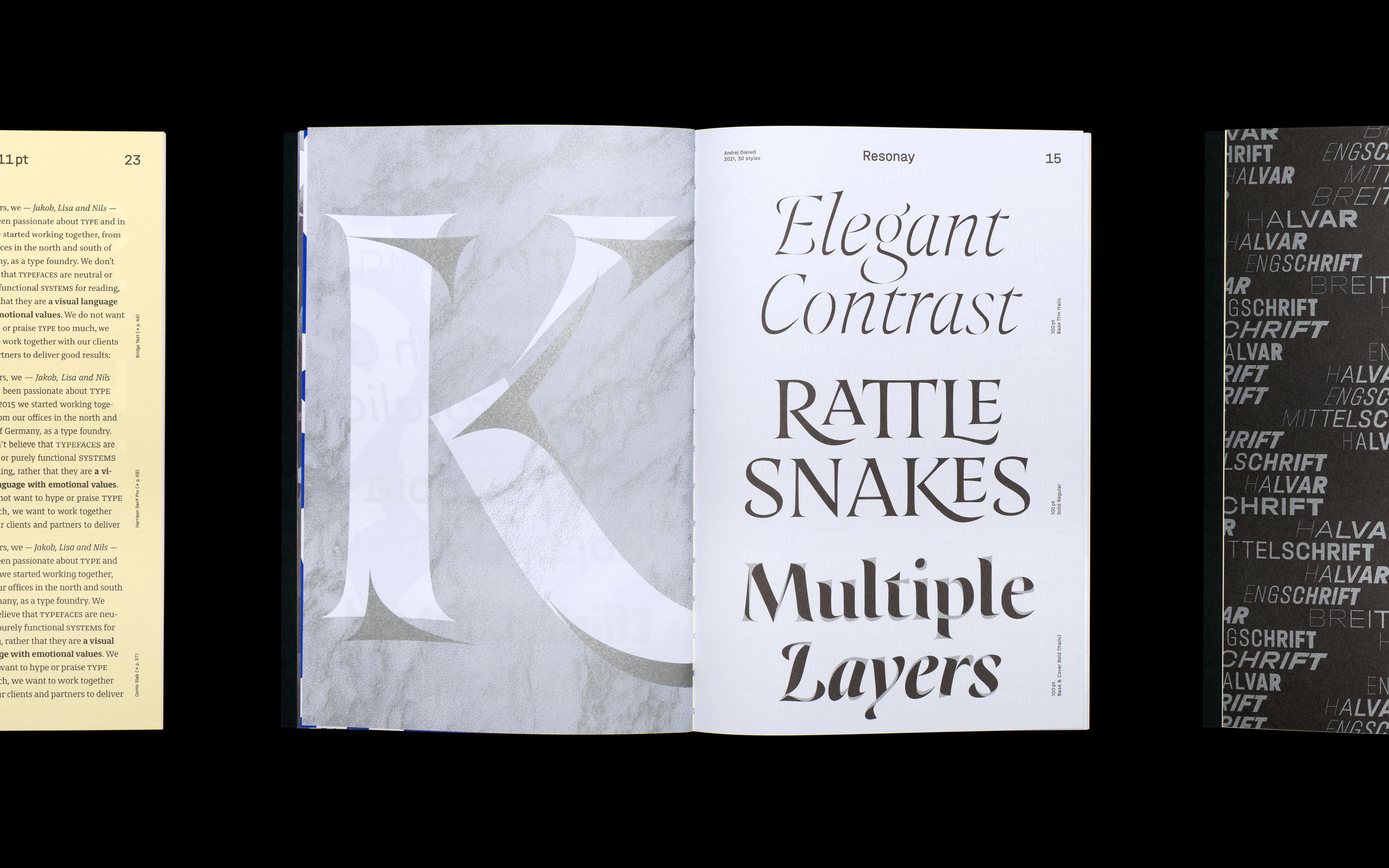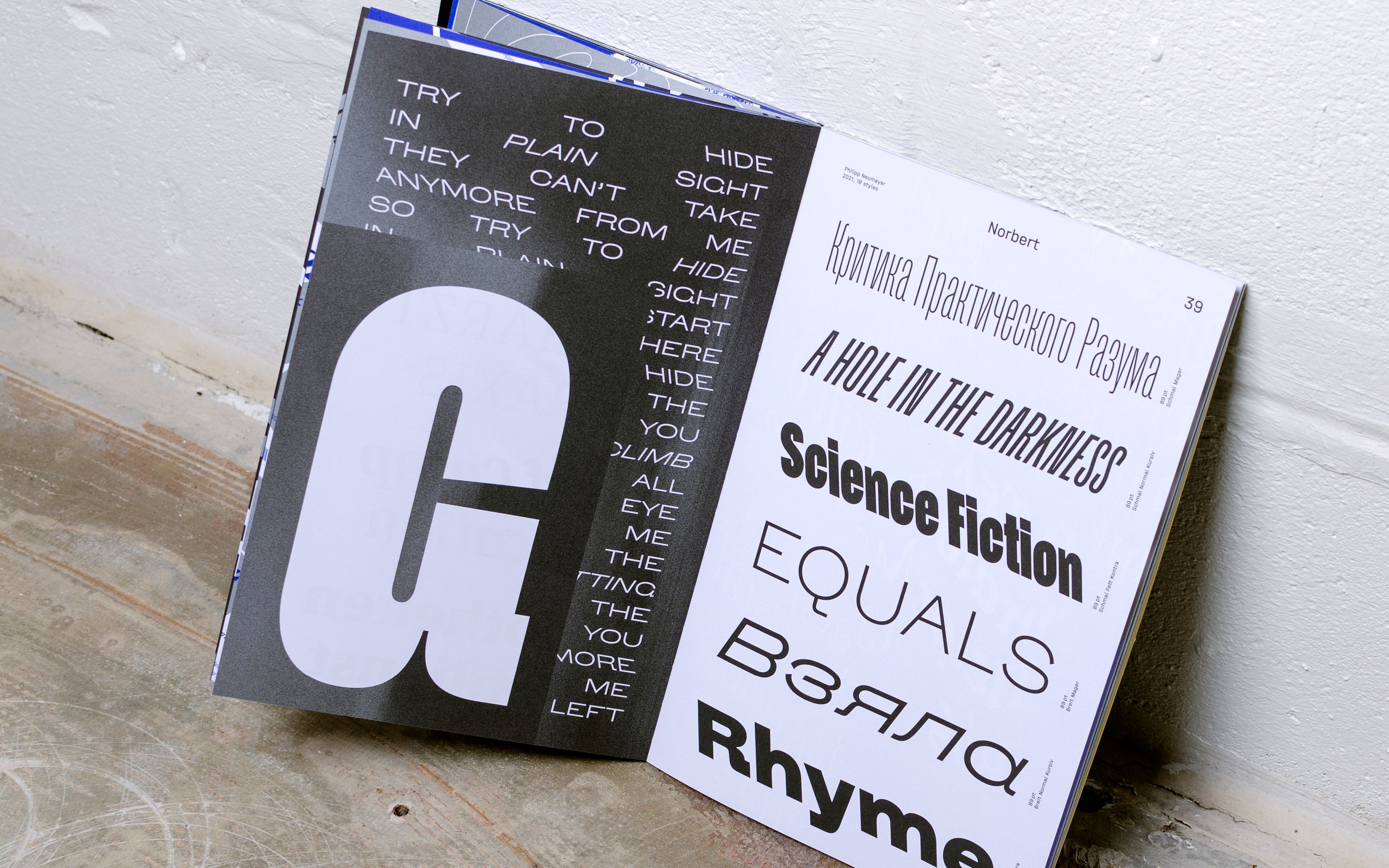 The catalogue was designed to clearly showcase the carefully crafted forms of the fonts. At the same time, through an expressive graphic treatment, it also gives a preview of various possible applications, from analogue-produced designs over flat and clean layouts to digital 3D-generated distortions. But the catalogue is not only about the retail library — it also provides handy body text comparisons of their best workhorses and gives insights into the processes behind some of their latest custom projects.