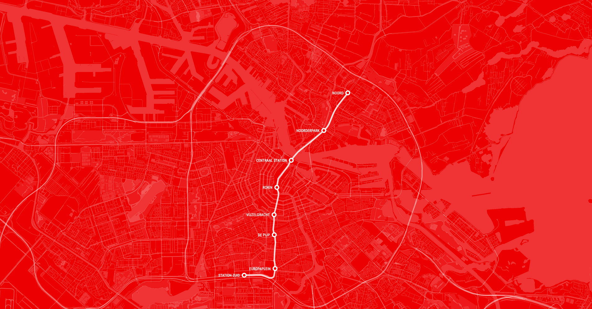 Commissioned by the AMS institute at the request of the Amsterdam Municipality, we created a microsite highlighting the outcome of the research and visualised its results to showcase the impact of the North/South line on the Amsterdam metropolitan region. The visualisation shows how the new public transport network is structured and highlights the effect it had on the timetable and travel time.