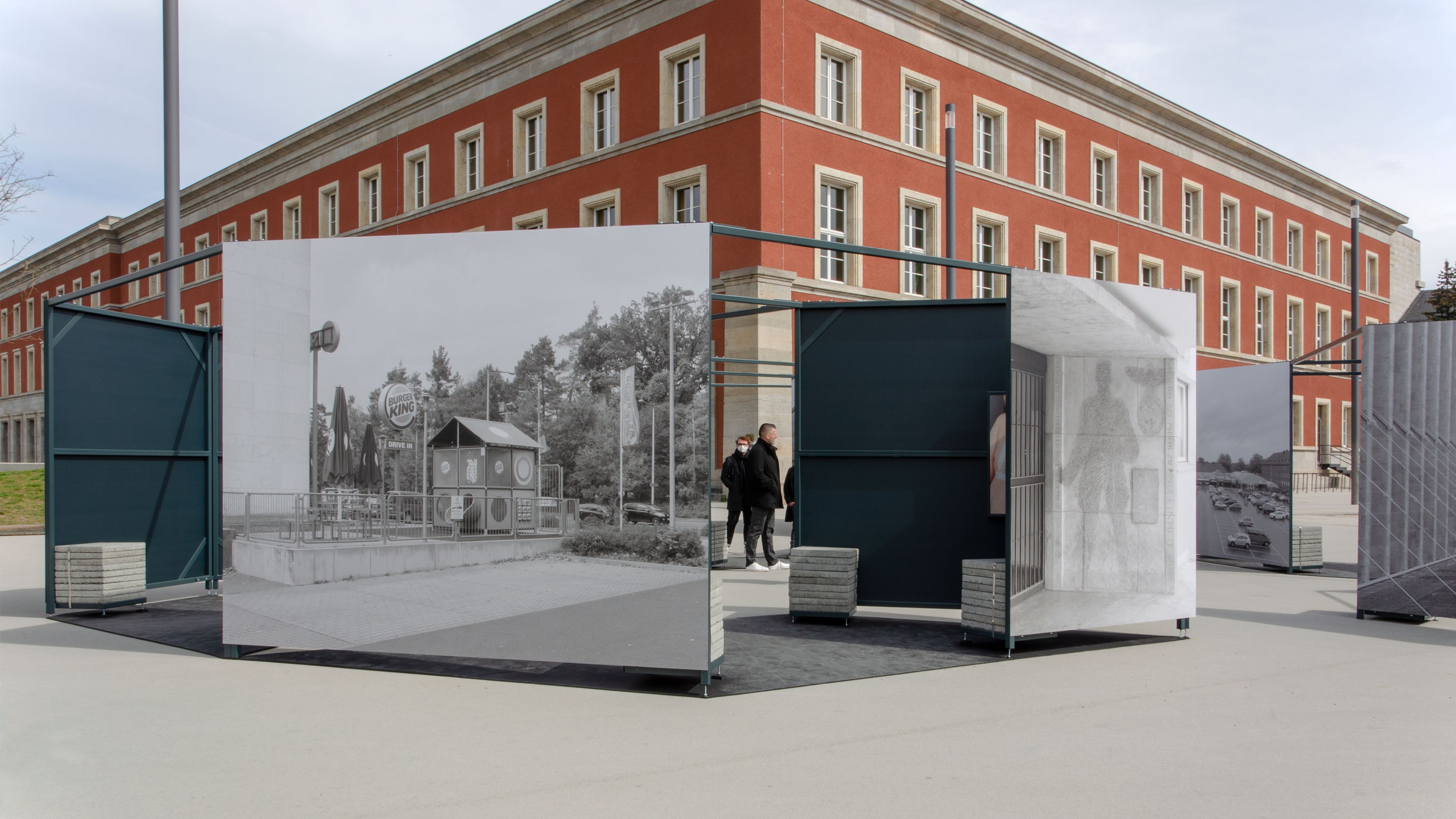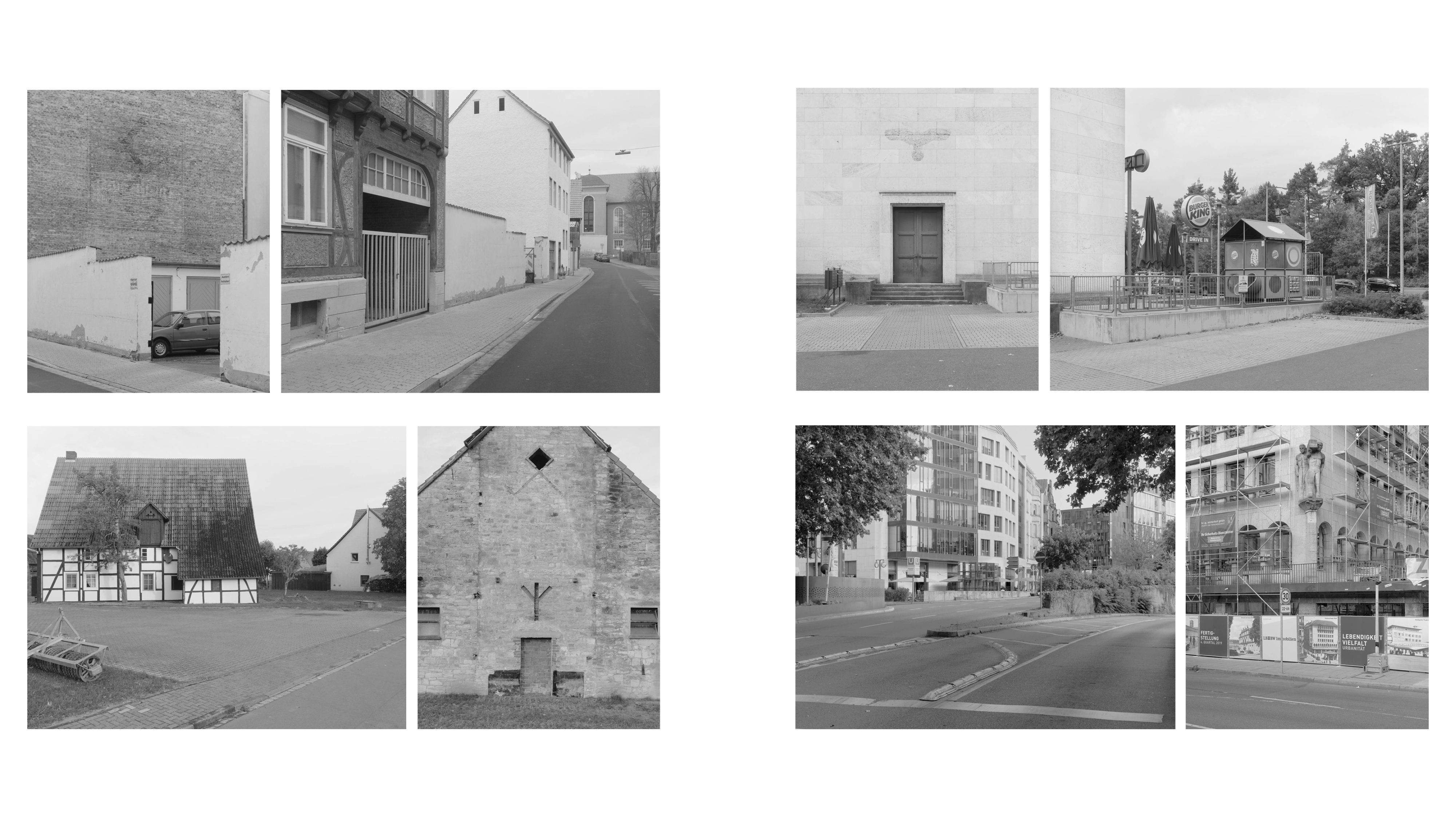 ‘Haut, Stein’ interrogates the persistence, use and obliteration of national socialist symbology, which remains visible to this day. In this outdoor exhibition, Jakob Ganslmeier brings together two distinct elements: the structural ornaments and architecture through which the symbols of national socialism linger in public space; and the tattoos, by which the same signs serve to reaffirm an individual’s commitment to right-wing extremism.