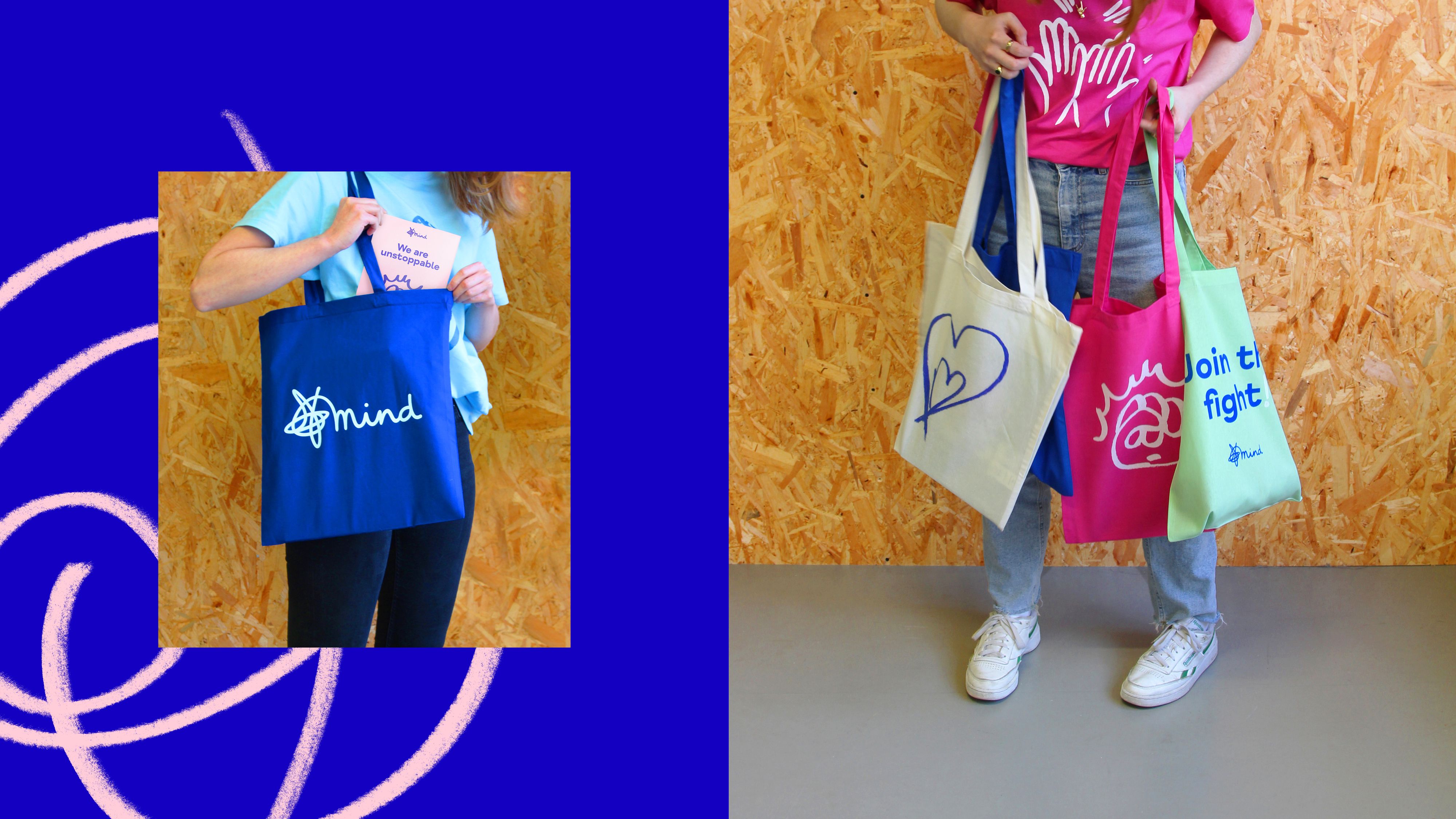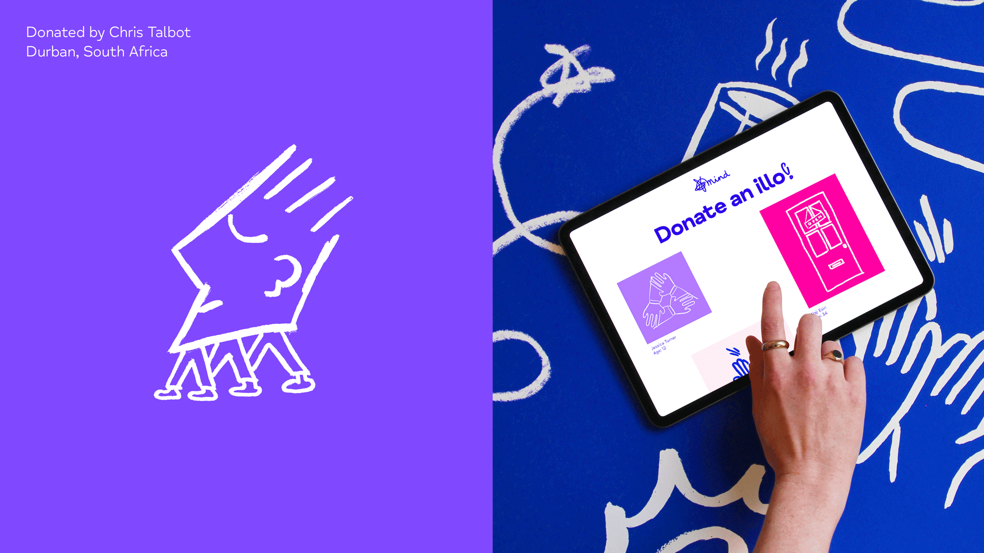 Solution: Redrawn logo that is bolder, simpler and can be used in small spaces. Accessible font designed for the visually impaired. Vibrant & accessible colour palette reflective of Mind’s new fighting spirit. A set of 'squiggly' elements that tie the brand together: Super squiggles & squiggly punctuation capture stories in a personal way. Squiggly hand-drawn illustrations donated by people from around the world.