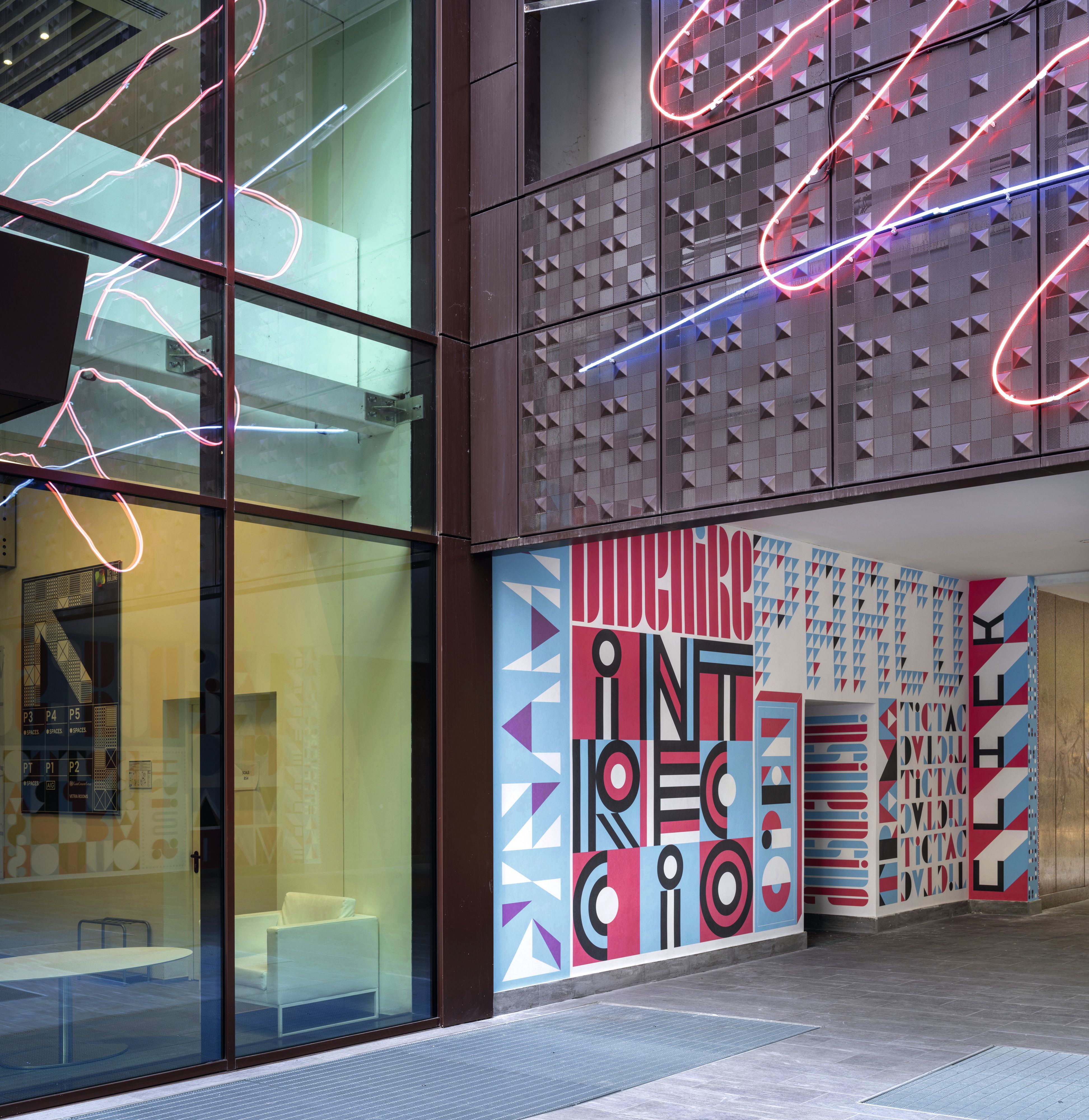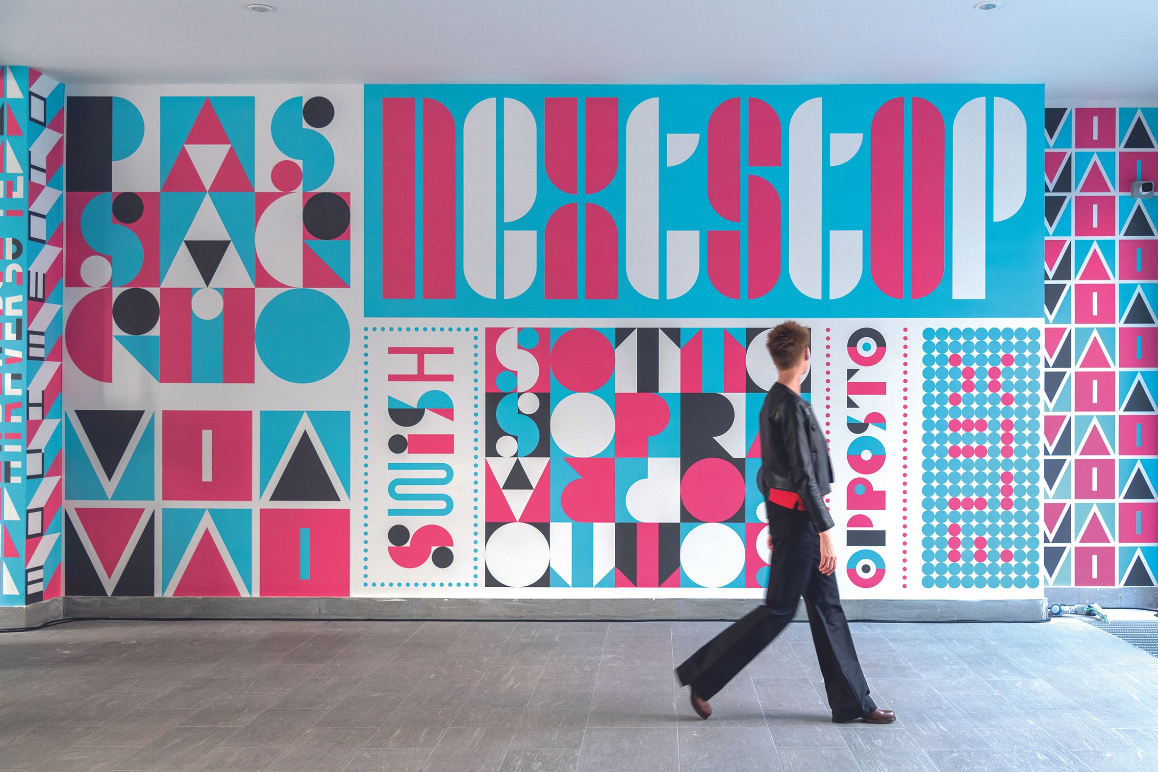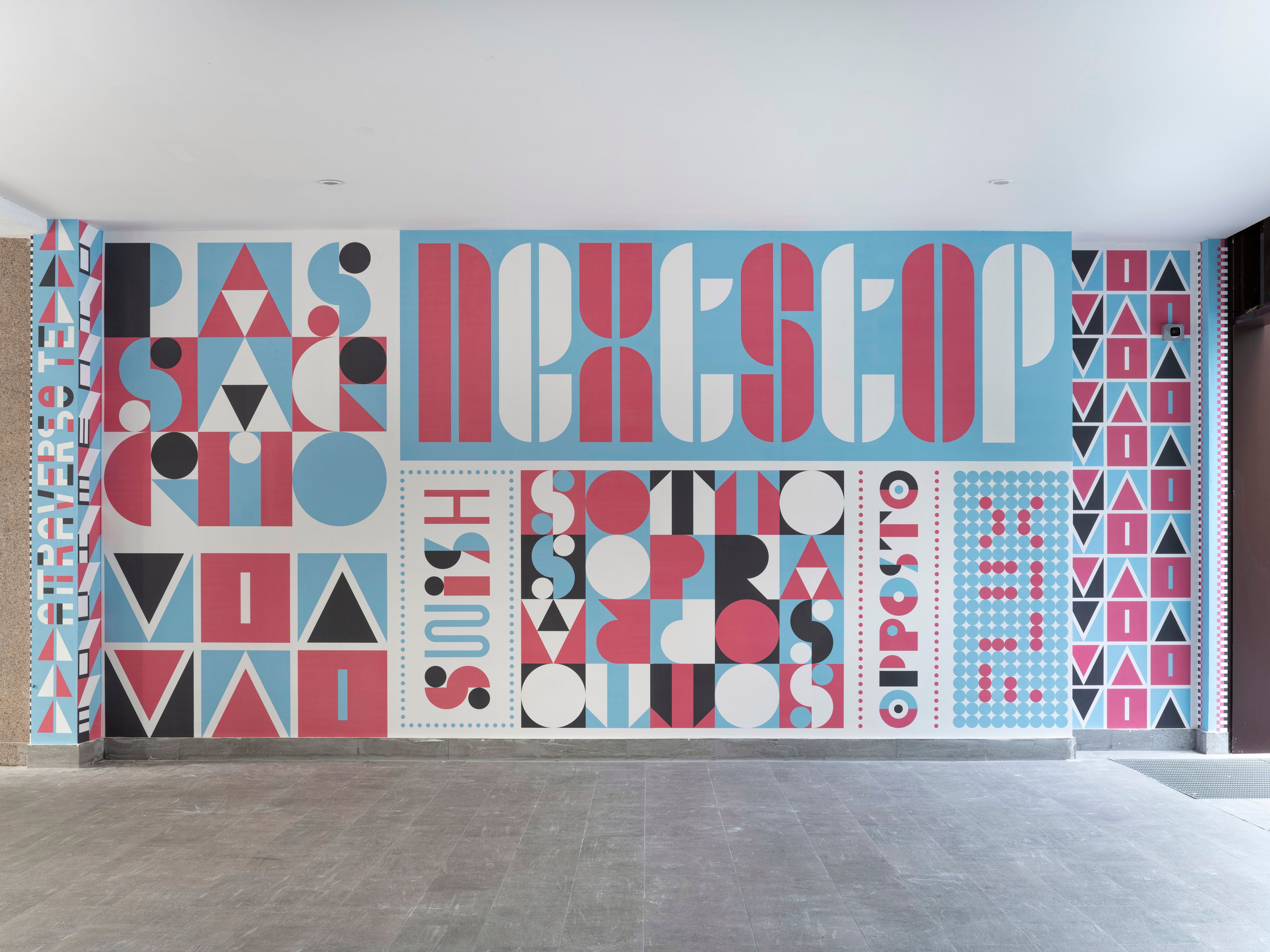 A project in progress, inaugurated by Cabaret Typographie, with NABA, the New Academy of Fine Arts as teaching partner, and a group of students (Gabriele Carrera, Priscilla Pinto, Valeria Fiorello, Alice Giannini, Sofia Gasaproli, Mario Uliassi) involved in a workshop led by the graphic designers, for to the conception and realization of the work. The two white walls of this anonymous tunnel thus become pages for graphic and conceptual writing, between words, signs, geometric and chromatic patterns, dissecting themes and suggestions shared with the students: in this case the result is a diptych , in the form of wallpaper, which tries to restore an image of the city concepts through keys such as transit, relationship, movement, transformation, but also through sounds, images, personal memories. Lines from a poem by Umberto Saba dedicated to Milan become the title of the installation: "Invece di stelle ogni sera si accendono parole" (Instead of stars, words light up every evening).
